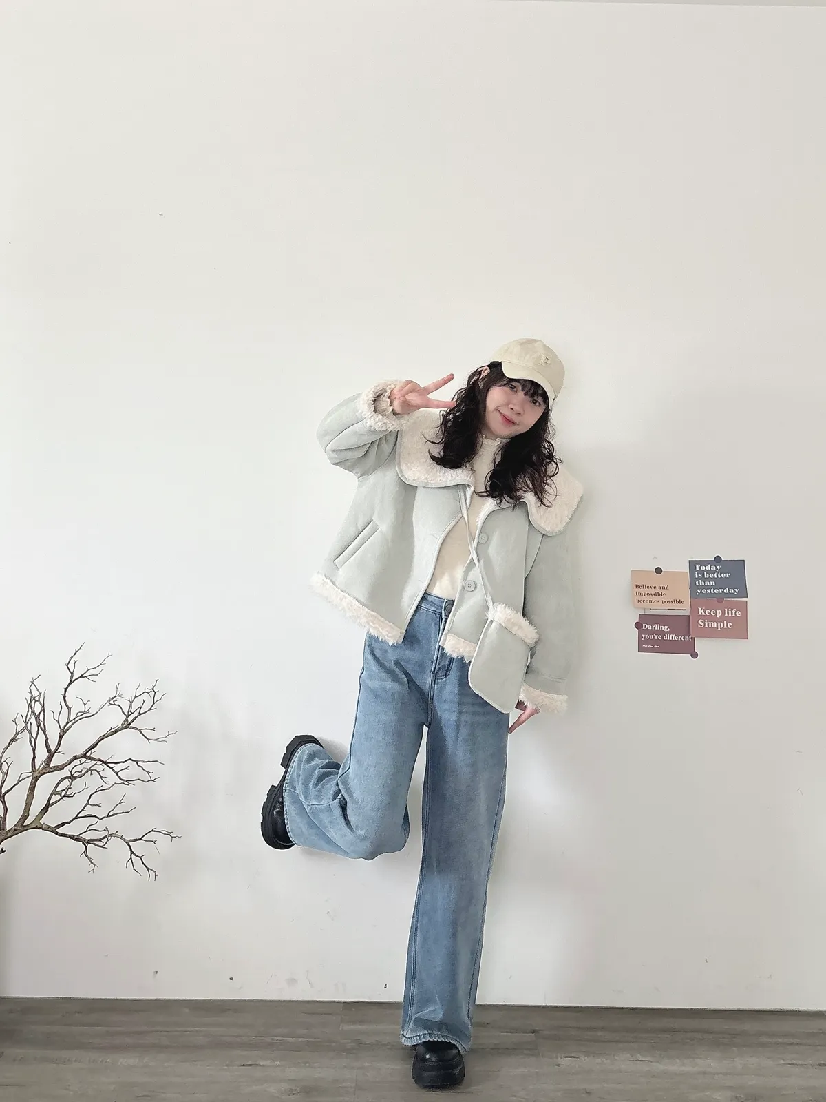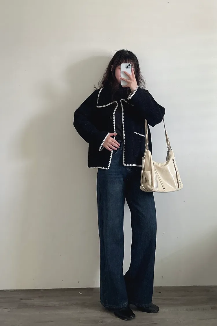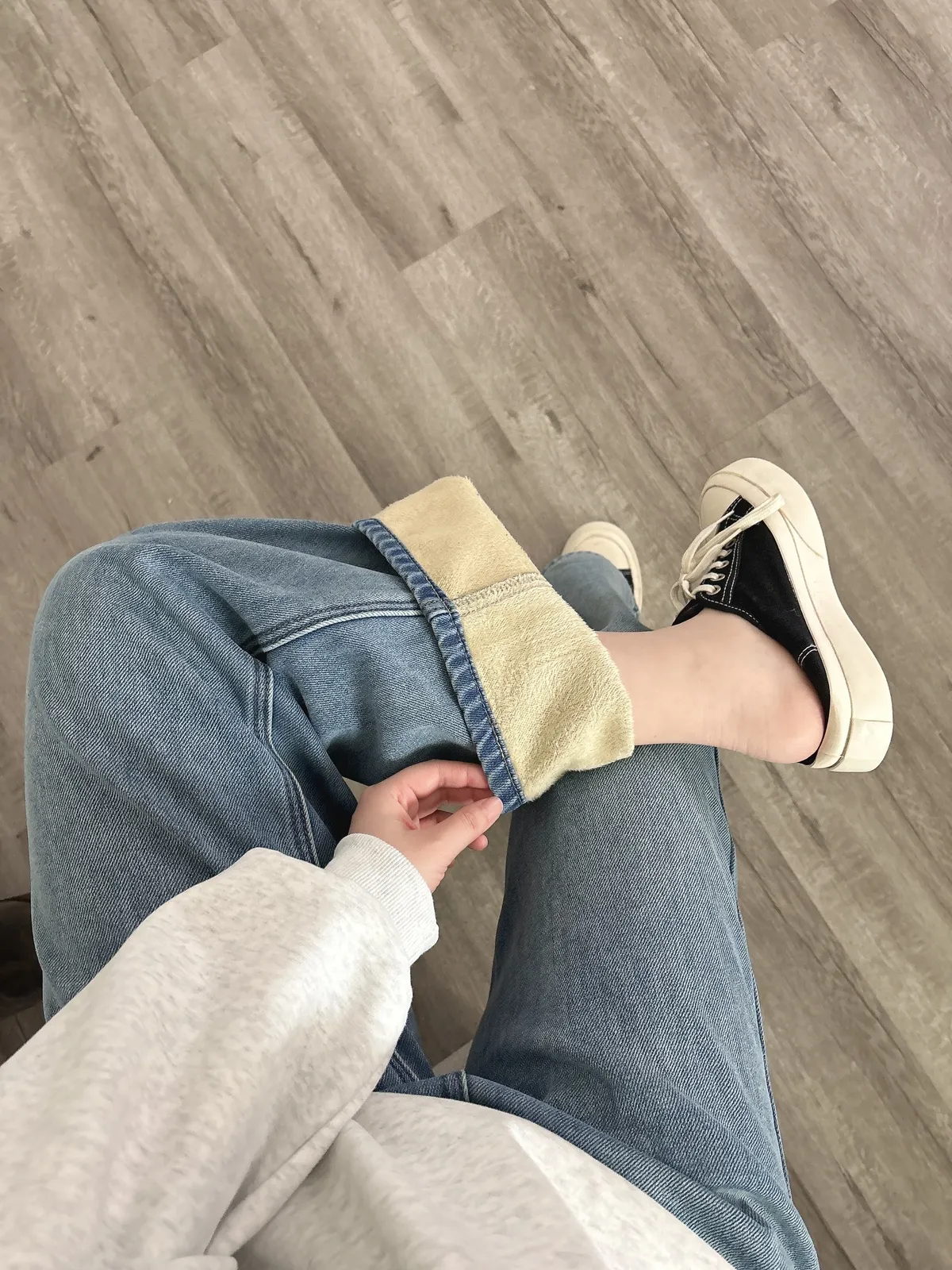內刷毛加厚牛仔寬褲
