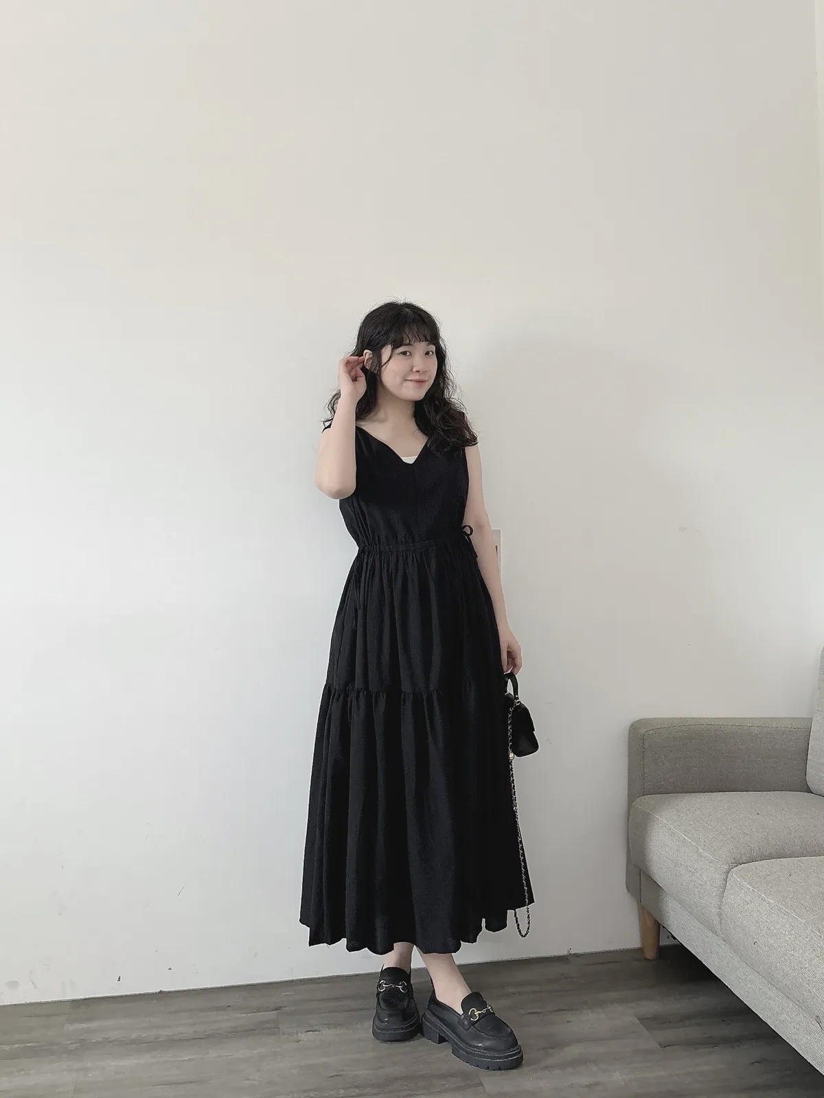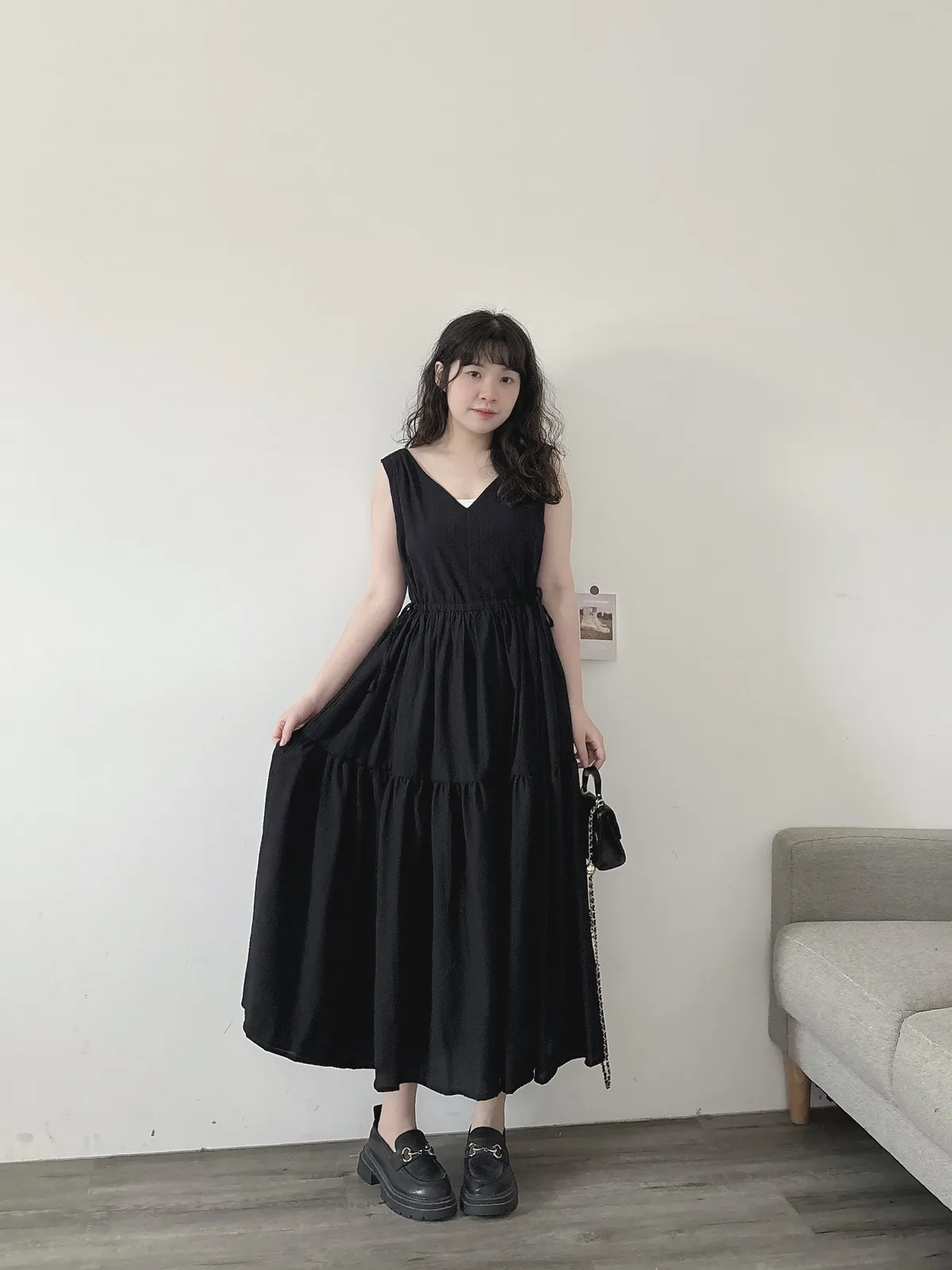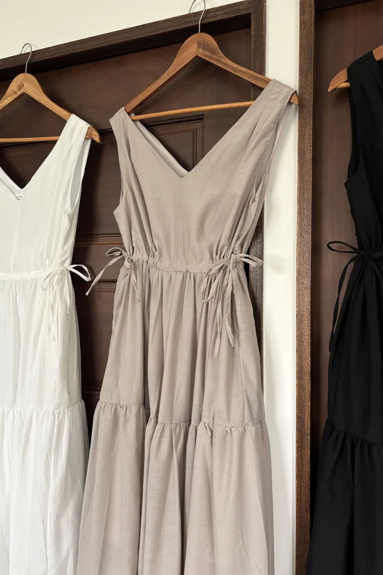 V領修手臂綁帶洋裝