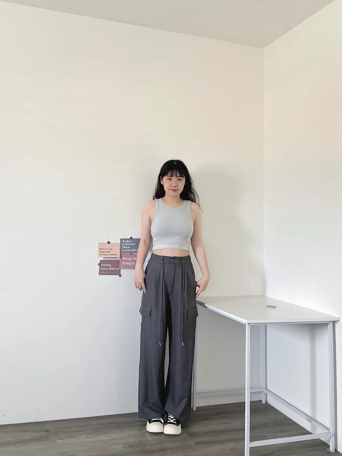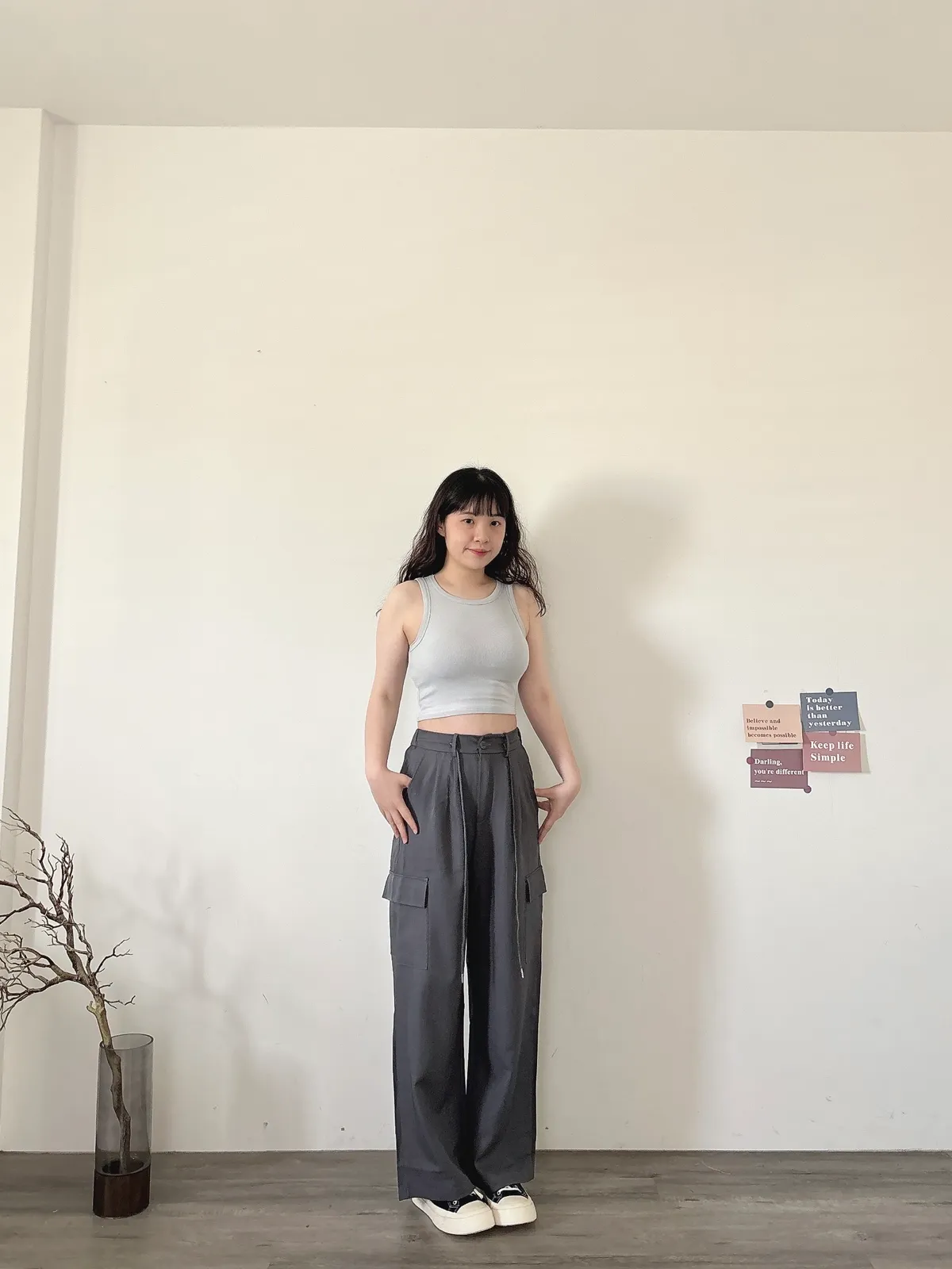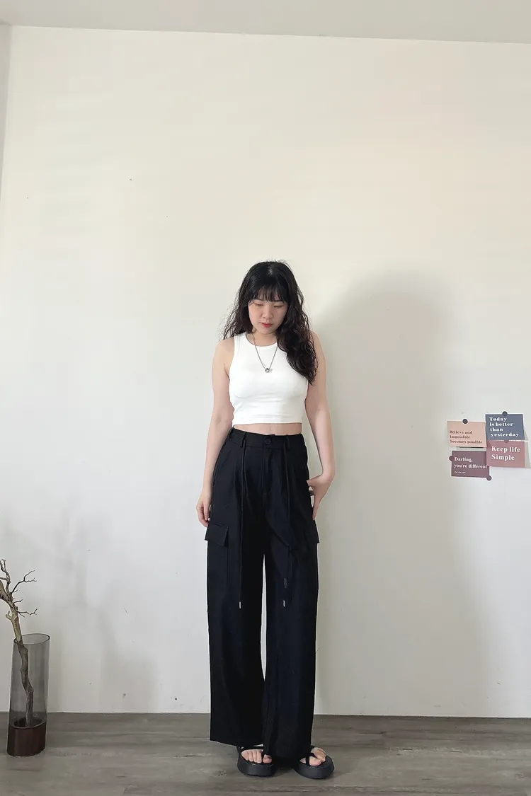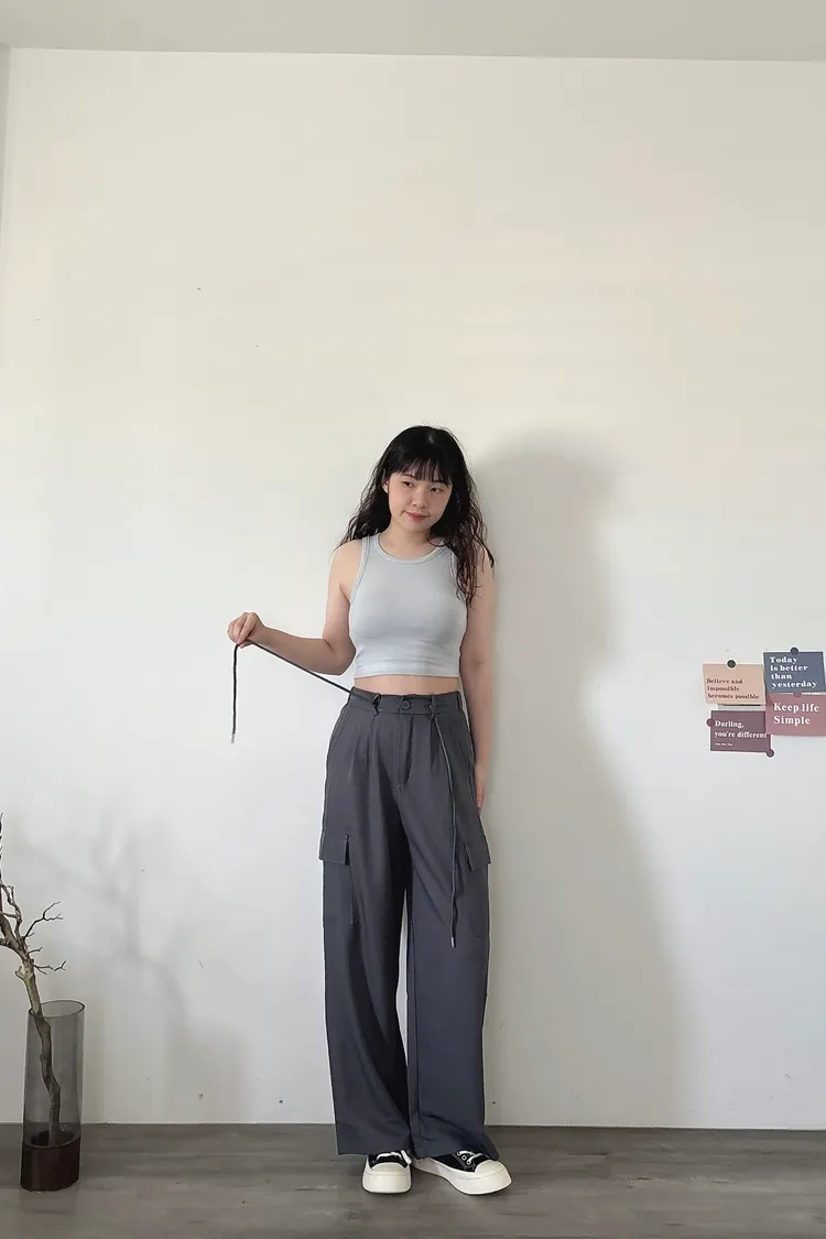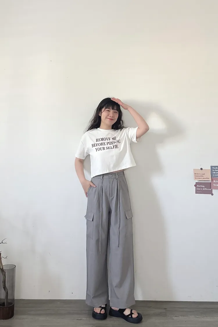 後鬆緊俐落工裝褲