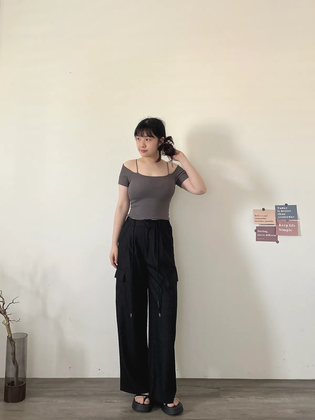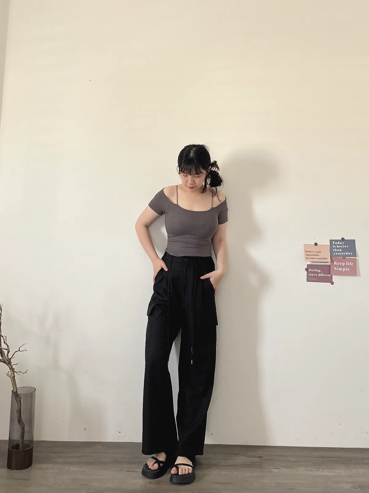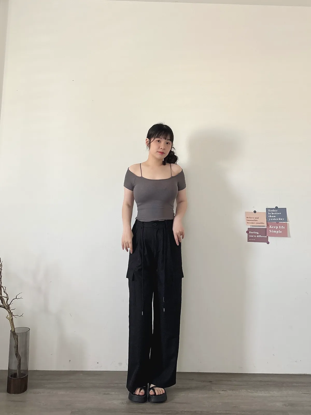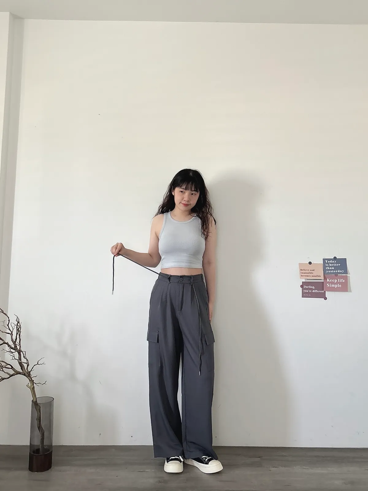 後鬆緊俐落工裝褲