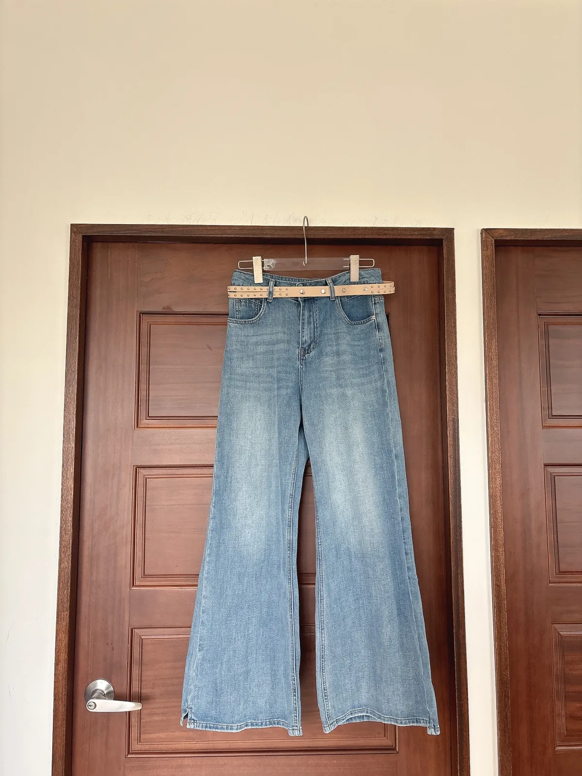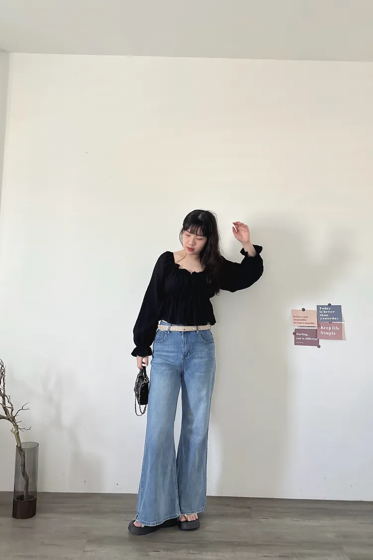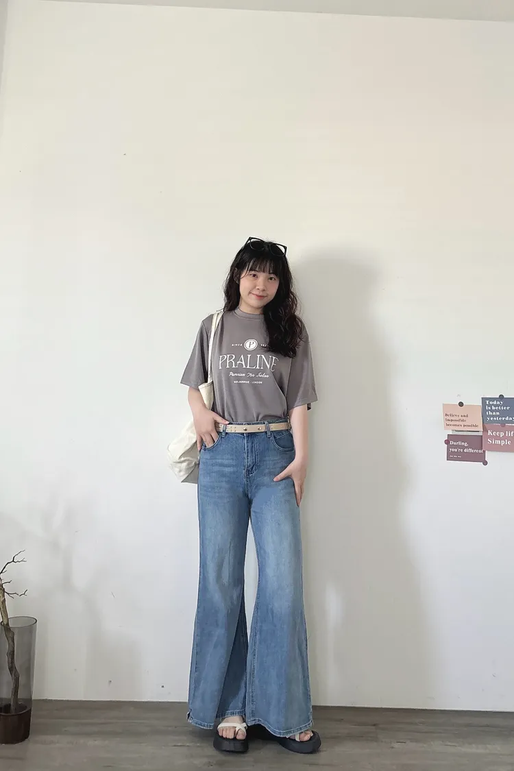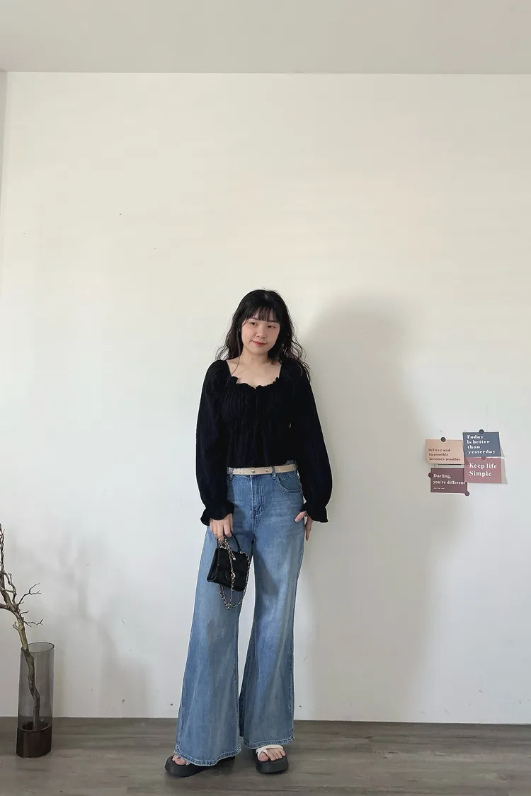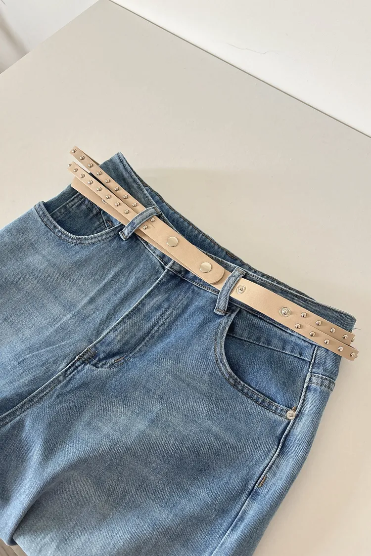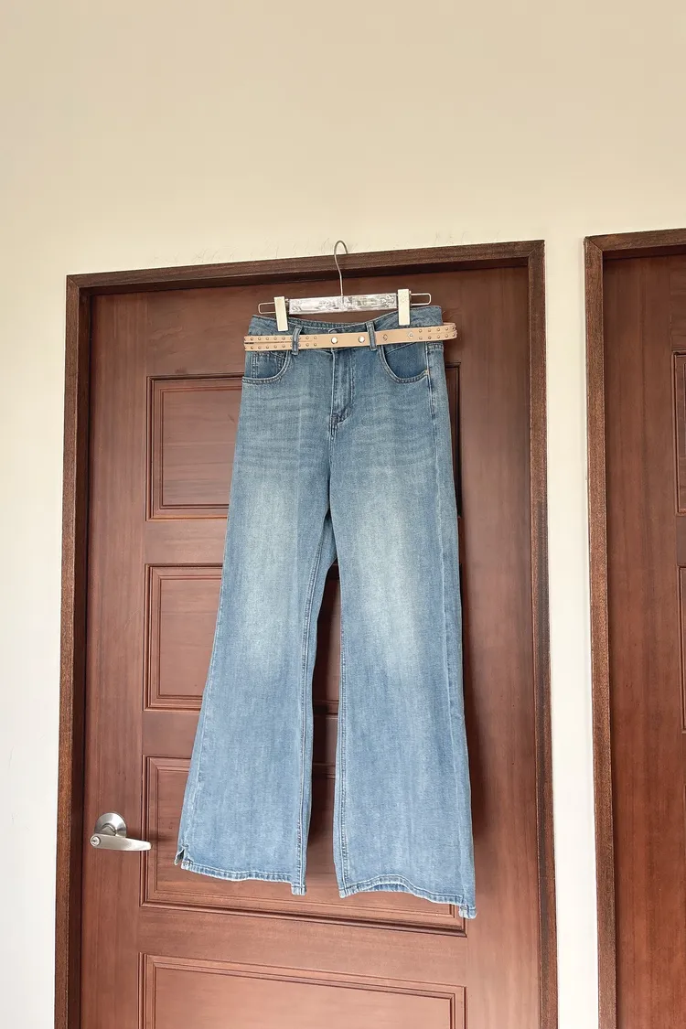開春藍牛仔喇叭褲(送腰帶)