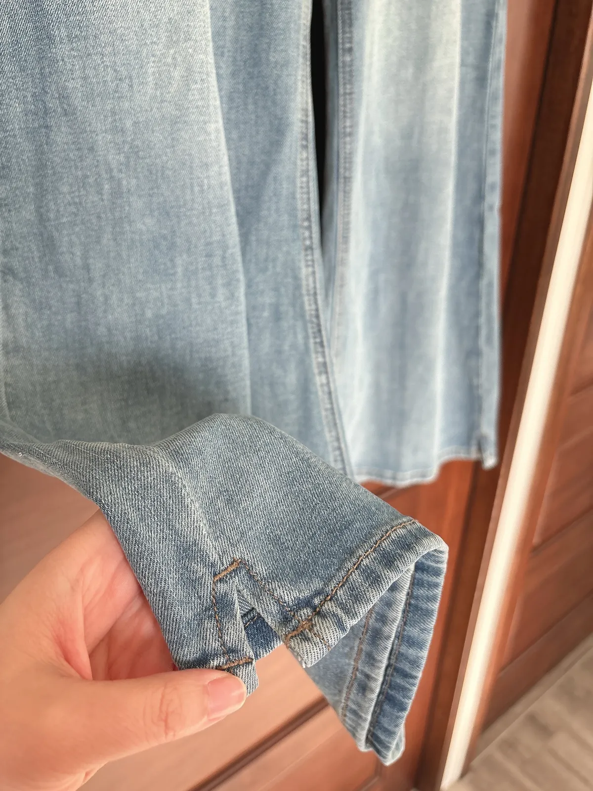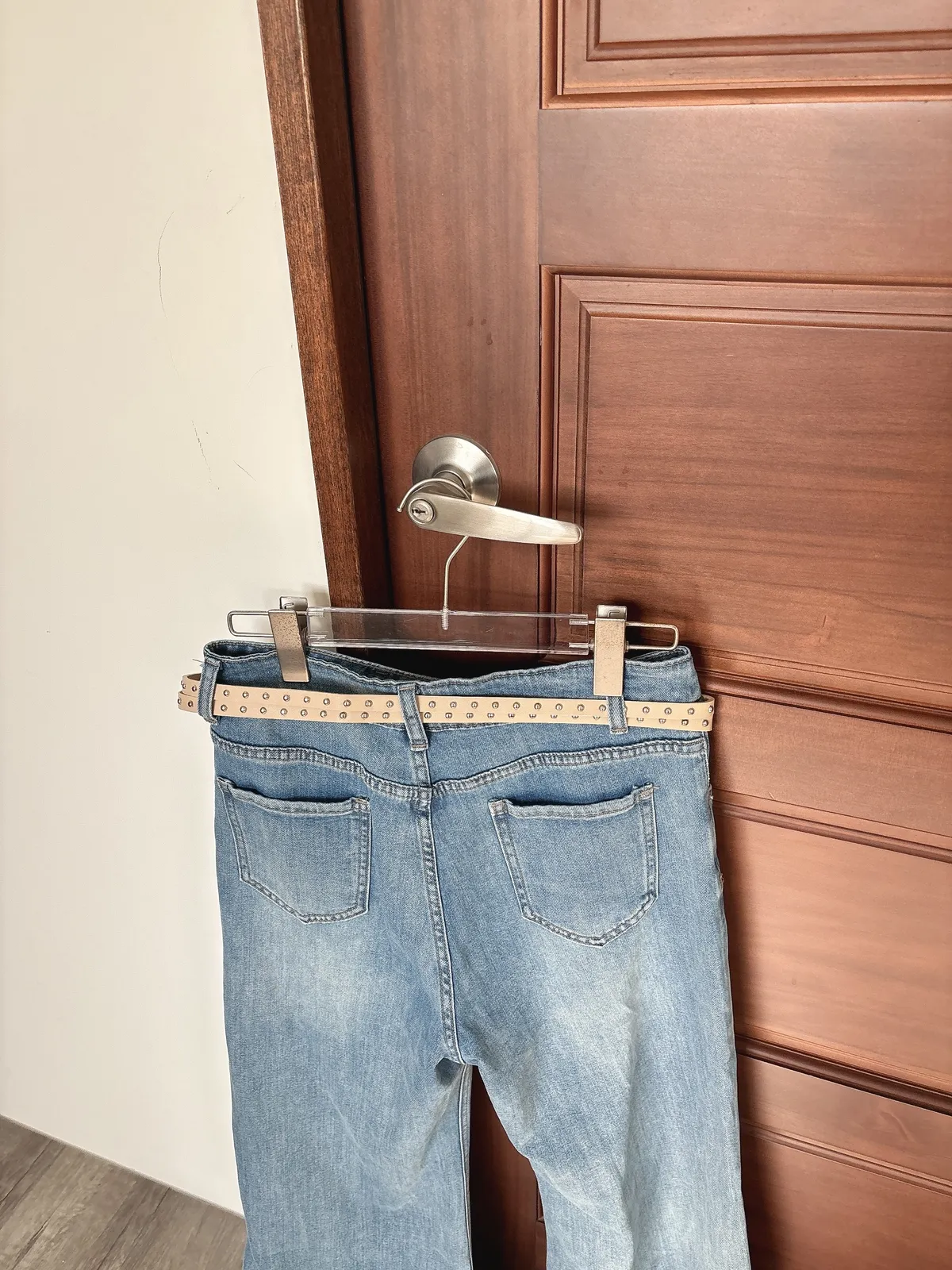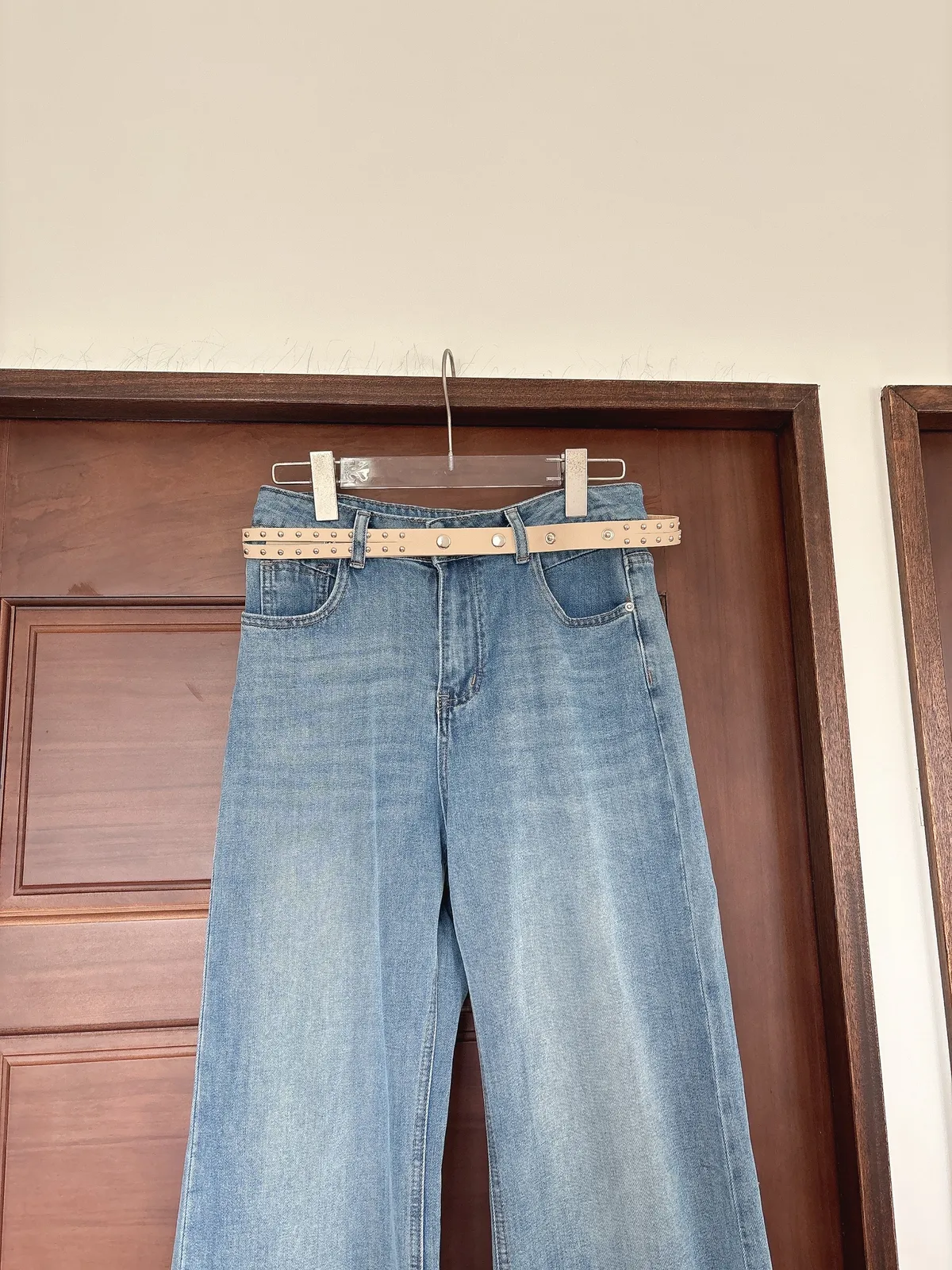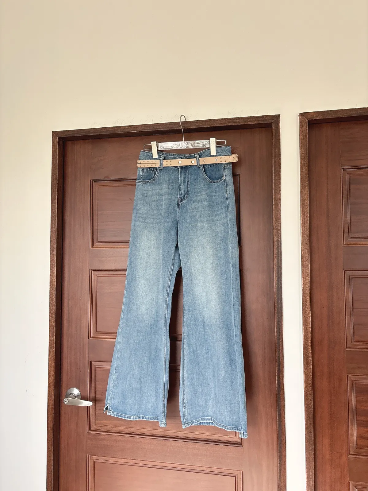 開春藍牛仔喇叭褲(送腰帶)