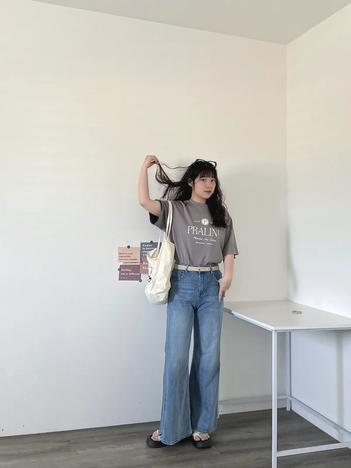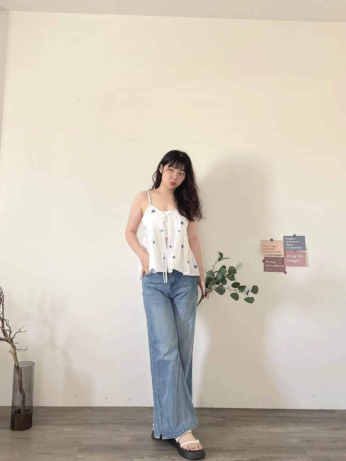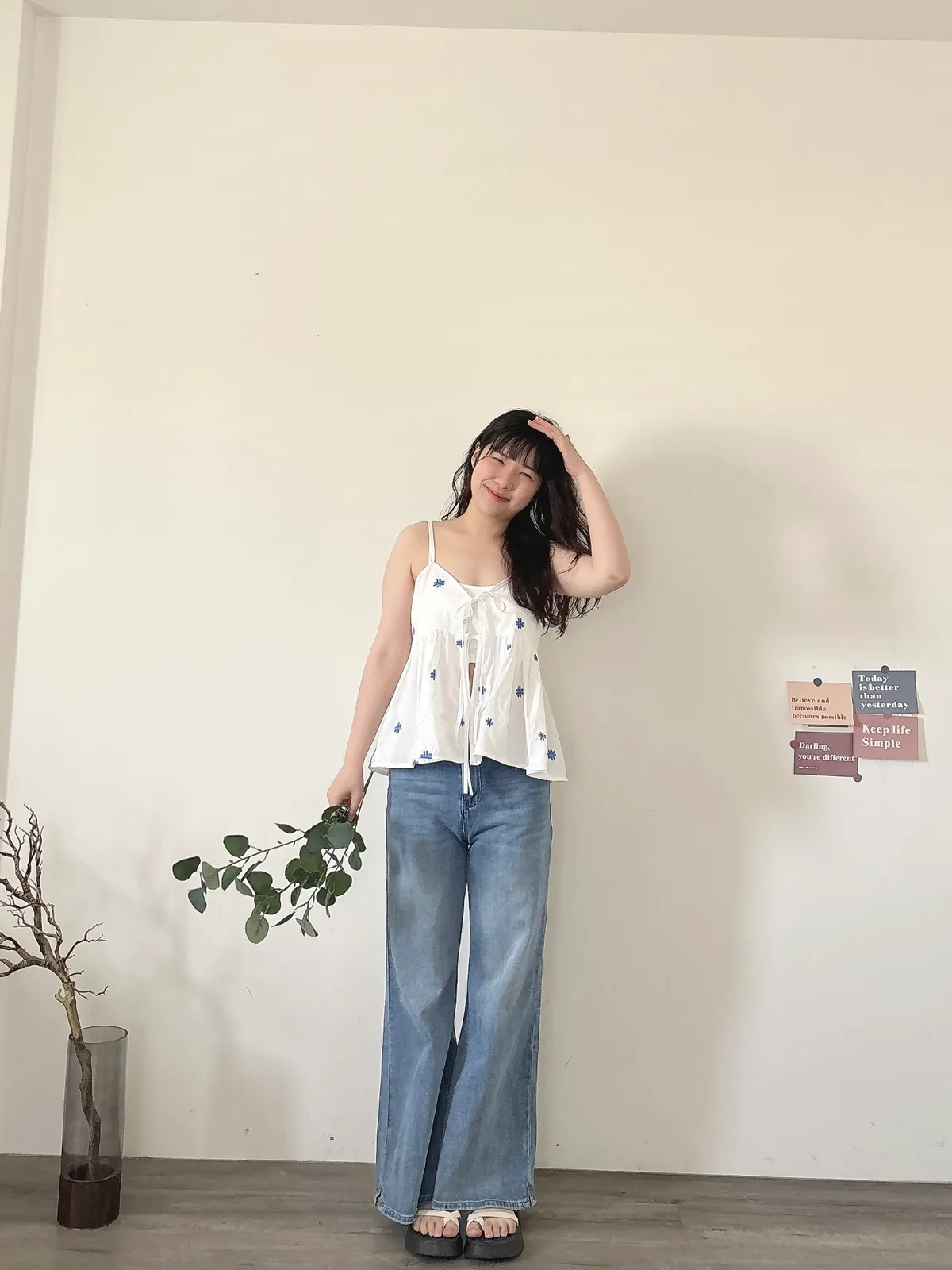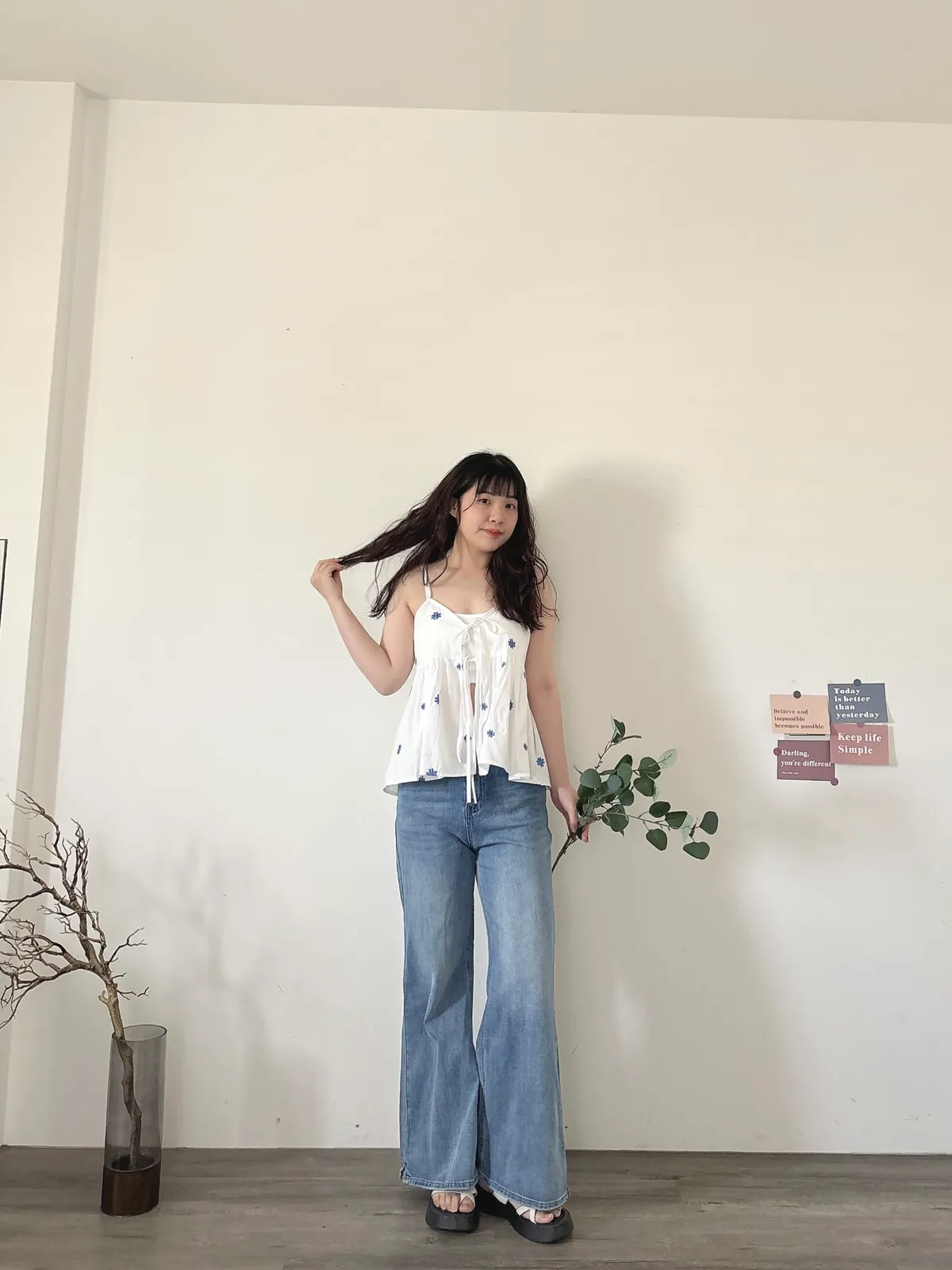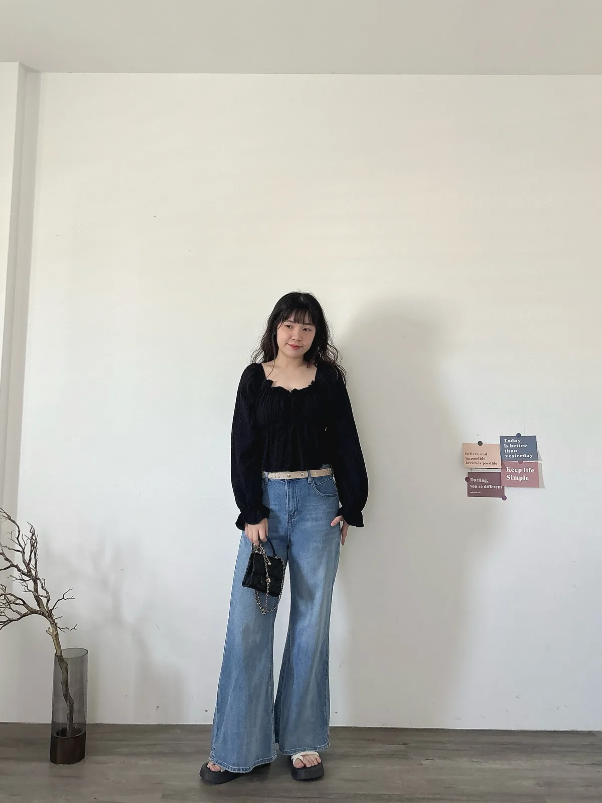 開春藍牛仔喇叭褲(送腰帶)