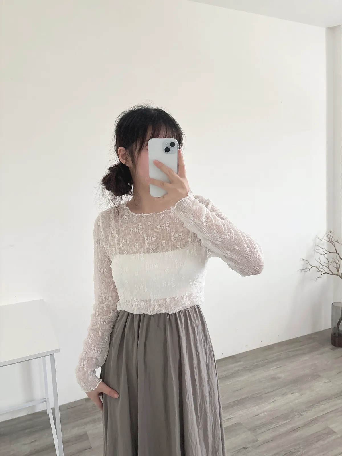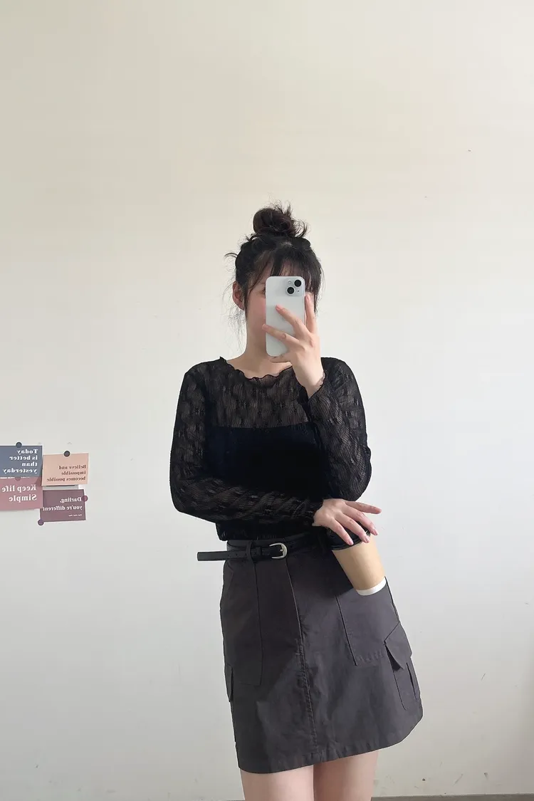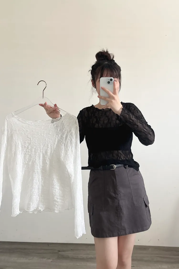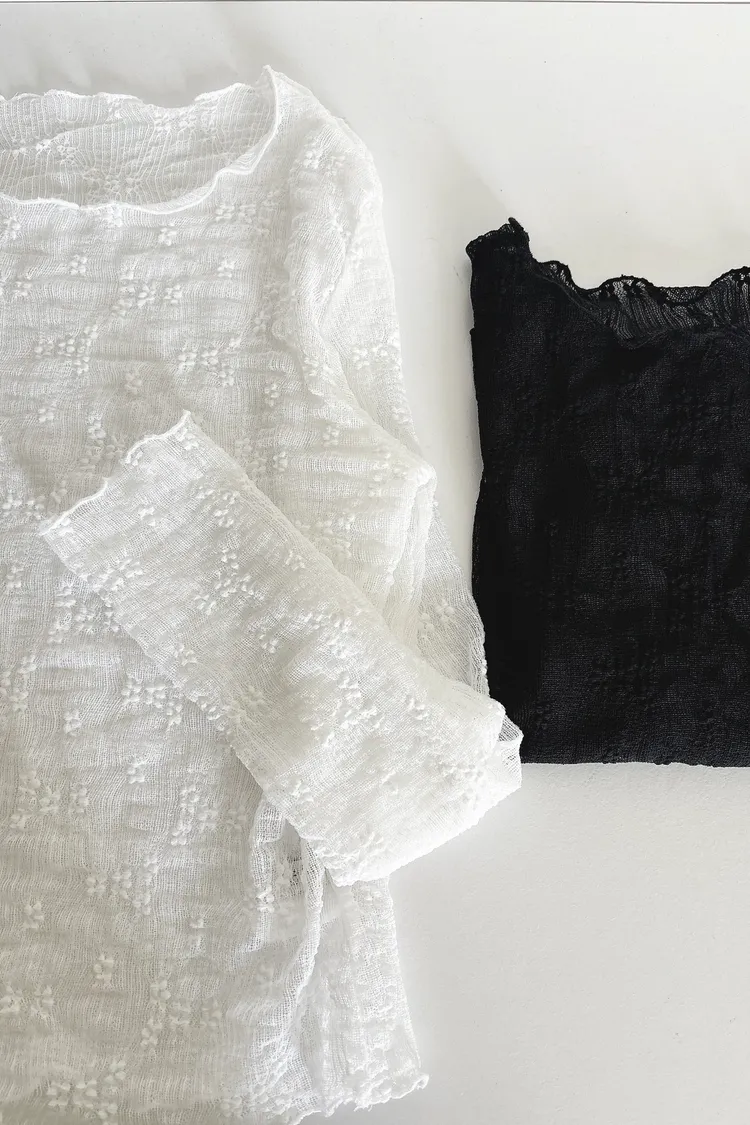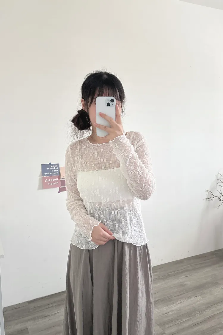 緹花透膚長袖