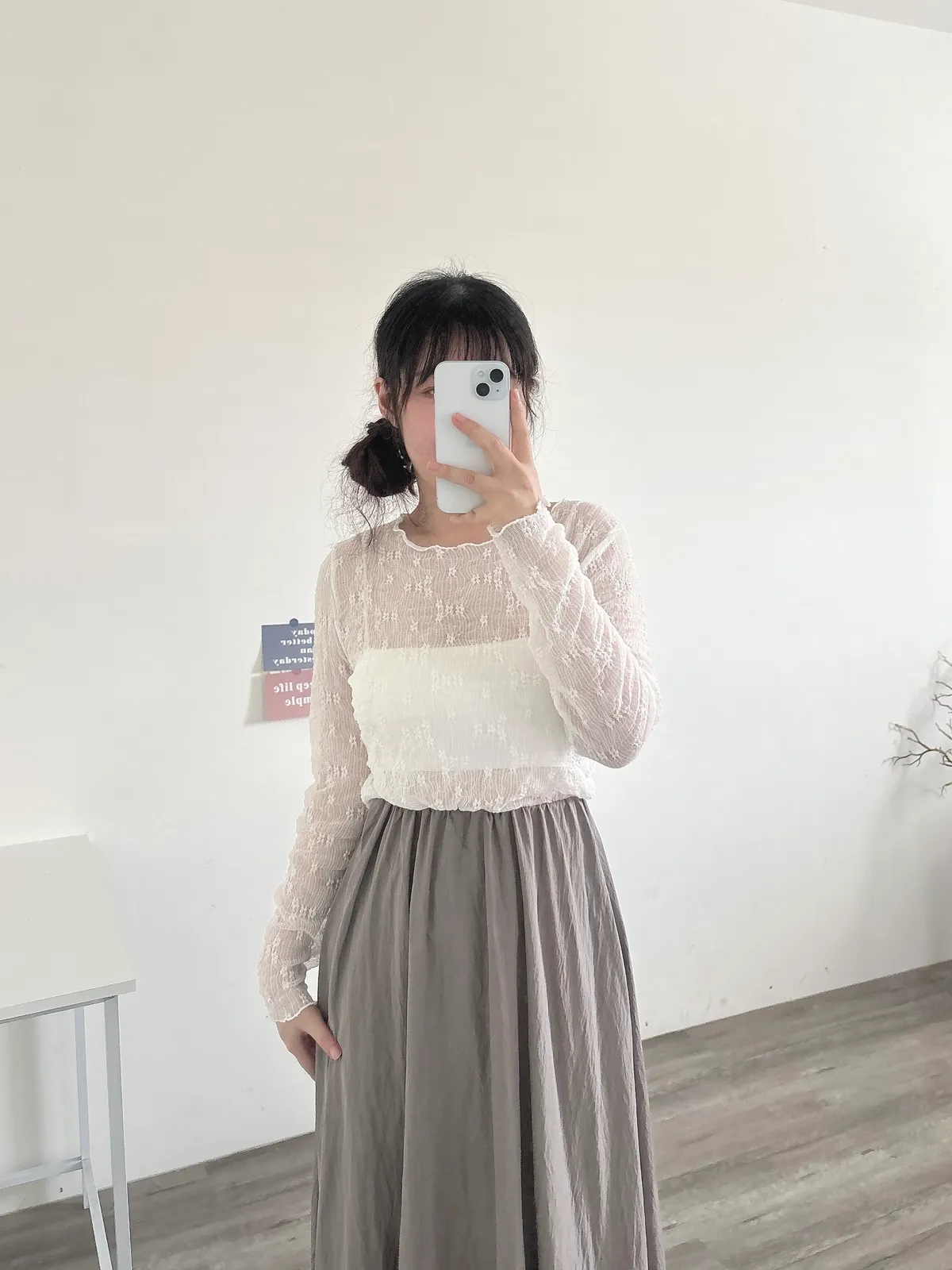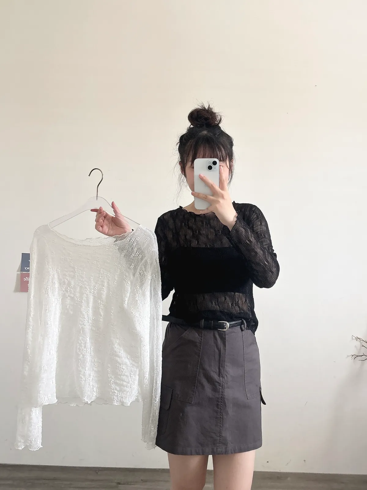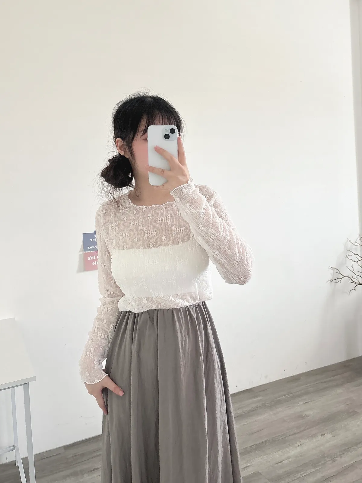 緹花透膚長袖