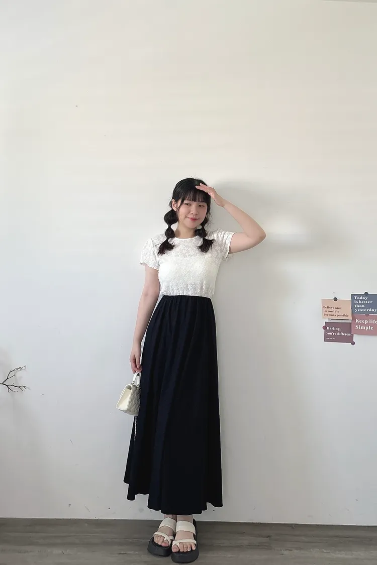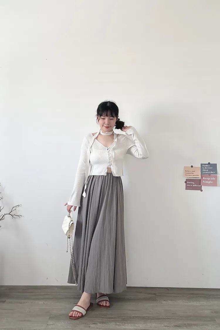 極瘦!鬆散裙擺長裙
