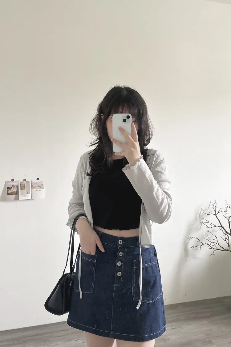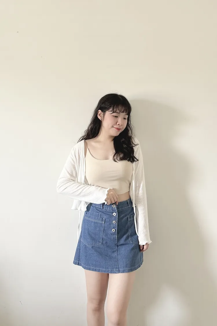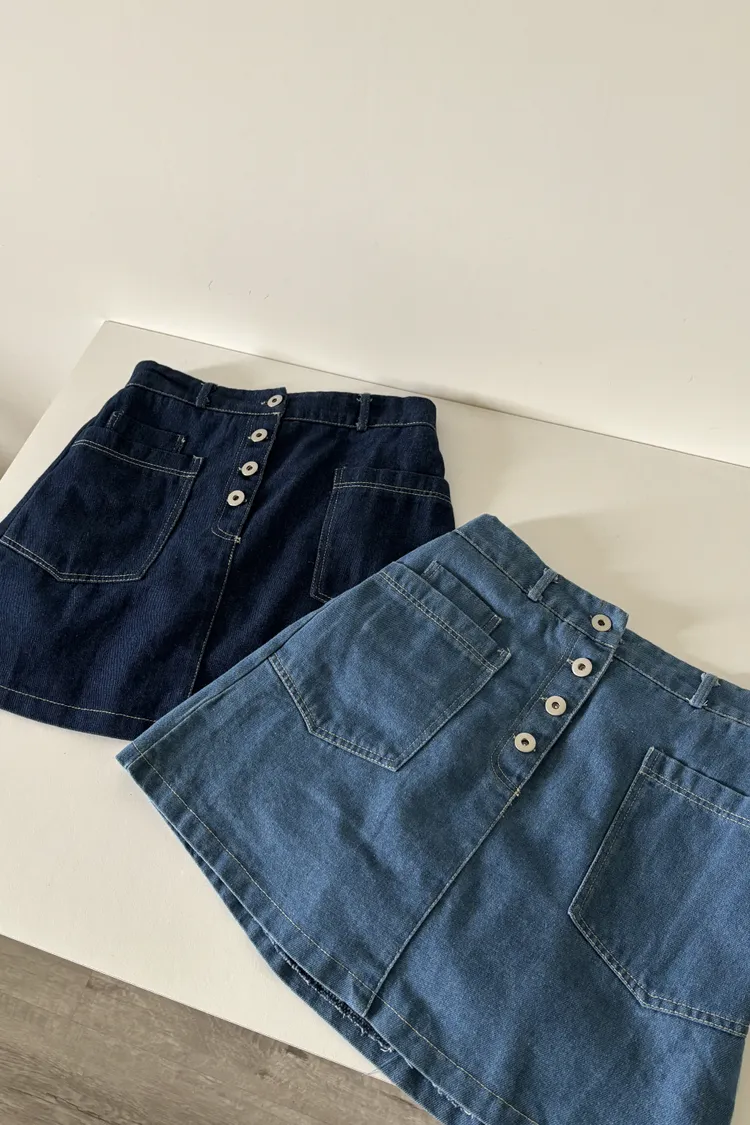 最後現貨!排釦牛仔口袋短裙