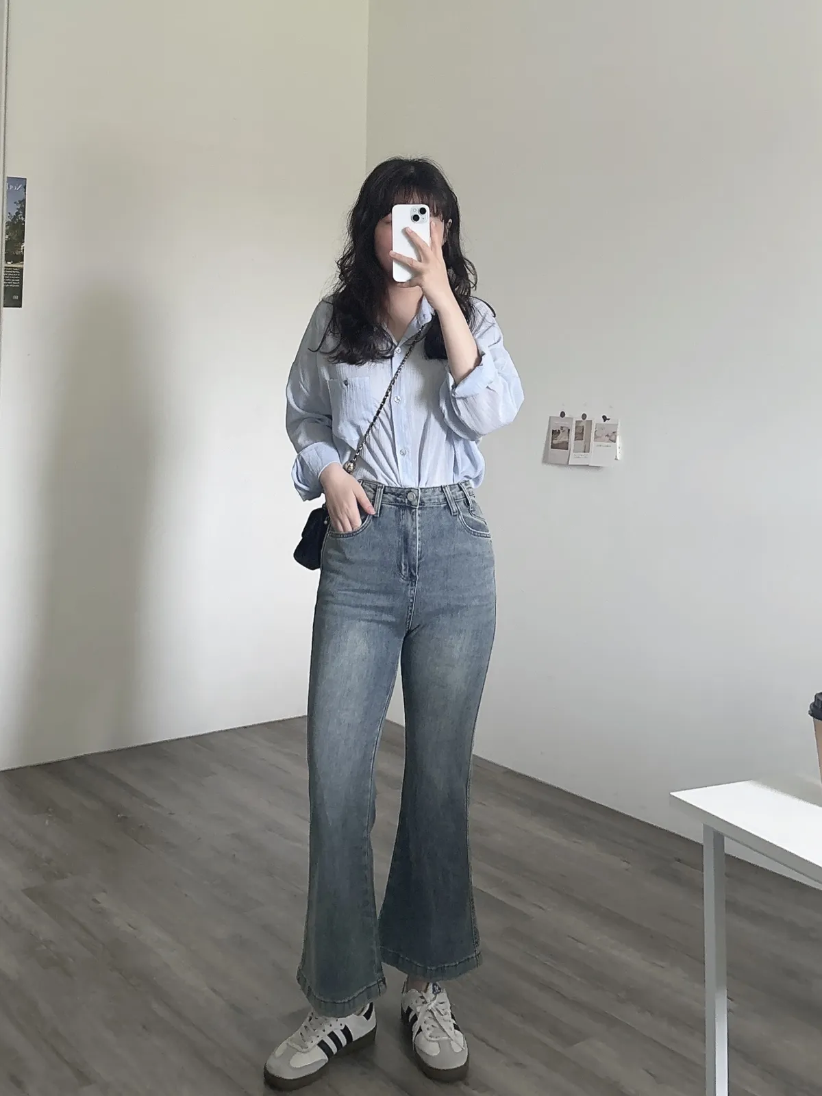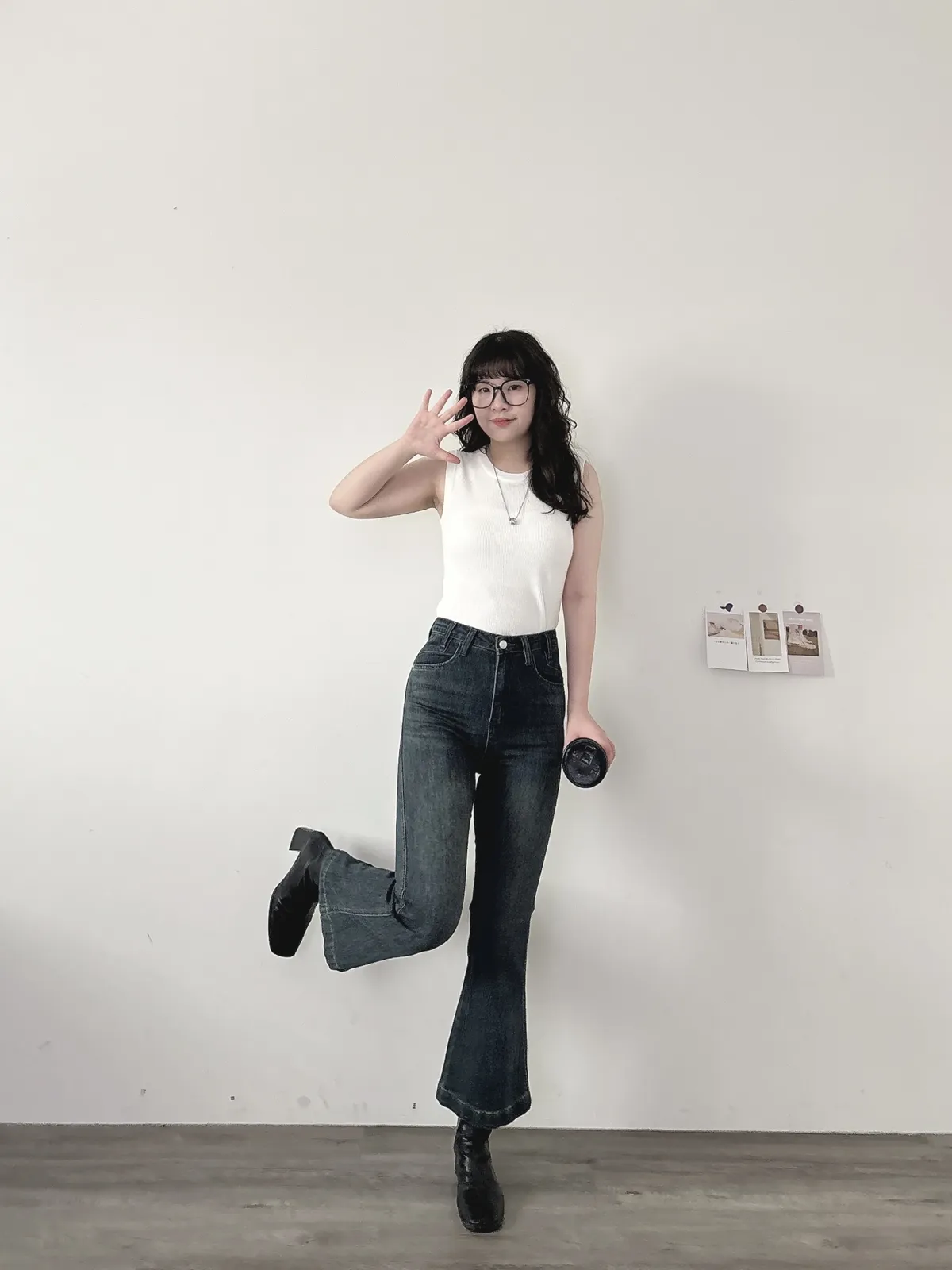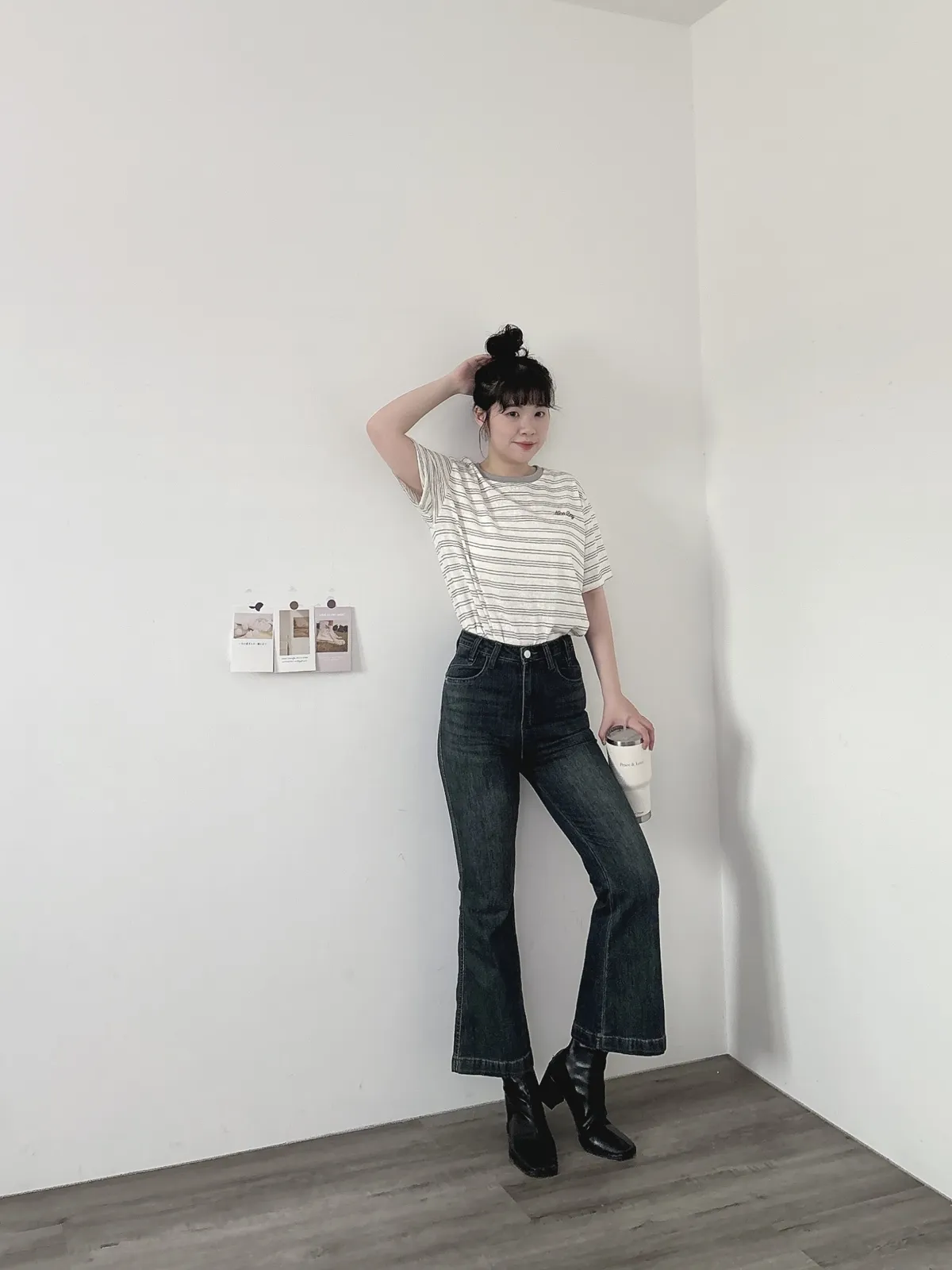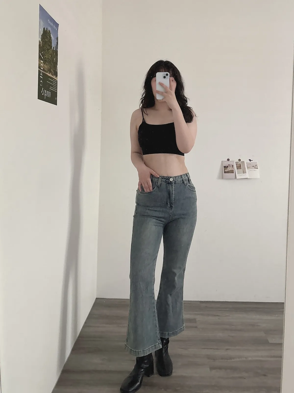 最後現貨!綁定小隻復古色喇叭牛仔褲