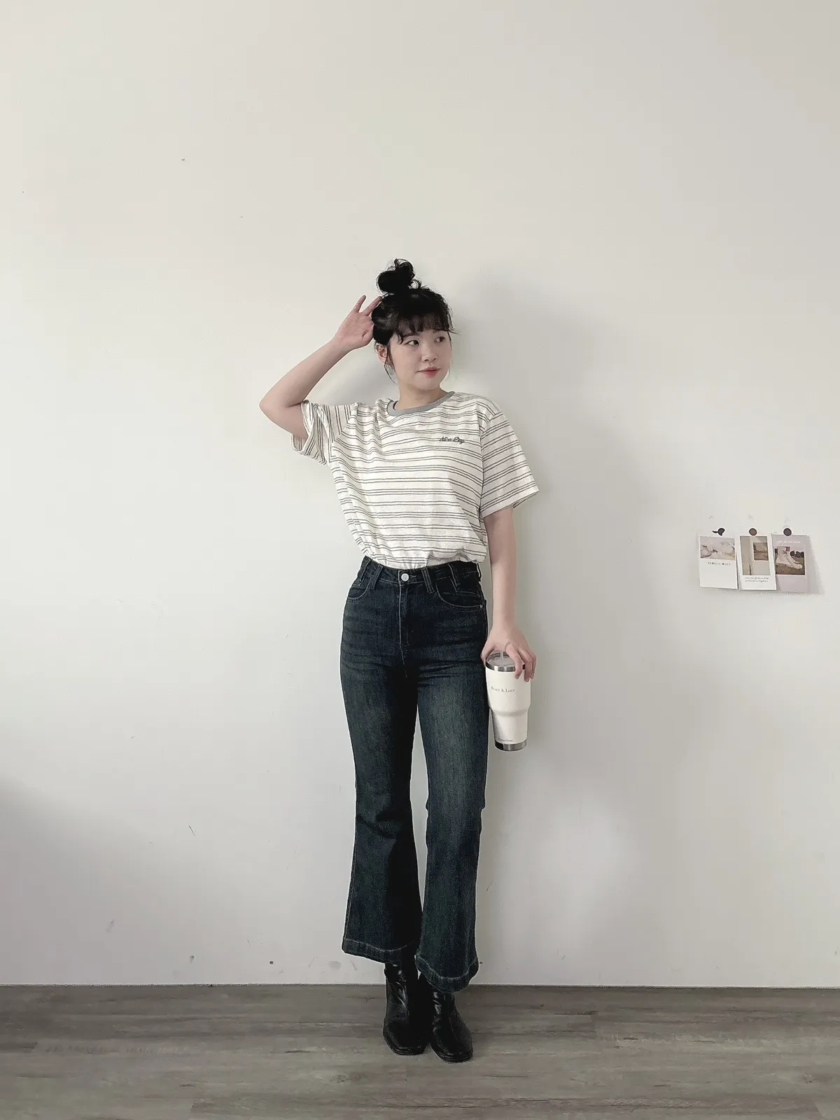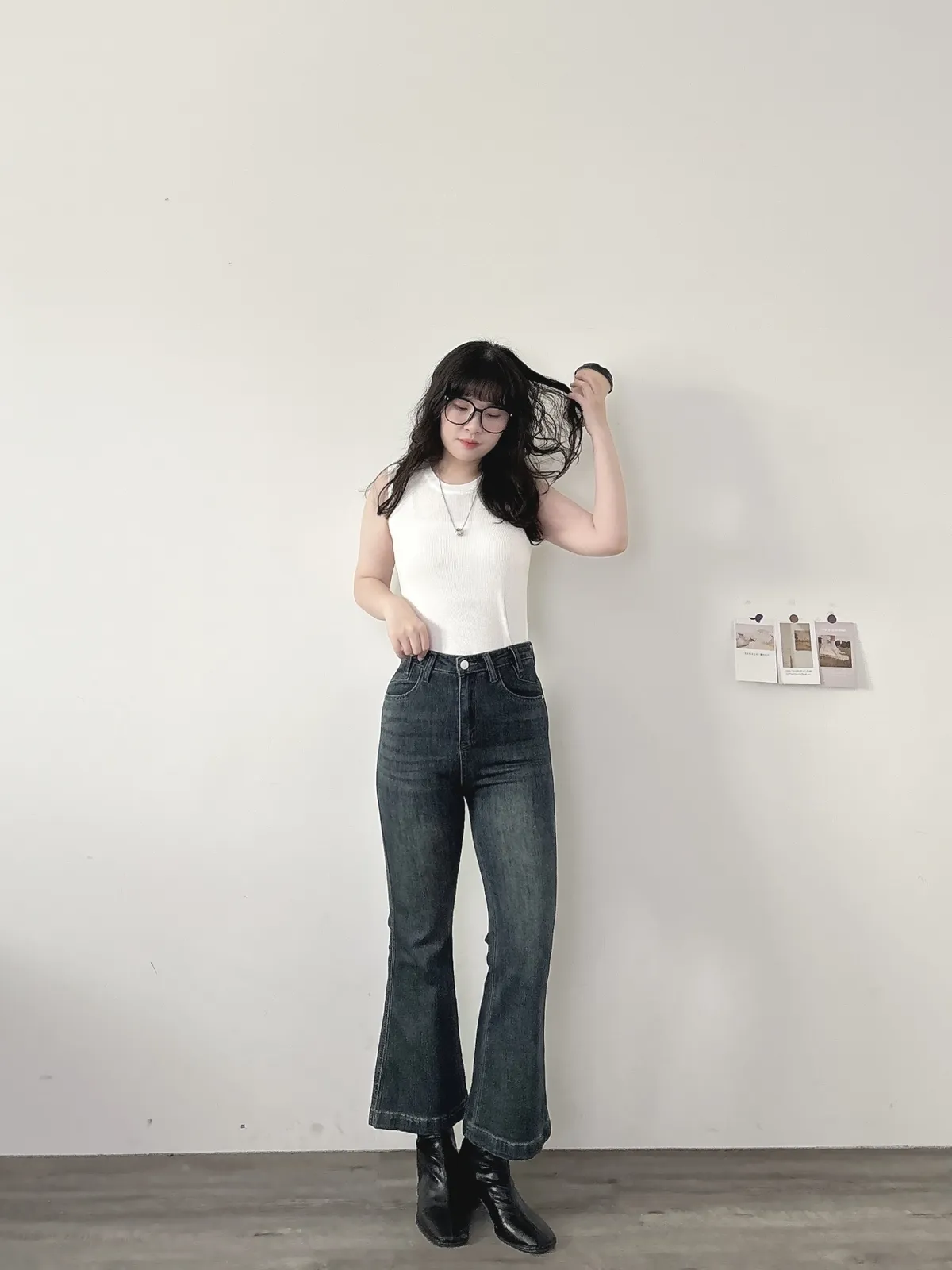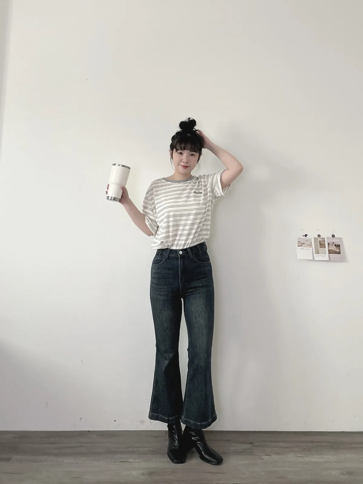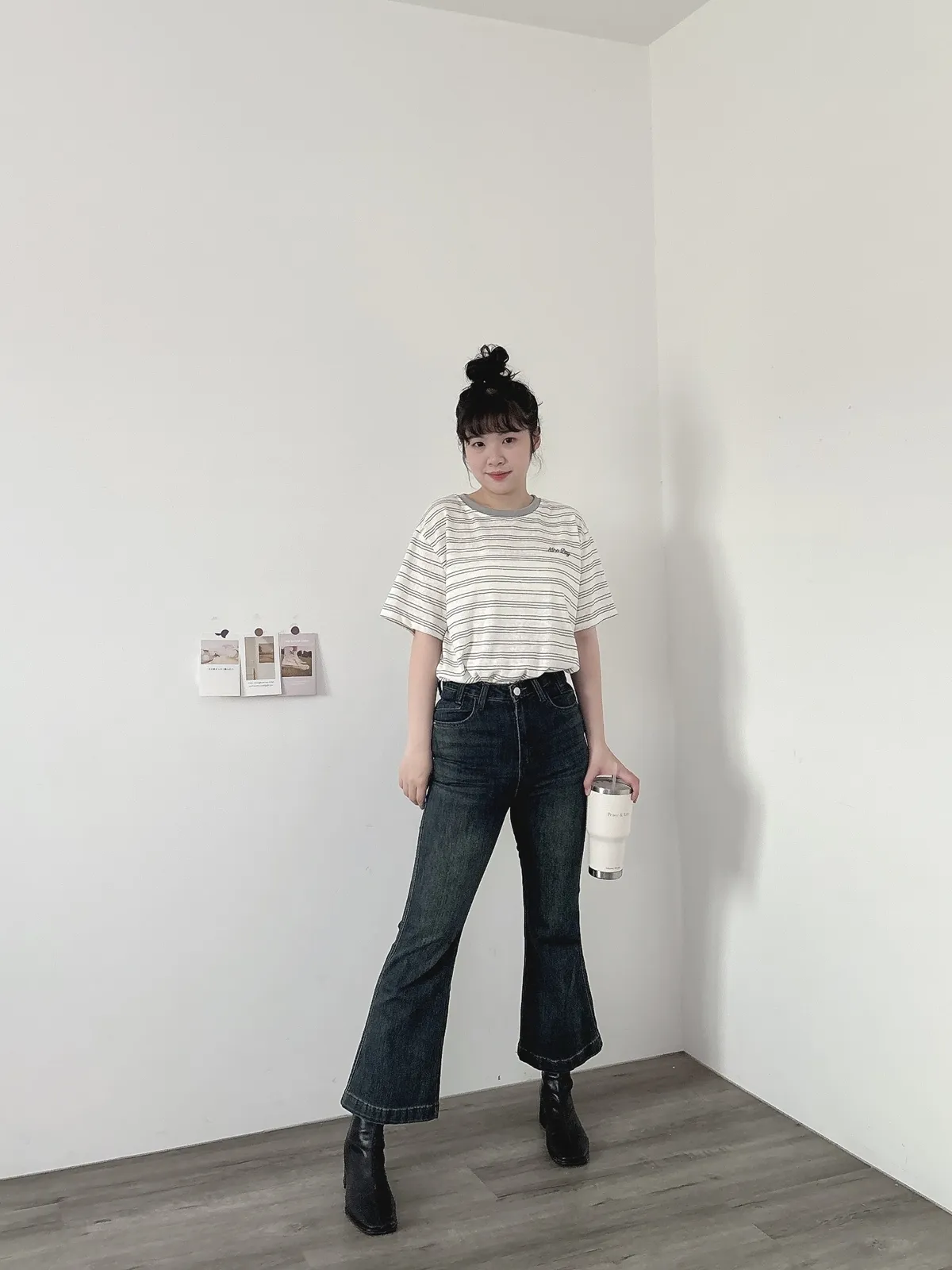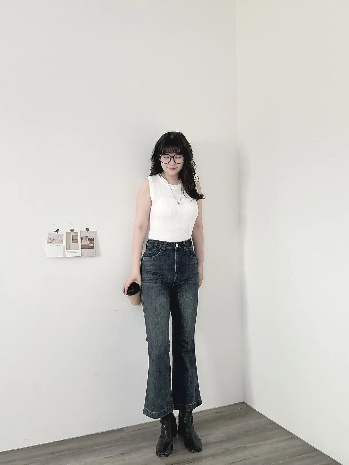 最後現貨!綁定小隻復古色喇叭牛仔褲