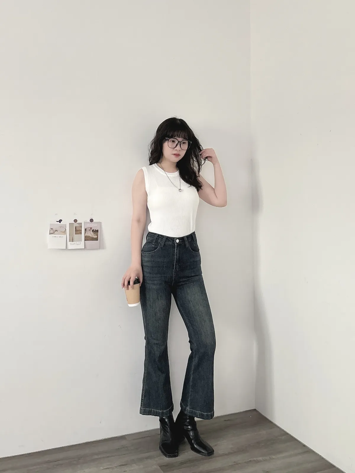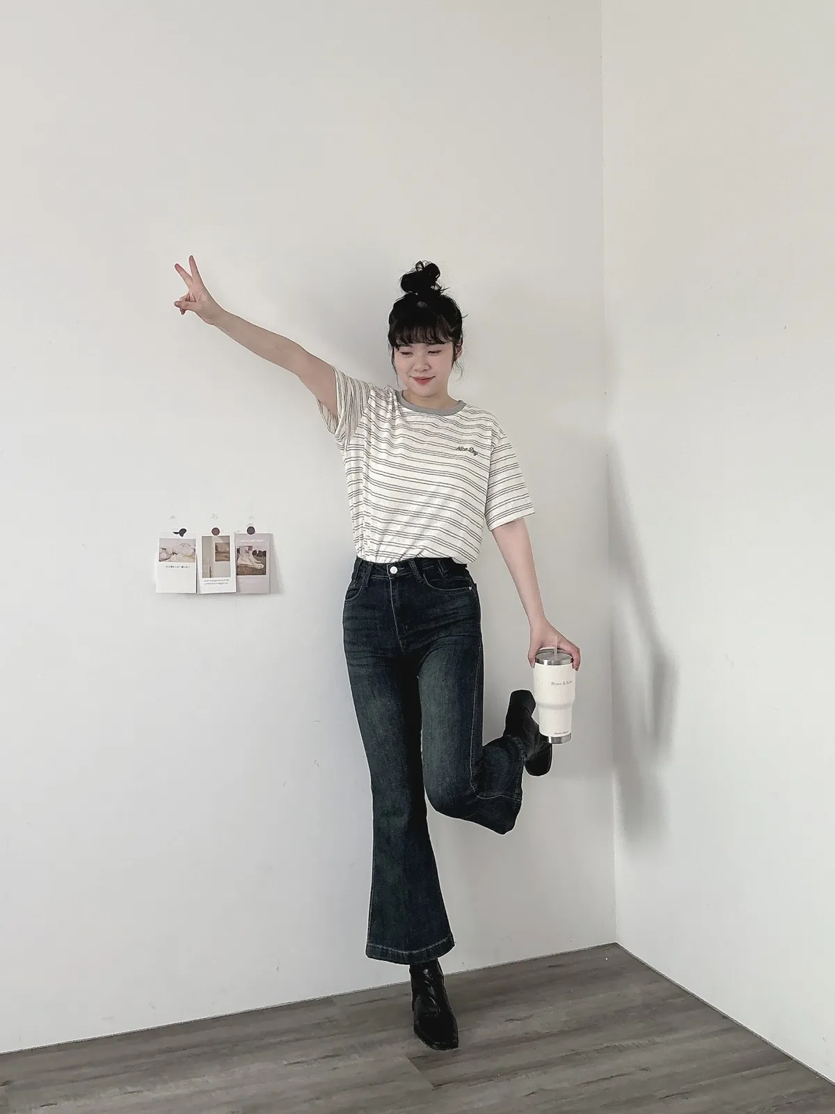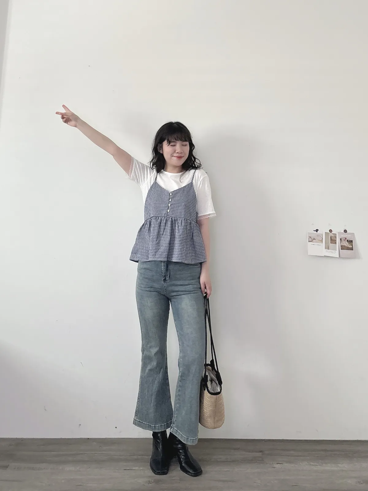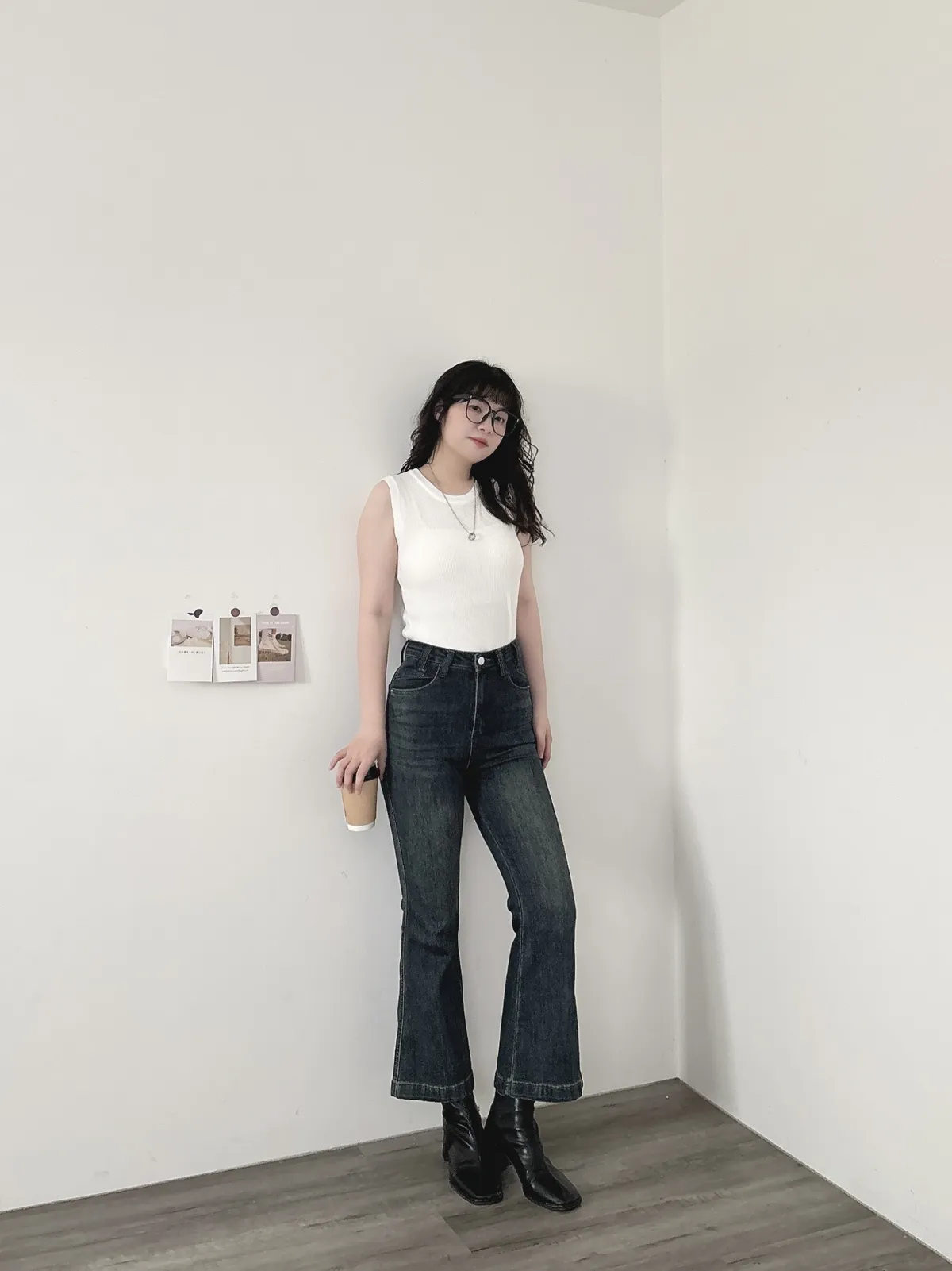 最後現貨!綁定小隻復古色喇叭牛仔褲