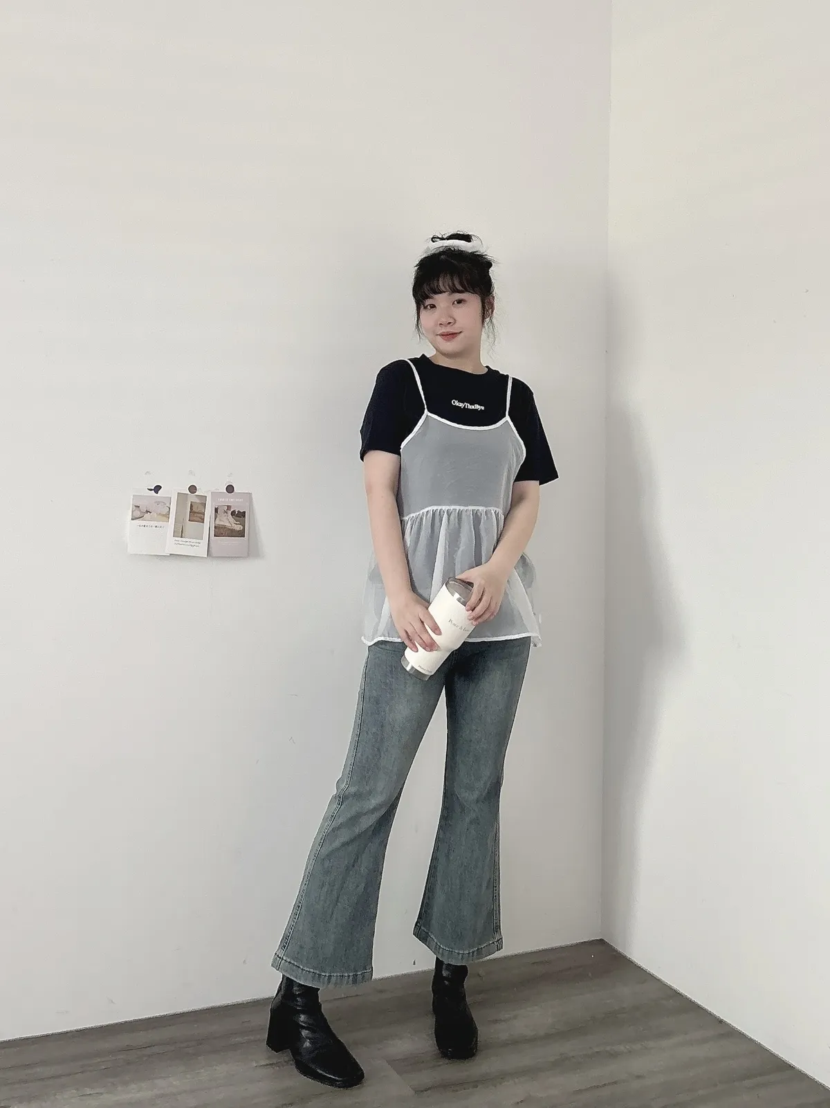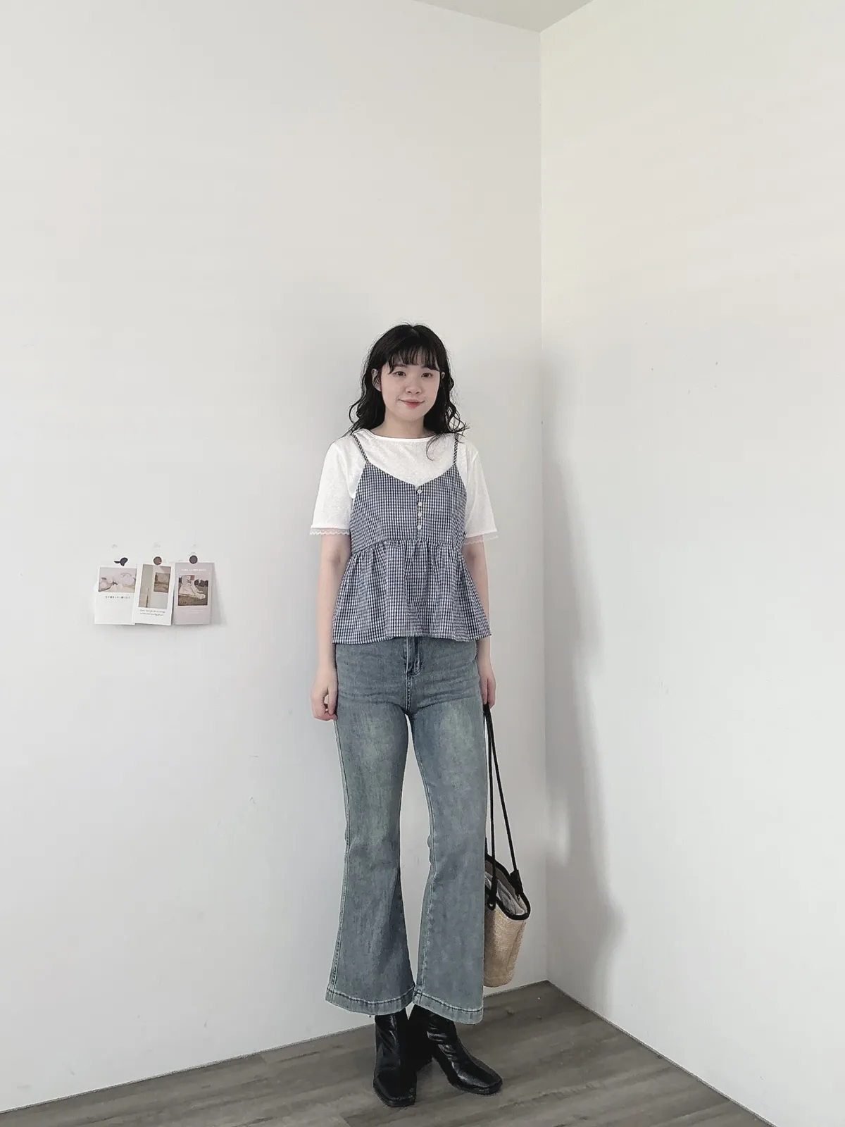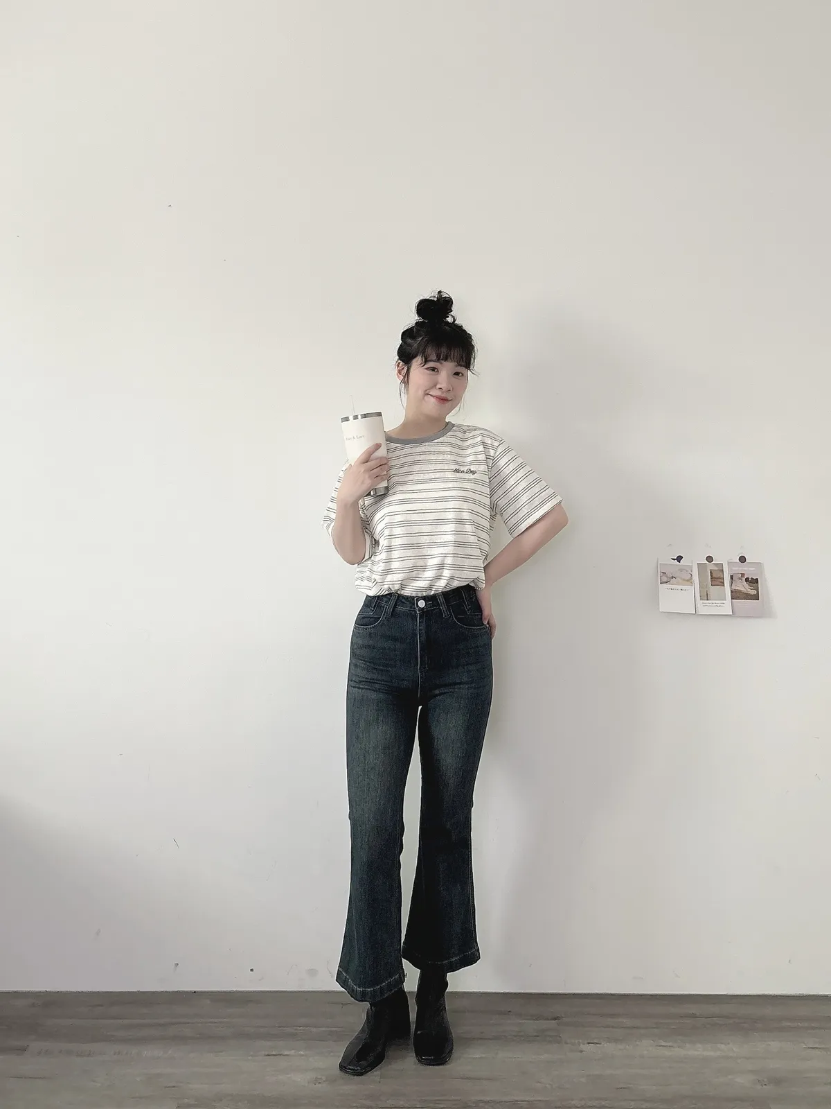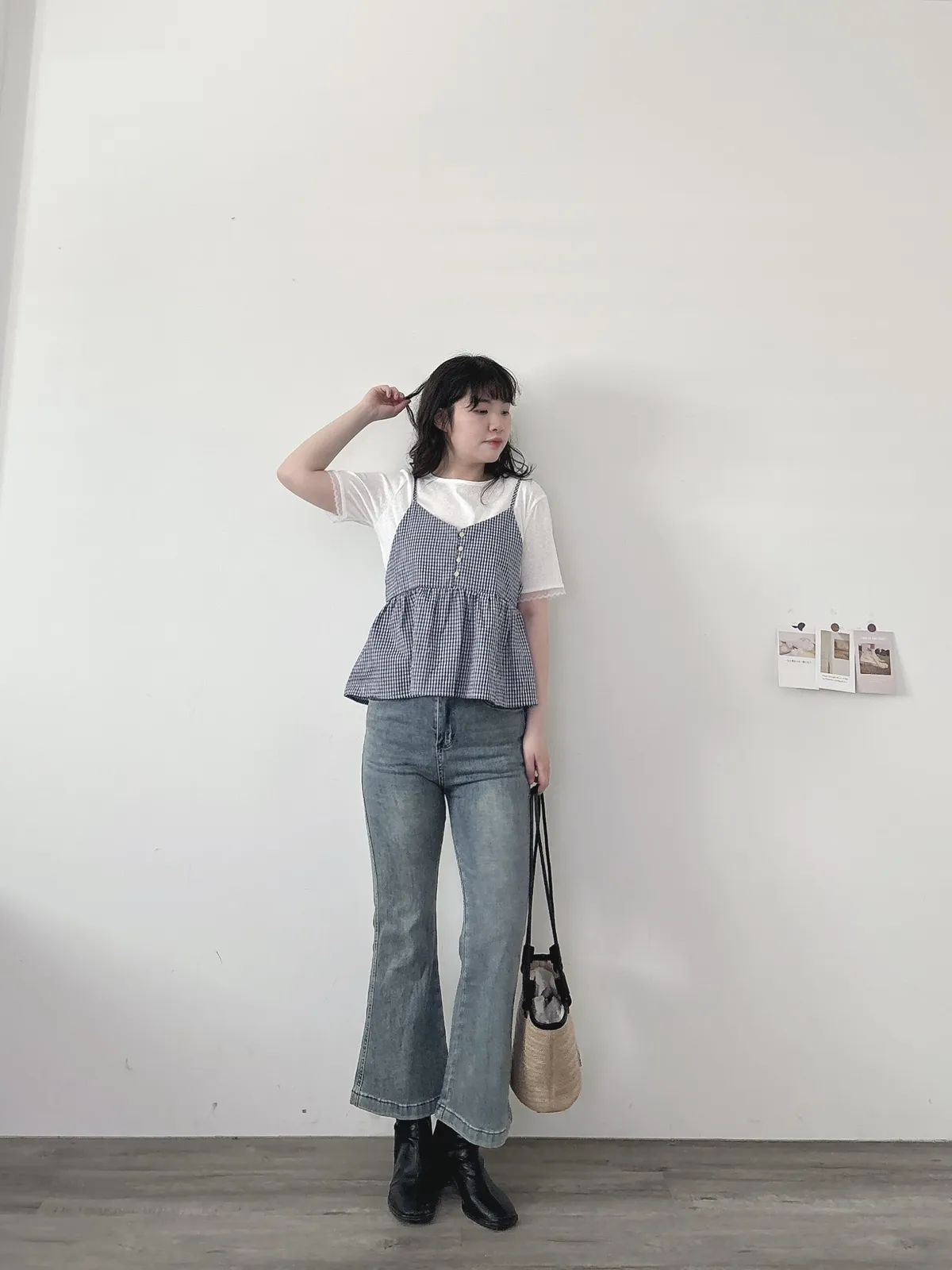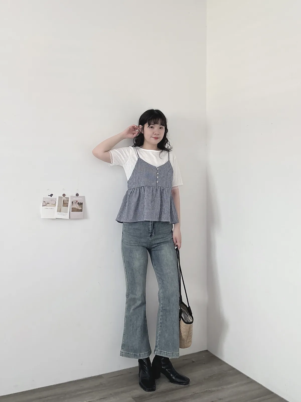 最後現貨!綁定小隻復古色喇叭牛仔褲