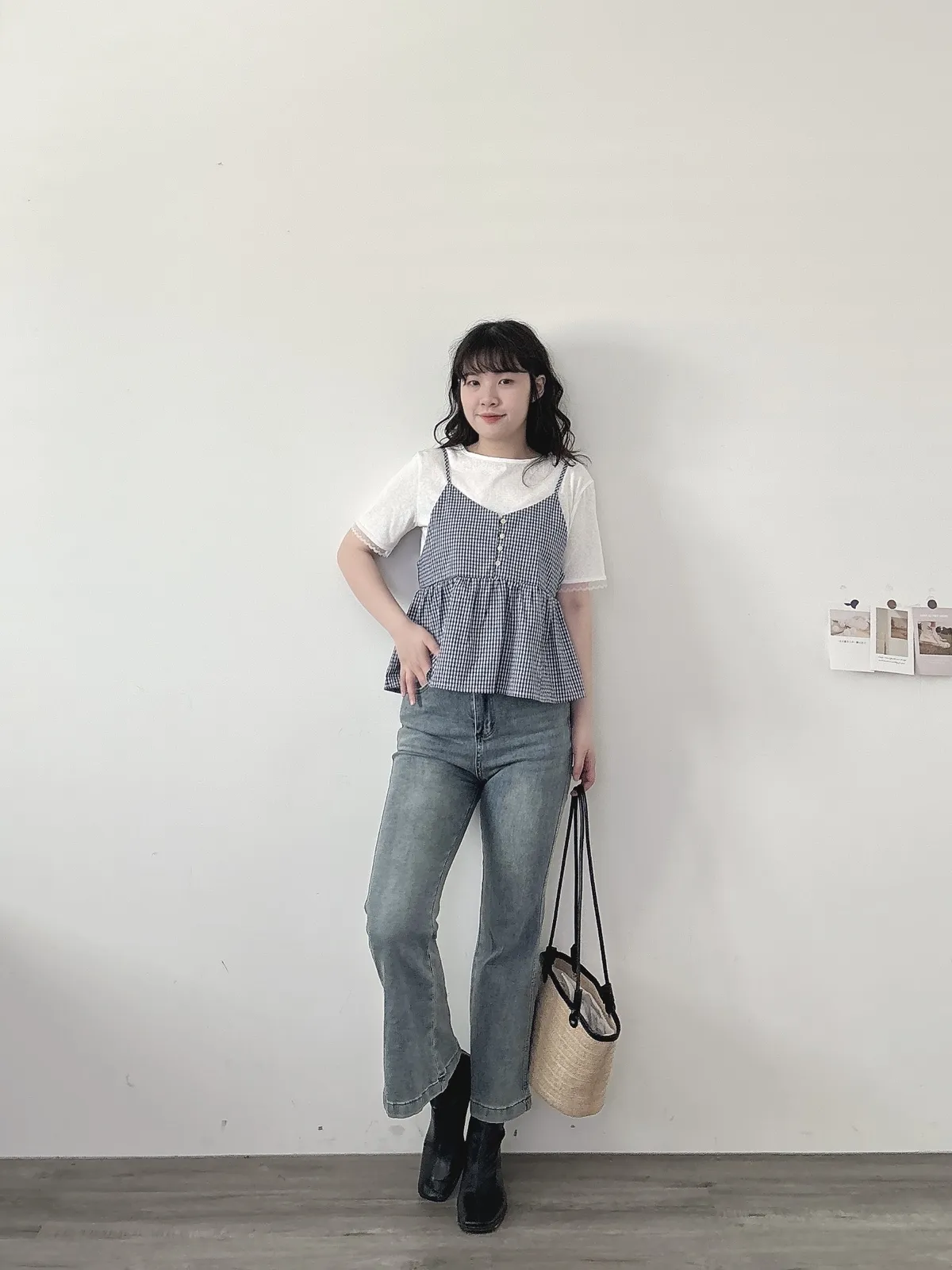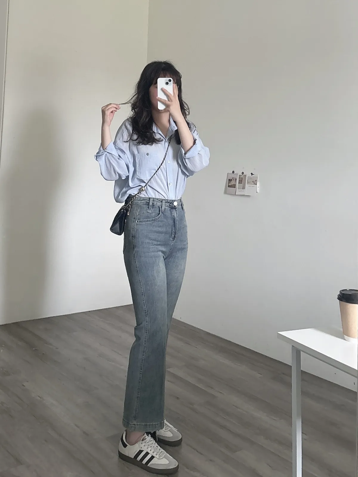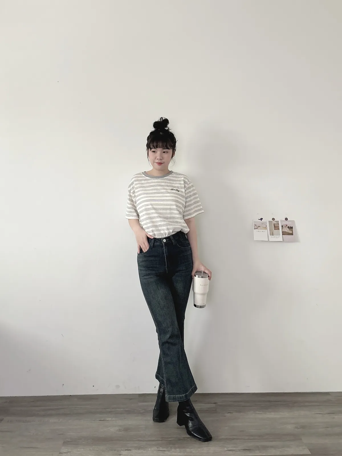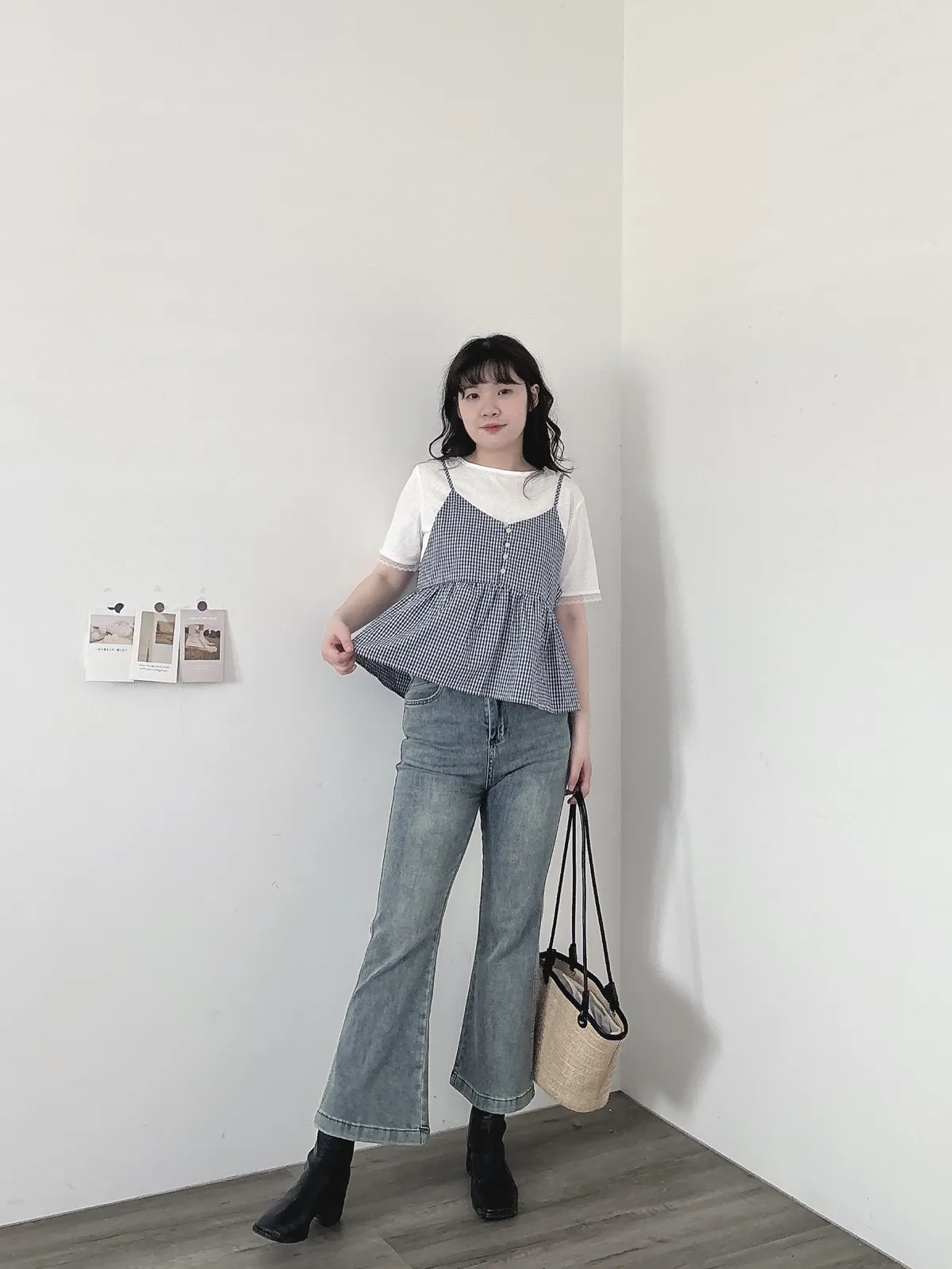 最後現貨!綁定小隻復古色喇叭牛仔褲