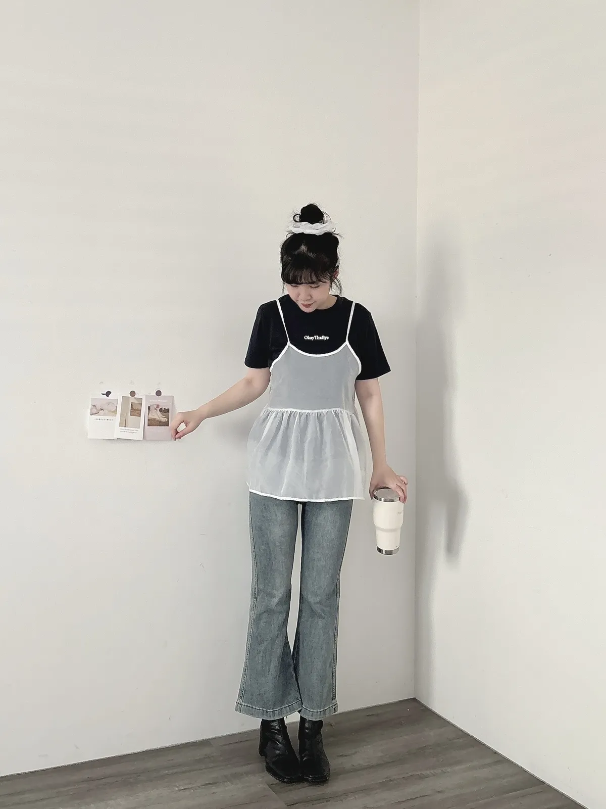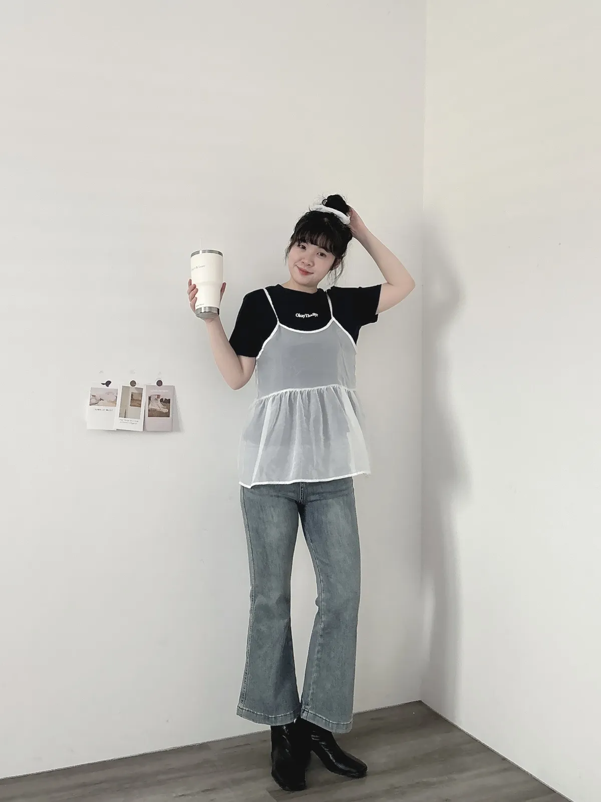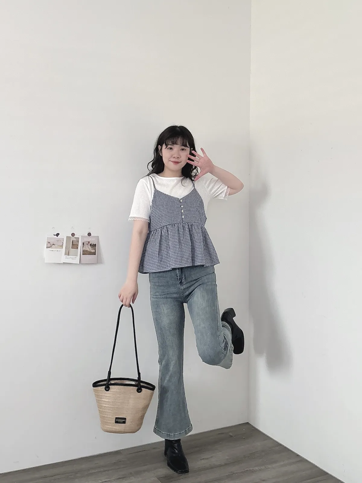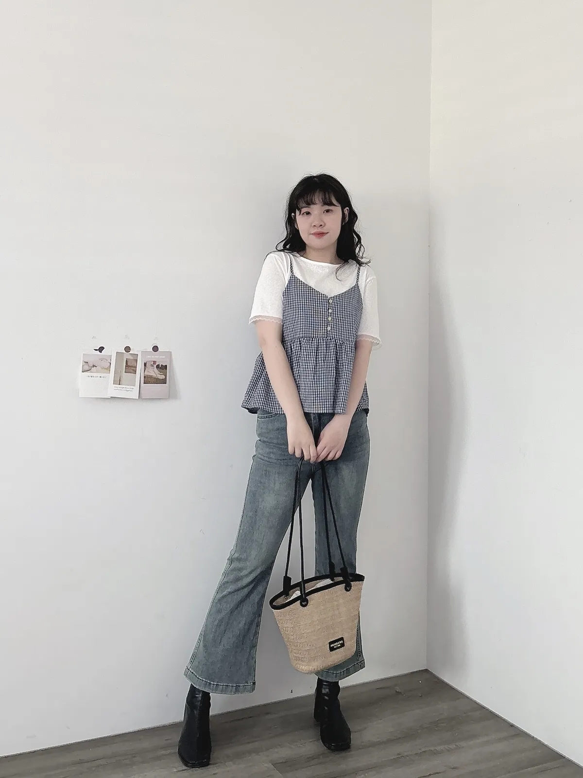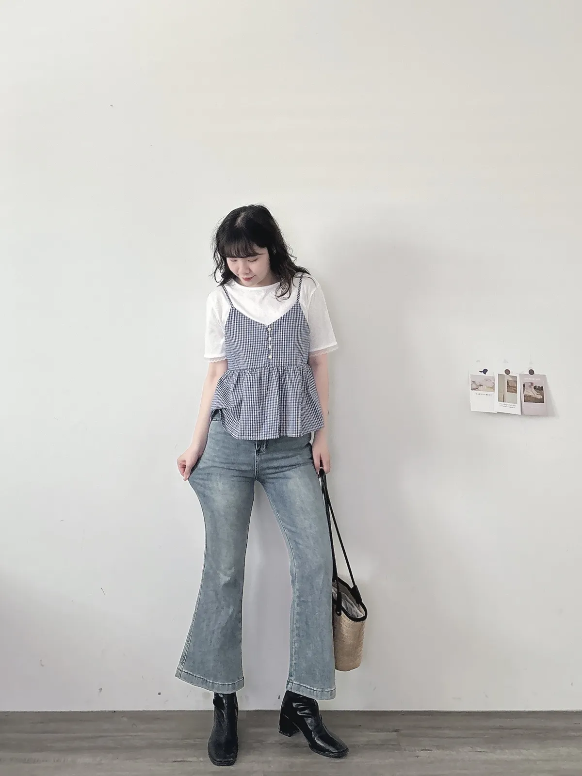 最後現貨!綁定小隻復古色喇叭牛仔褲