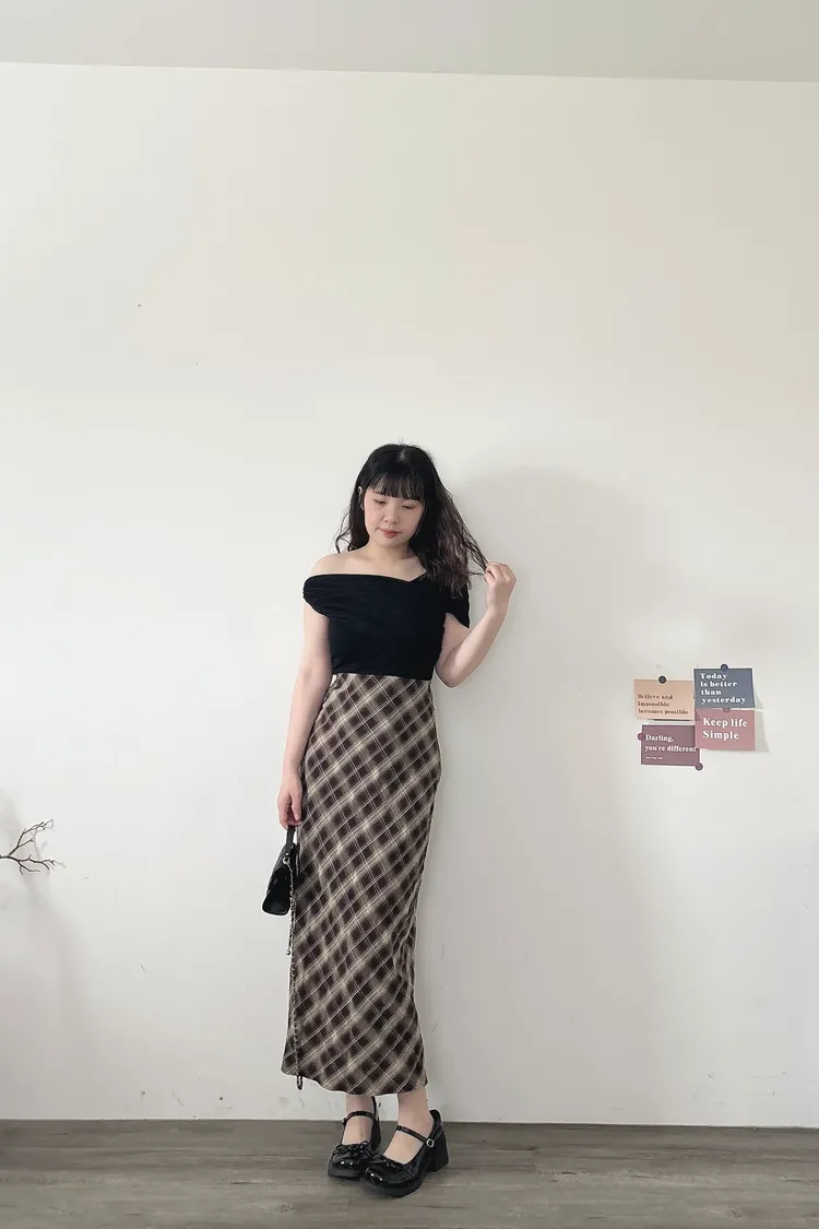 輕薄格子魚尾裙