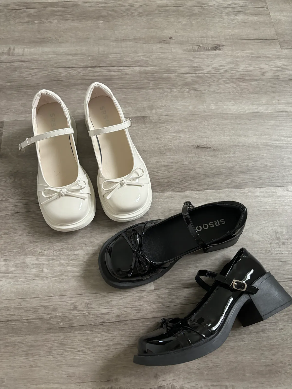 質感粗跟𝜗ৎ蝴蝶結小皮鞋