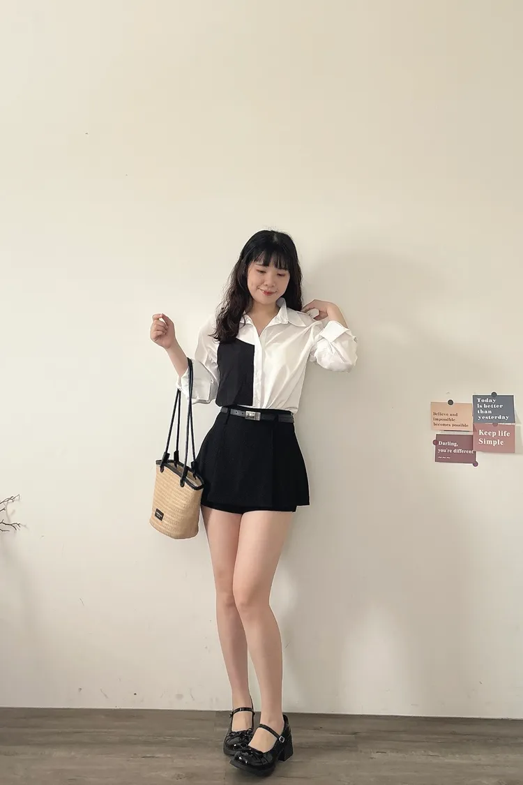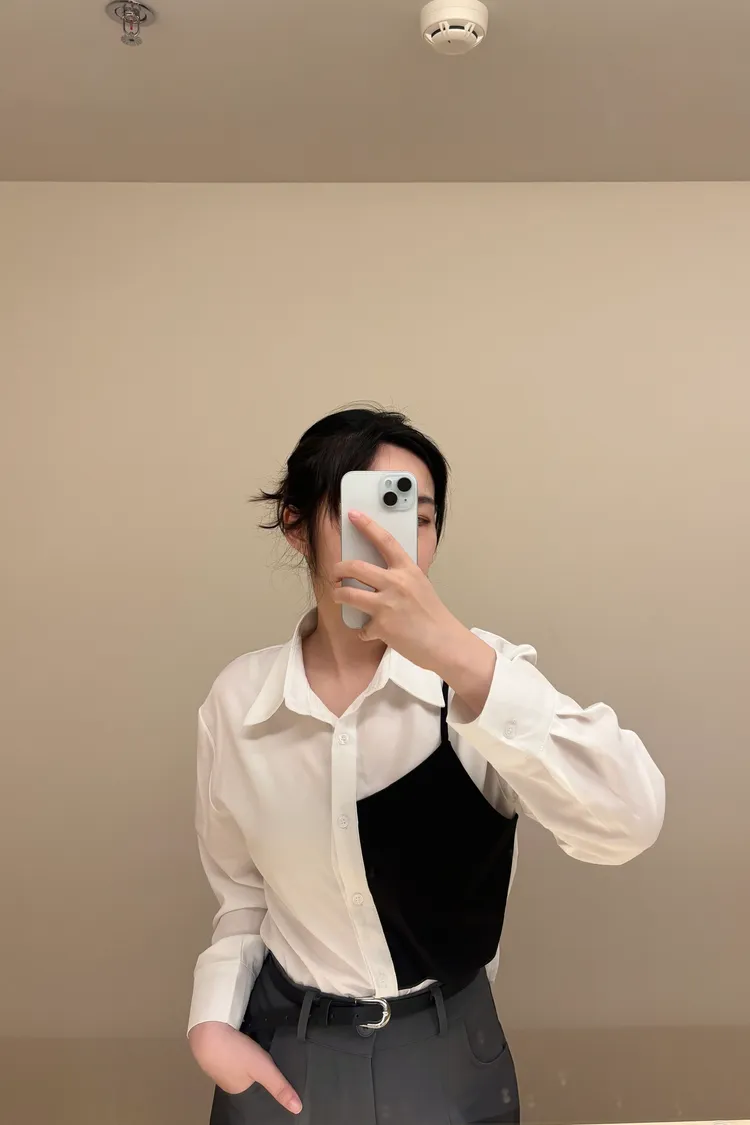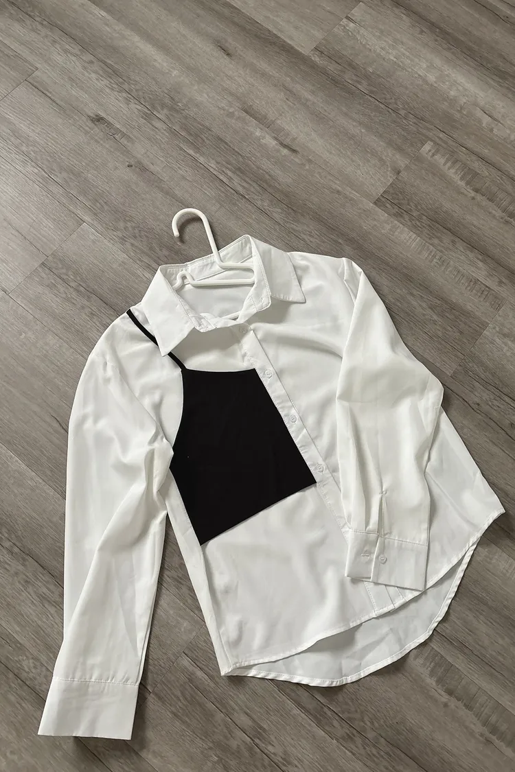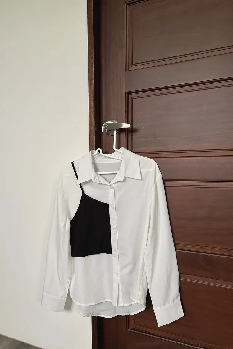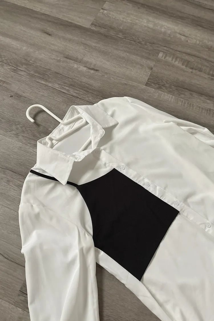 撞色不對稱設計襯衫