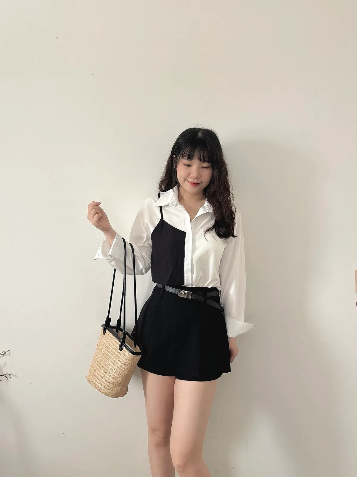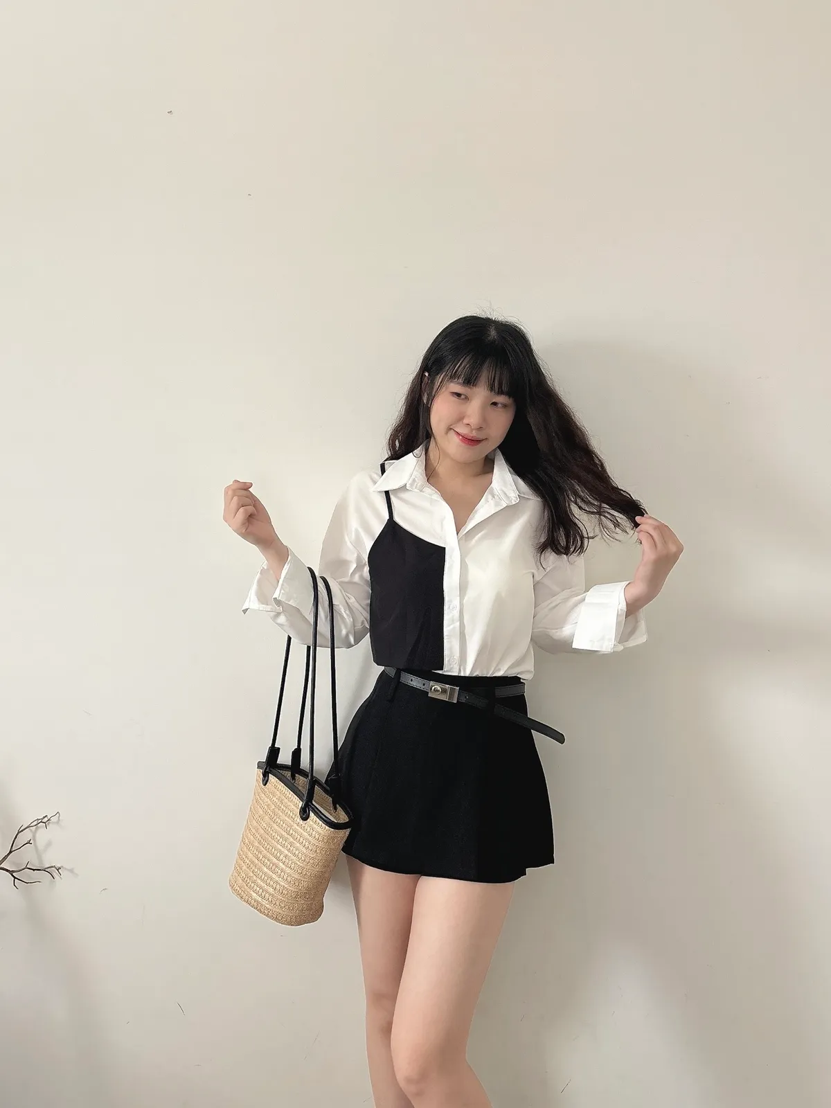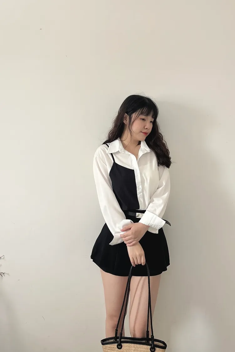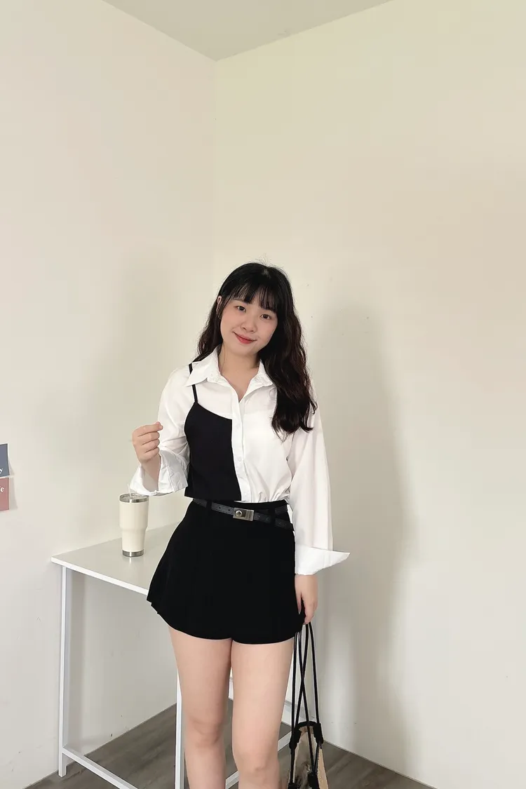 撞色不對稱設計襯衫