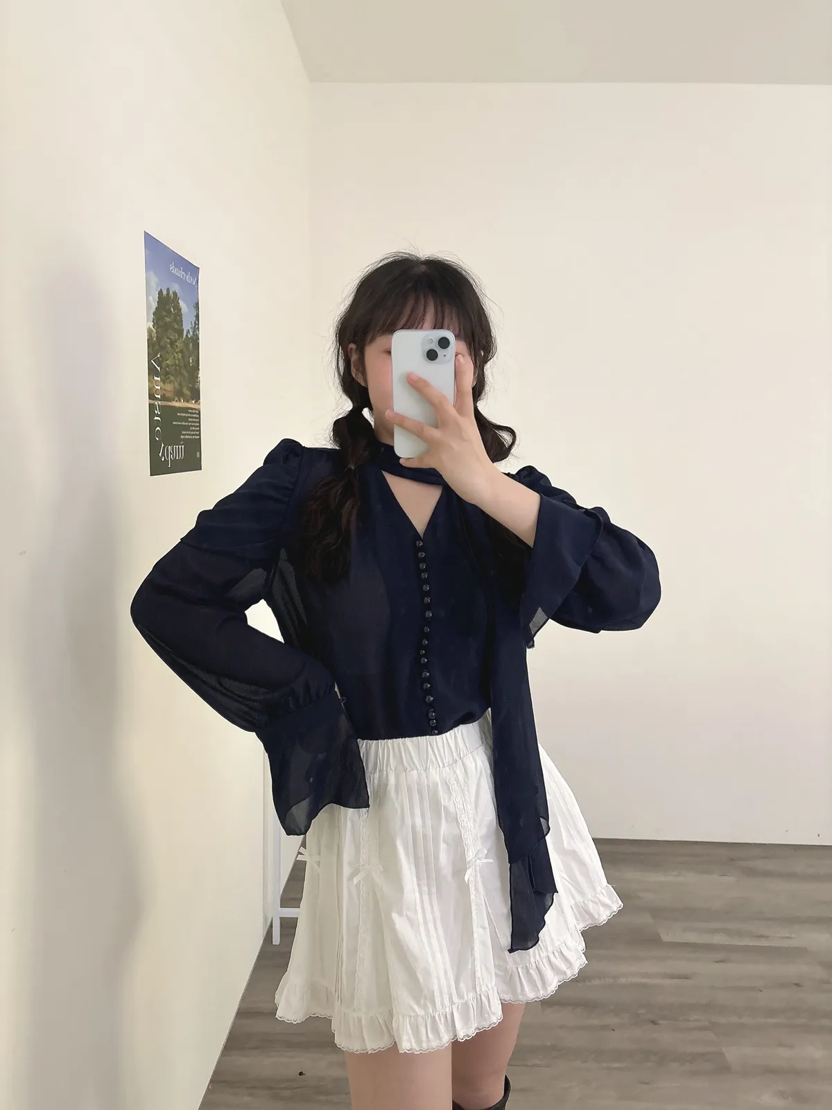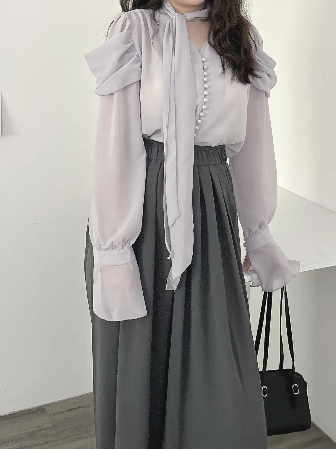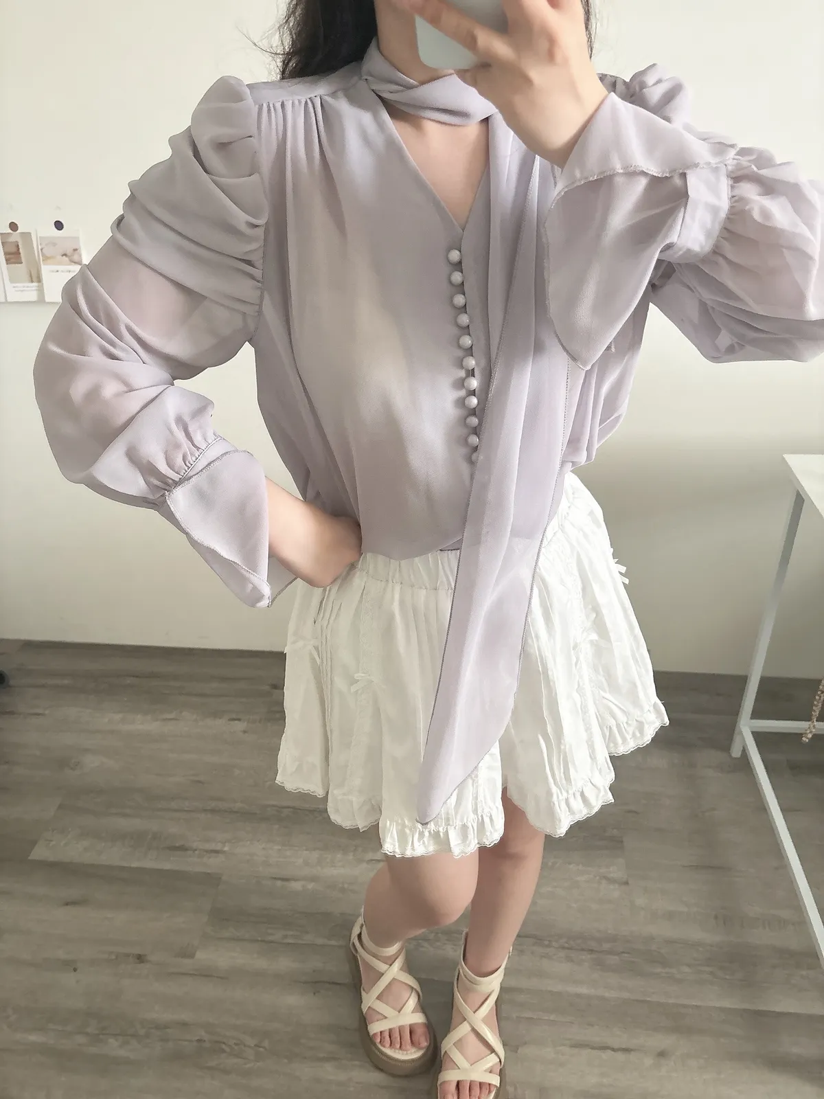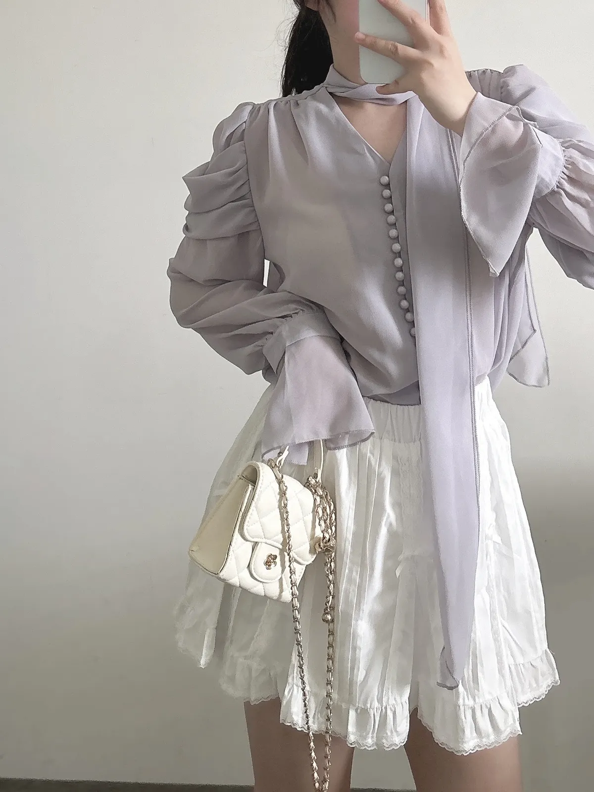 南法假日·飄帶設計喇叭袖襯衫