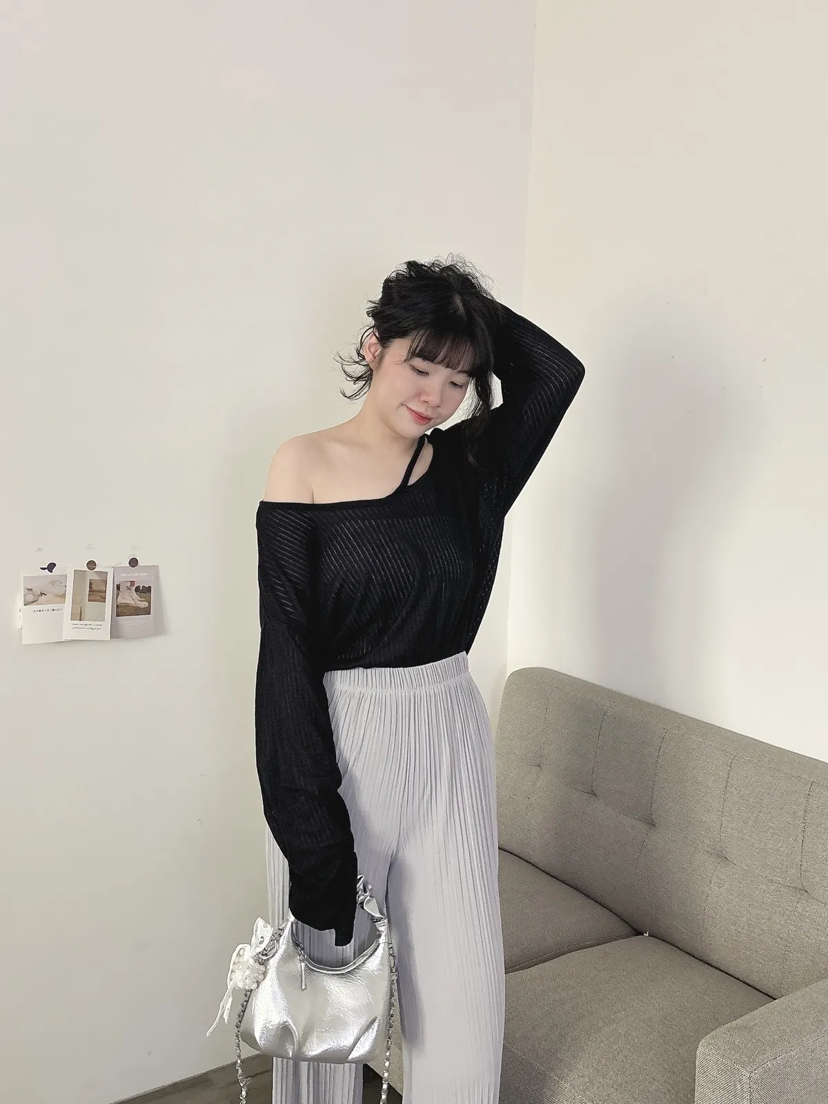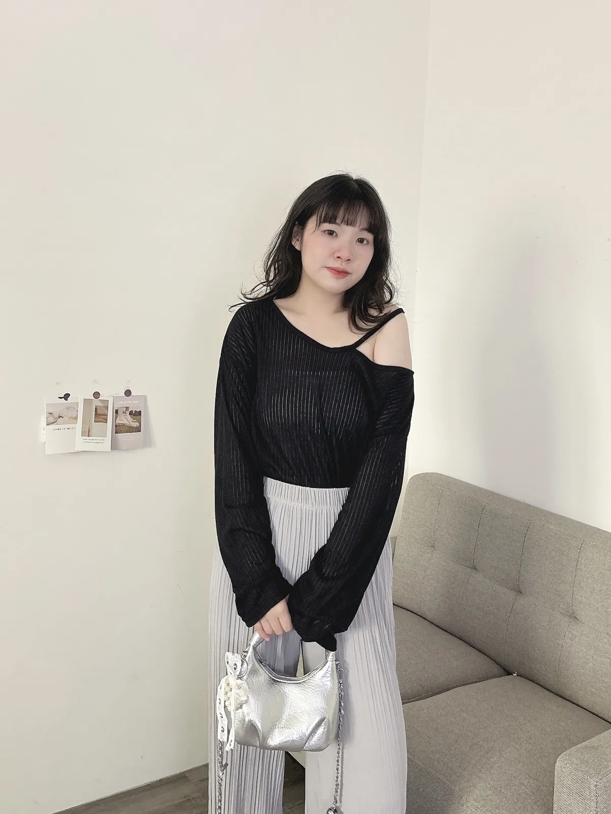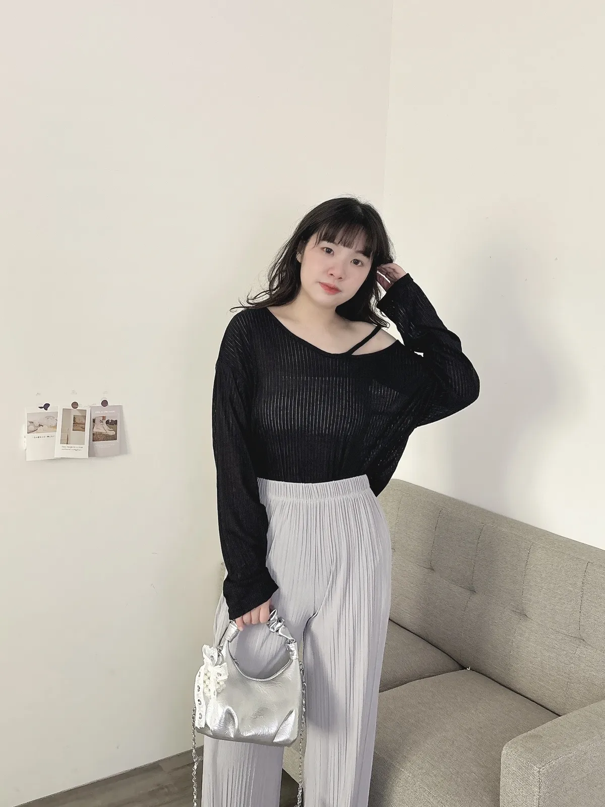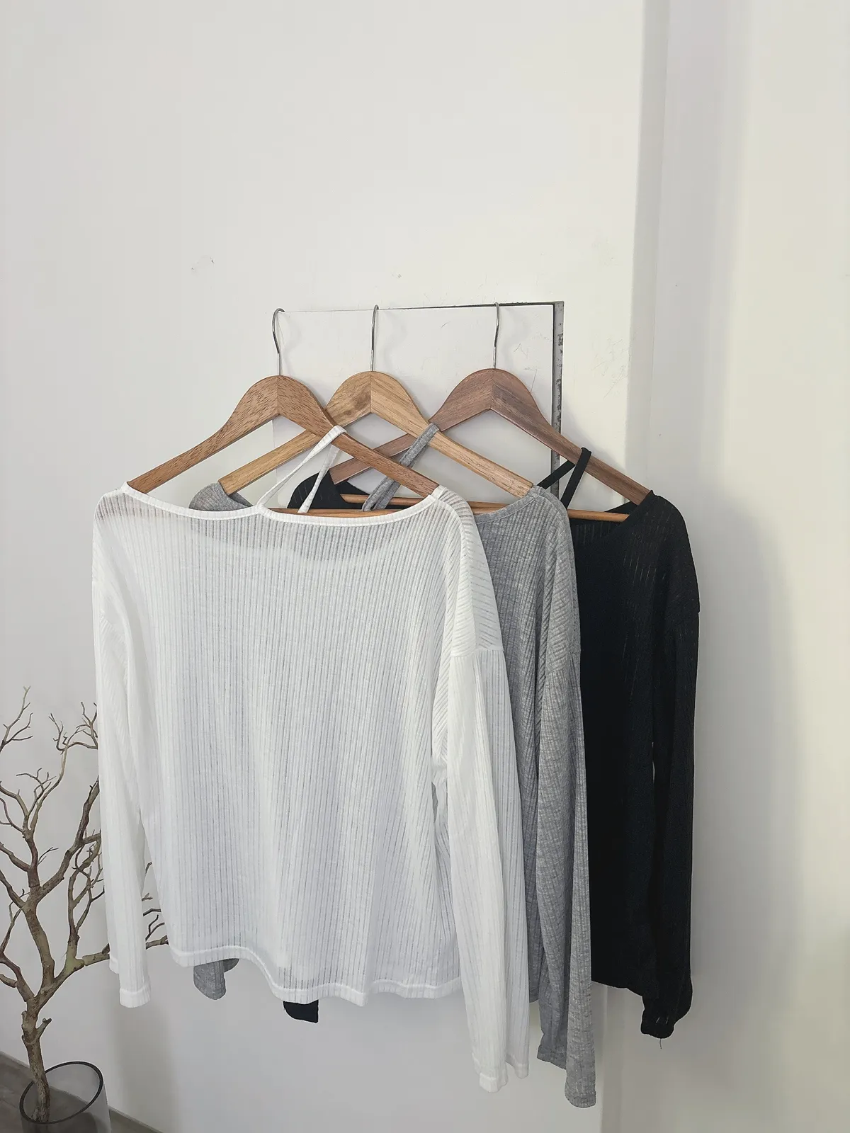 挖肩坑條薄長袖