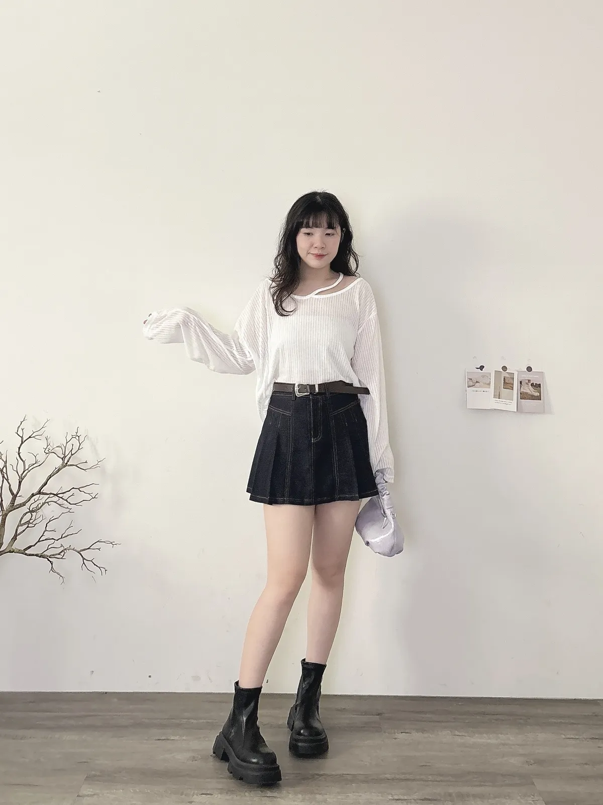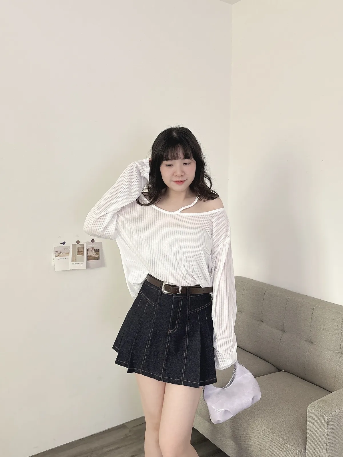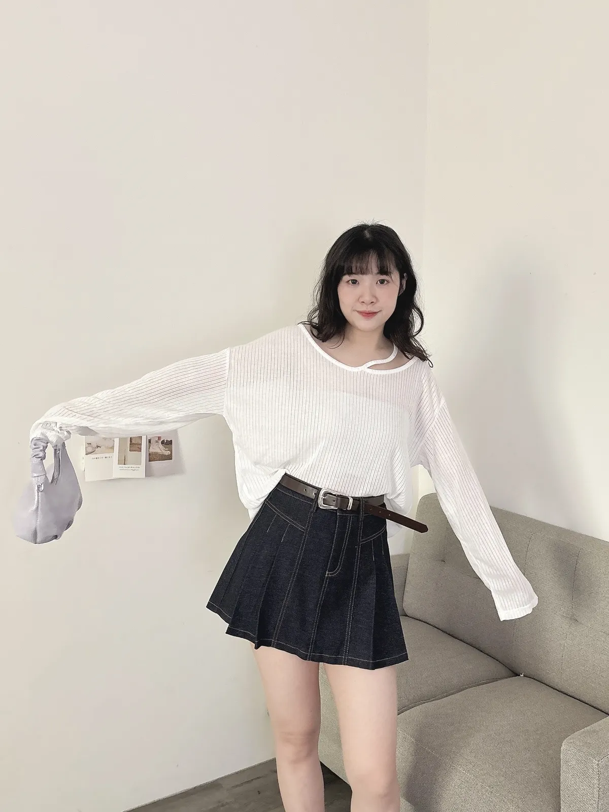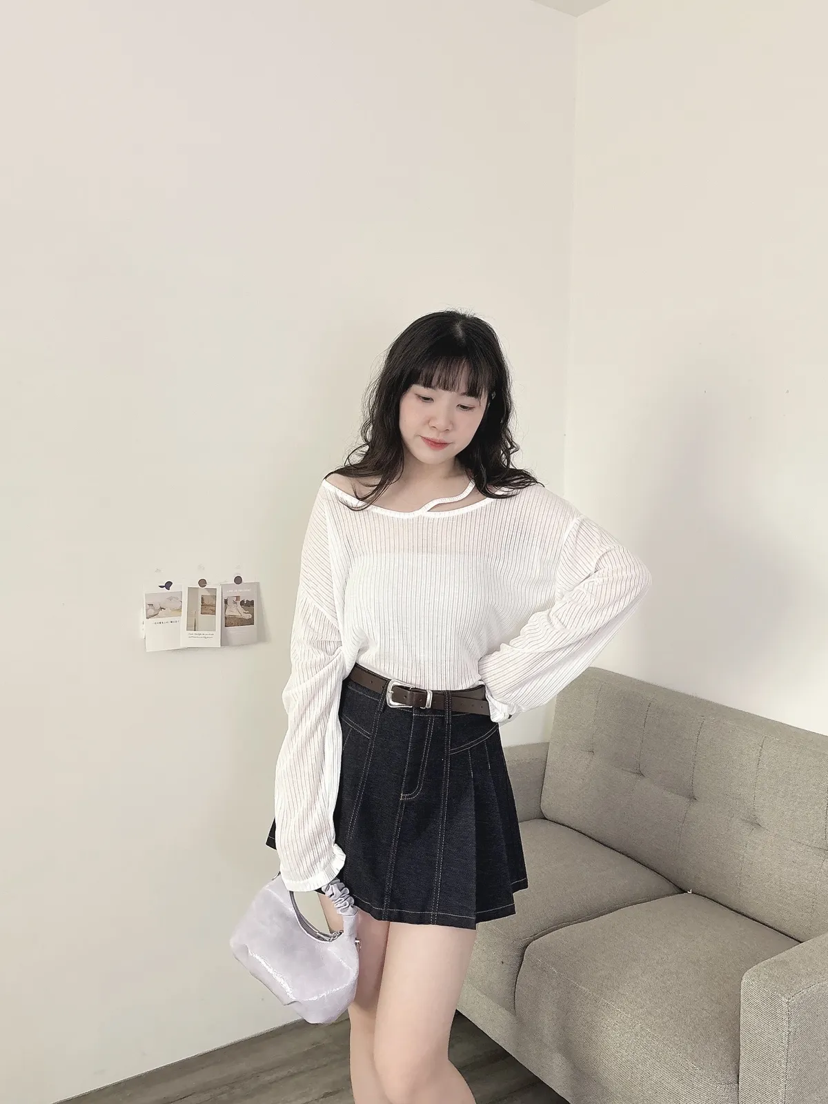 挖肩坑條薄長袖