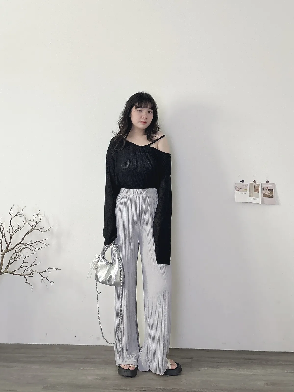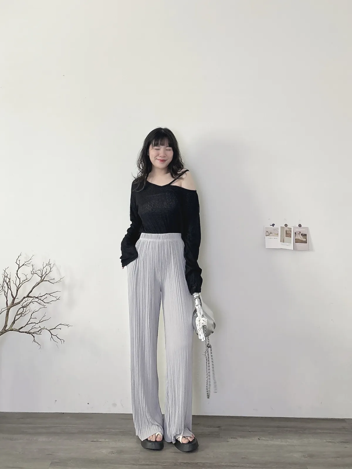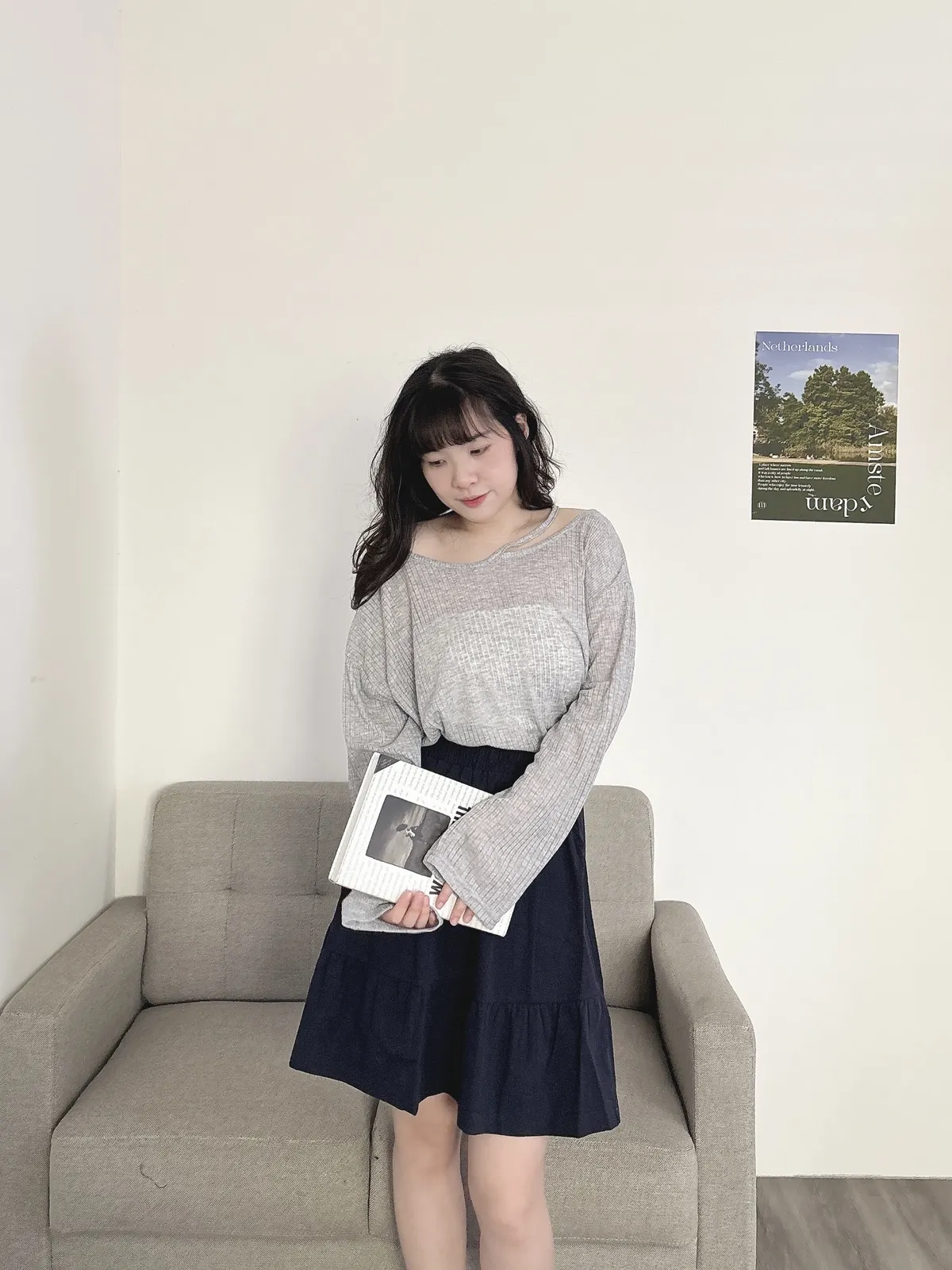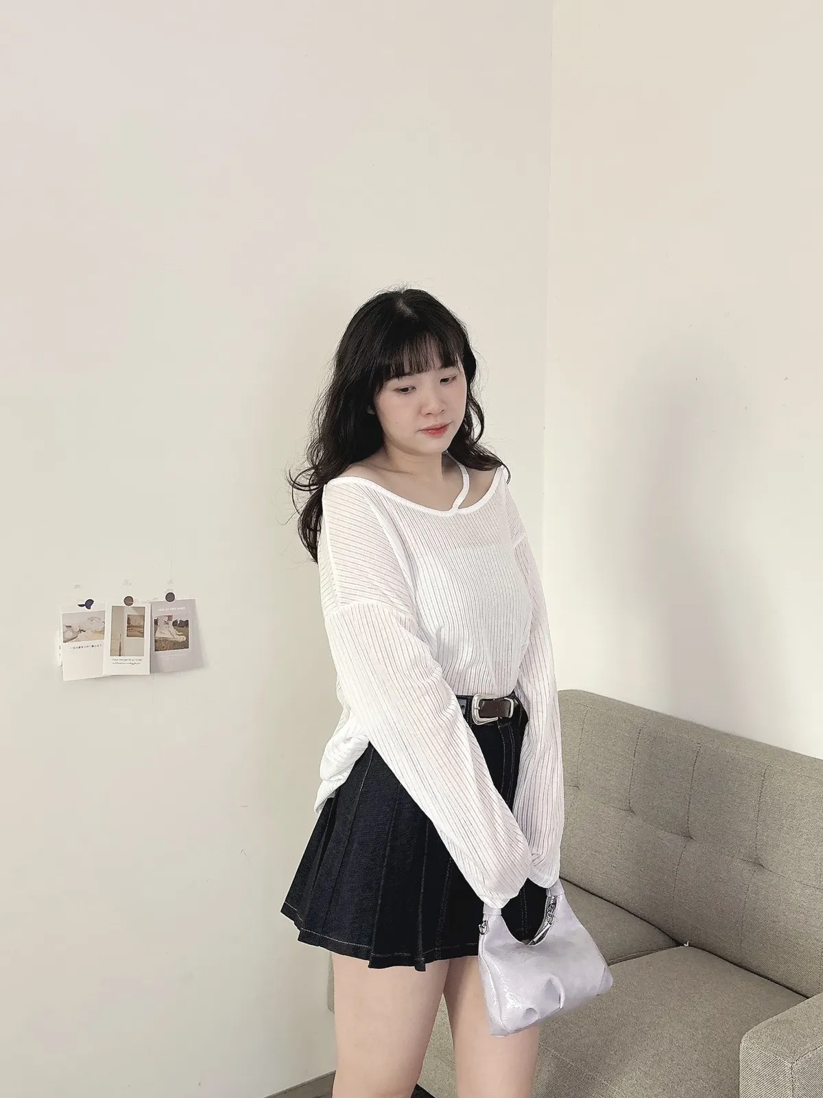 挖肩坑條薄長袖