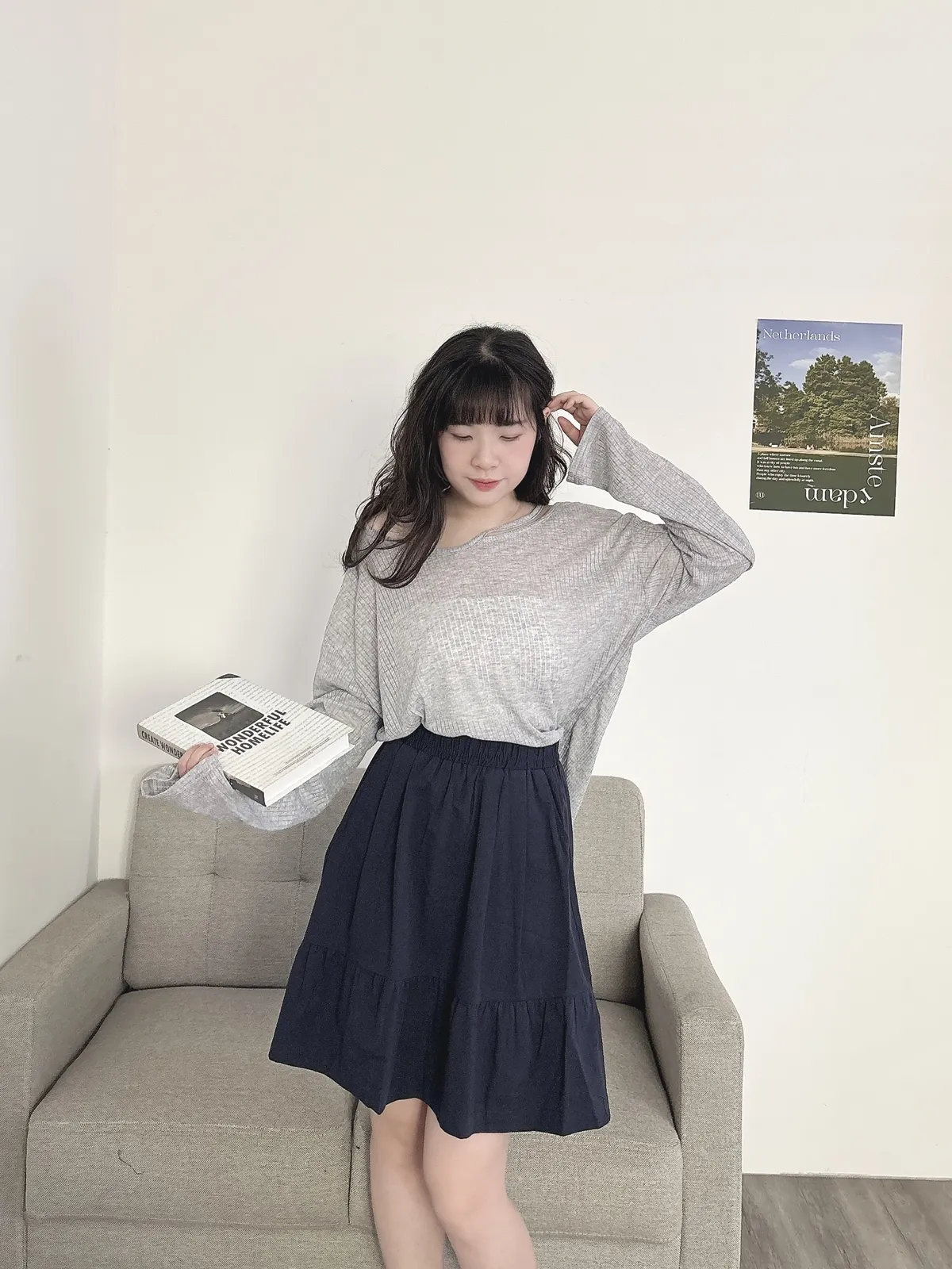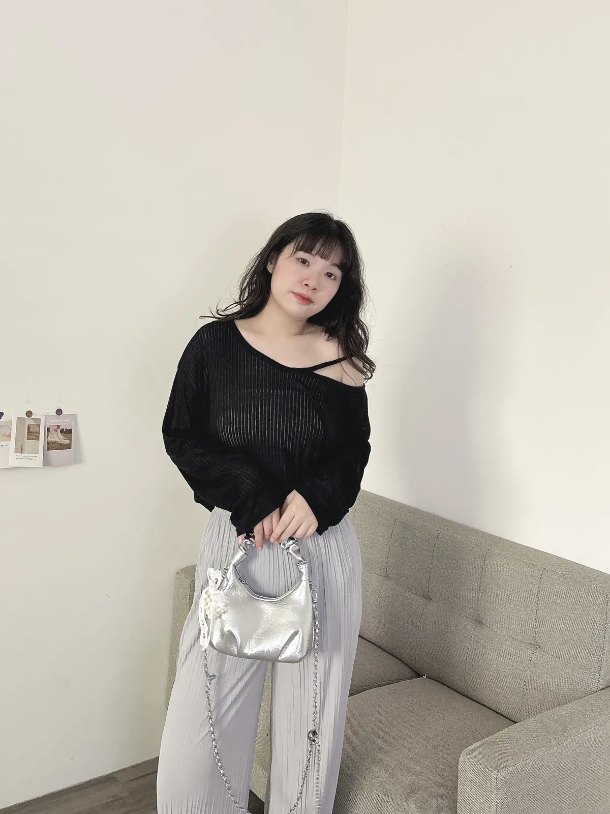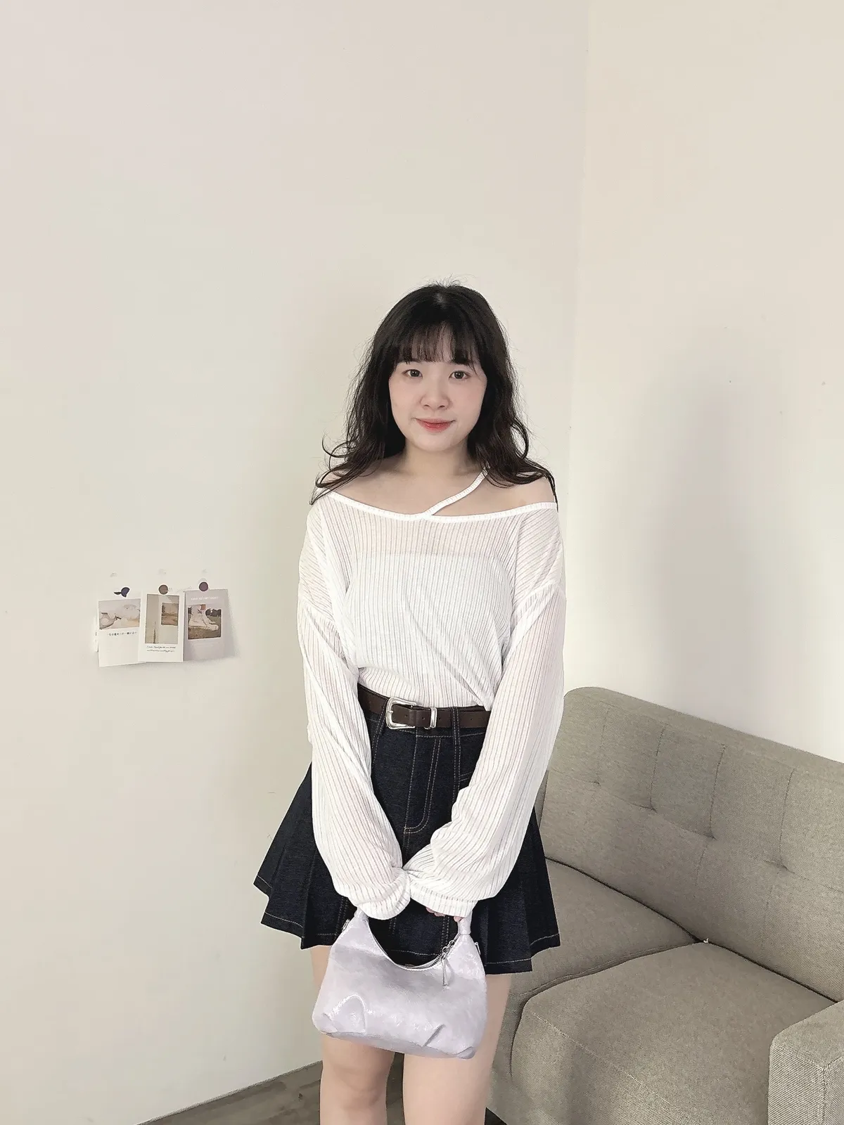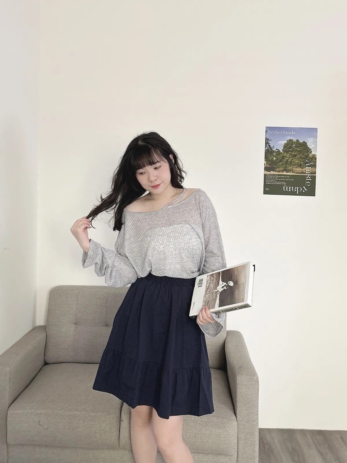 挖肩坑條薄長袖