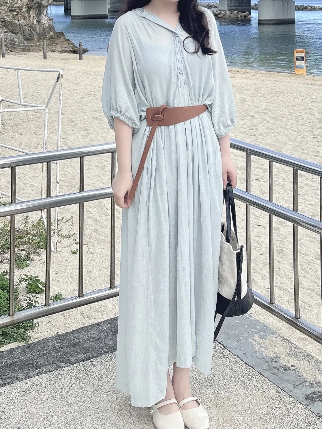 闆娘自帶!淡藍慵懶洋裝