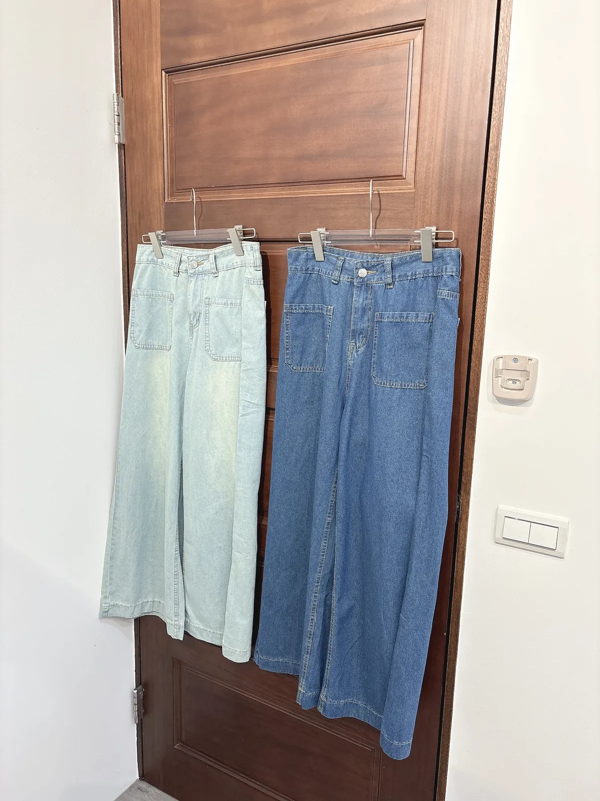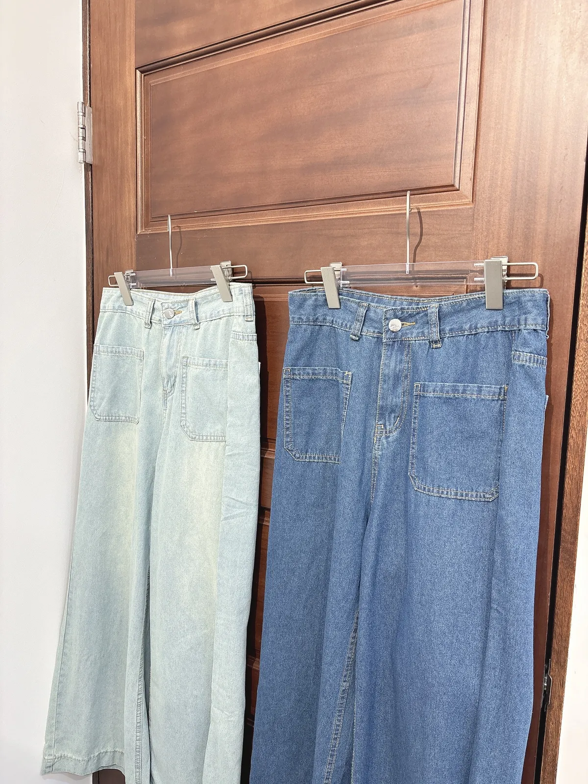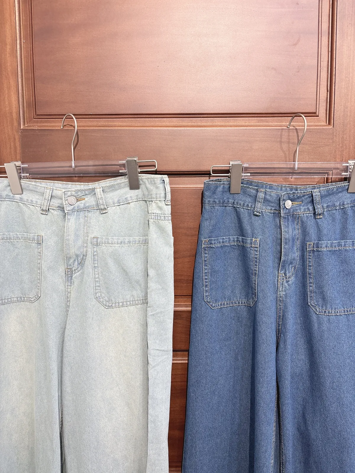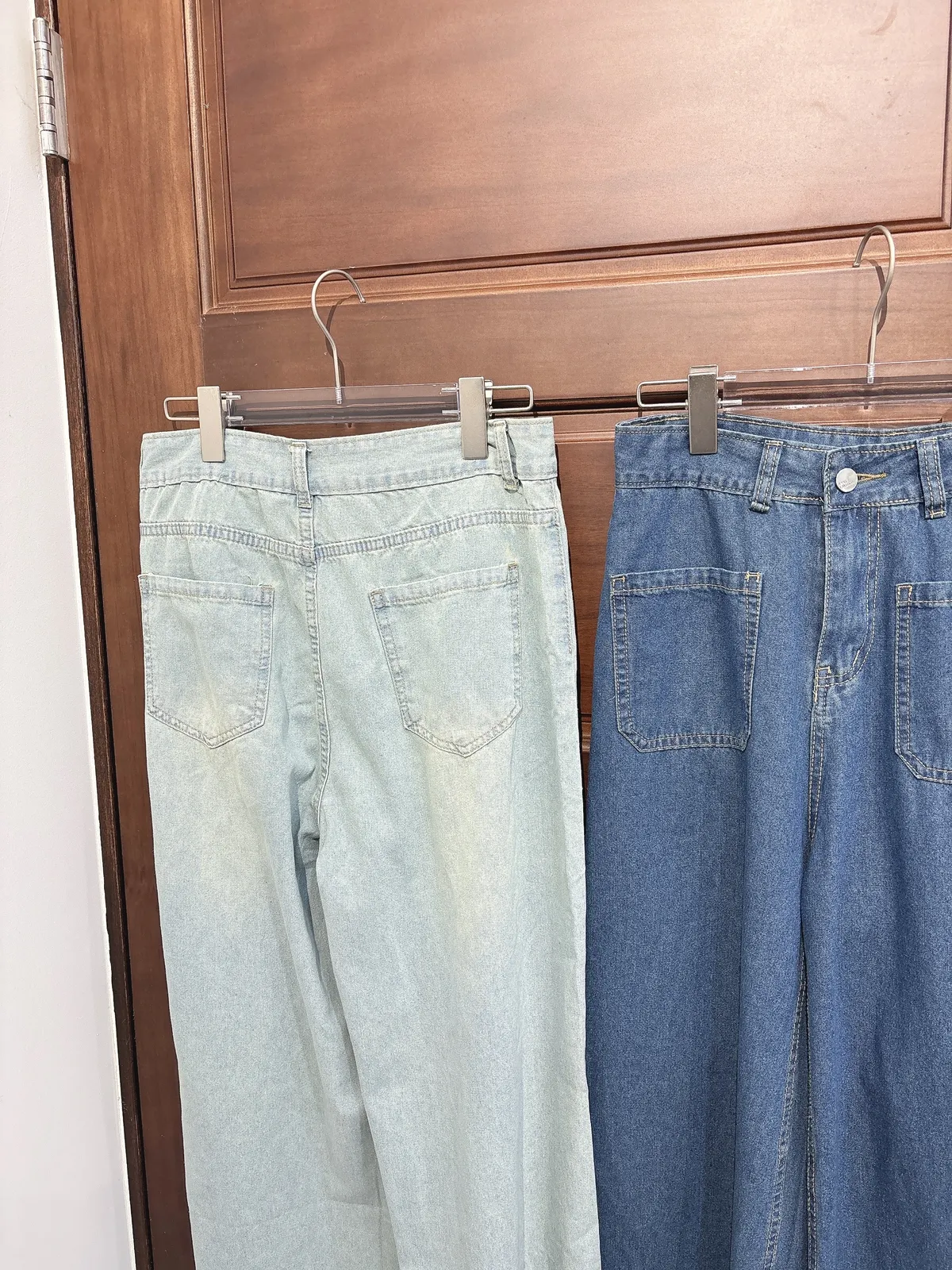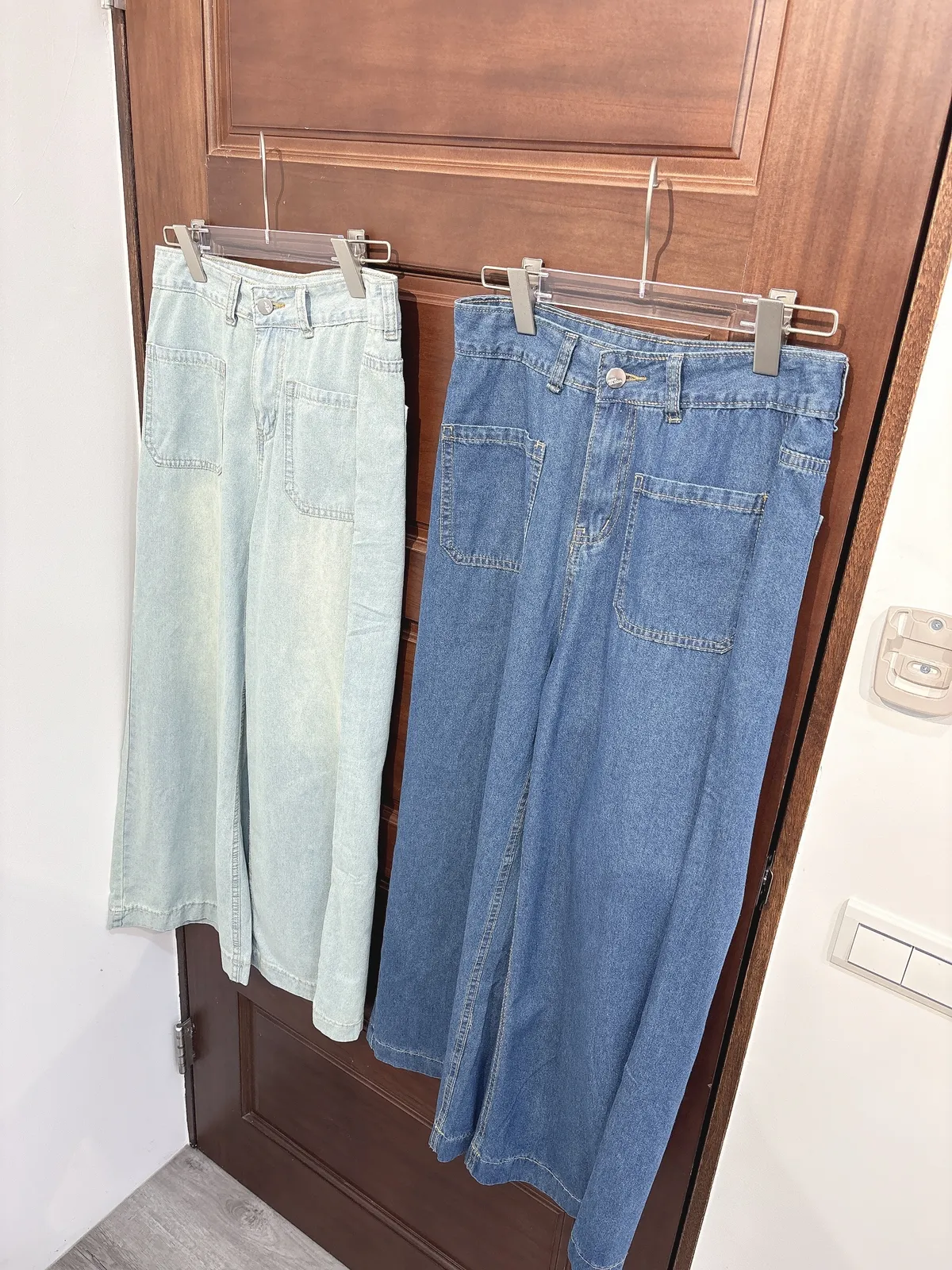 最後現貨!夏季薄款前口袋牛仔寬褲