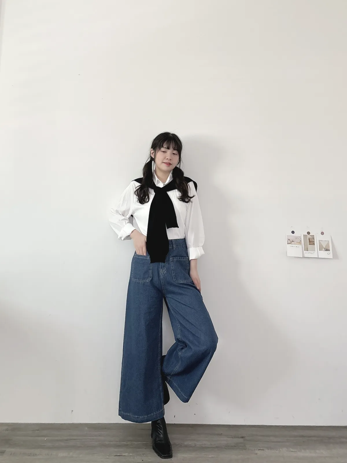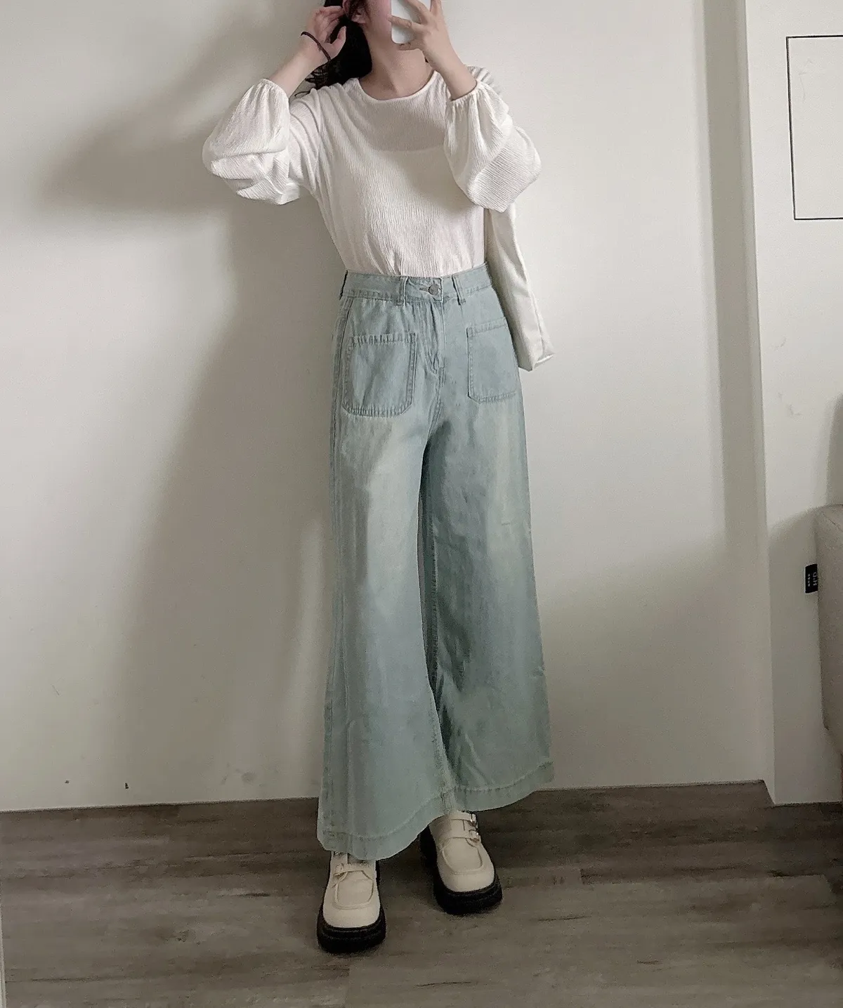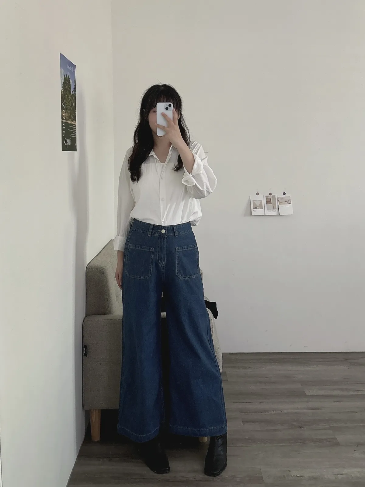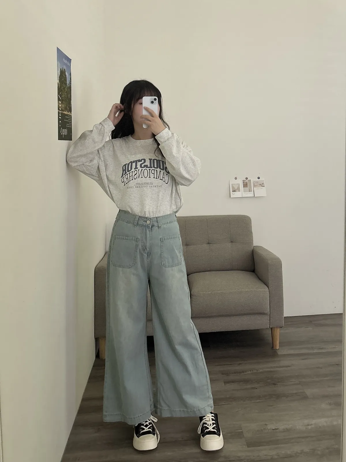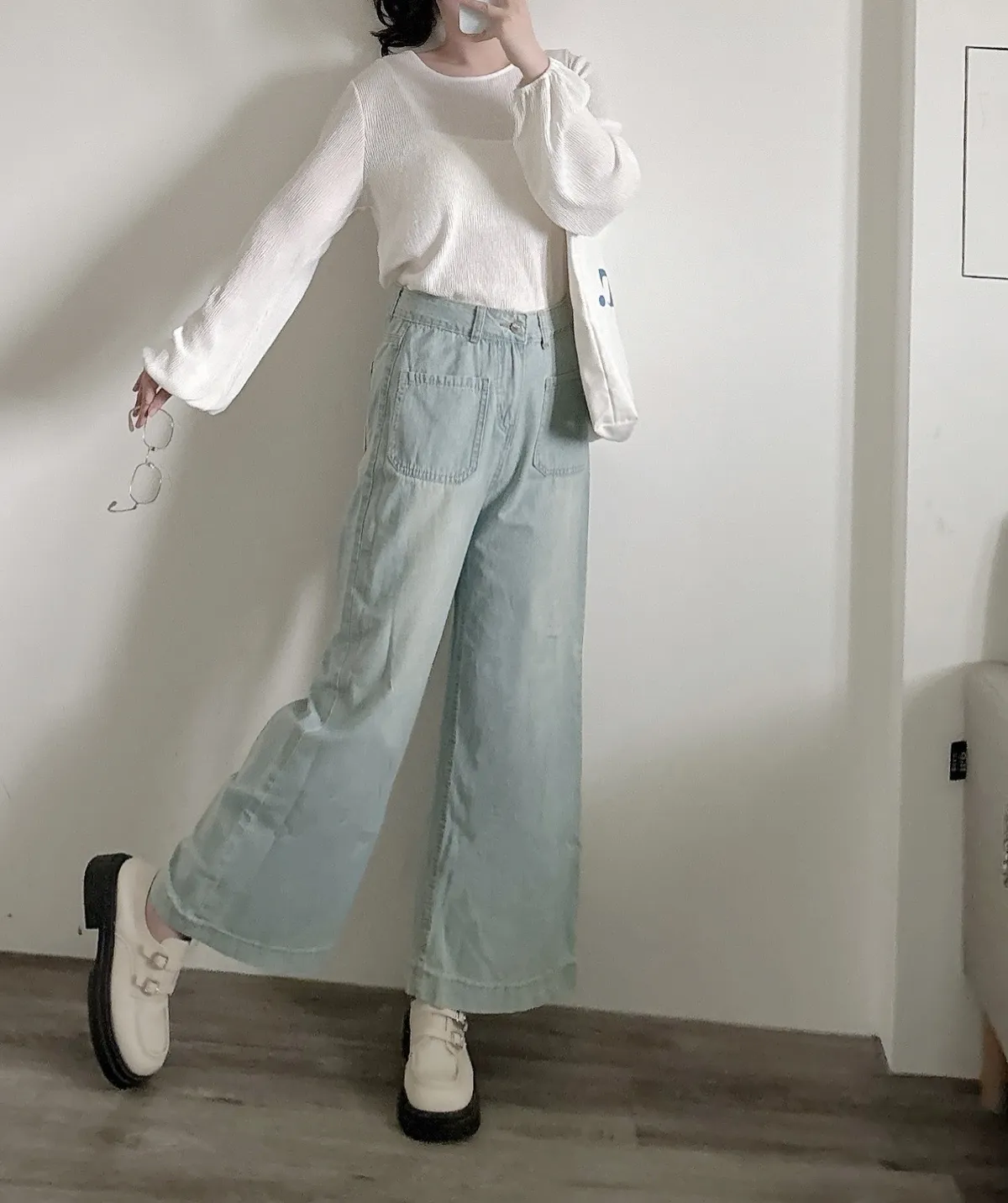 最後現貨!夏季薄款前口袋牛仔寬褲