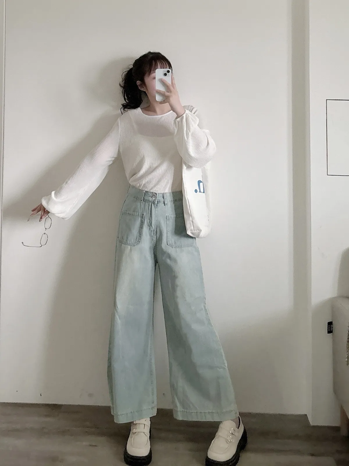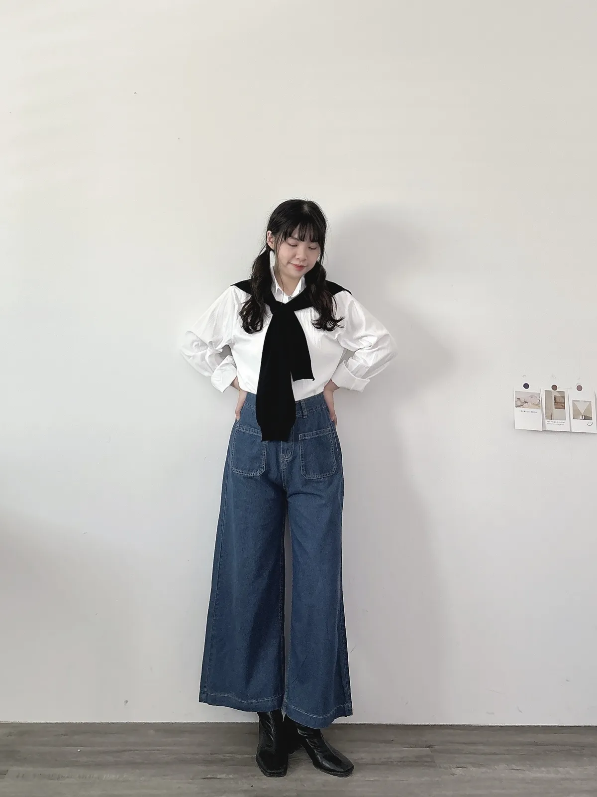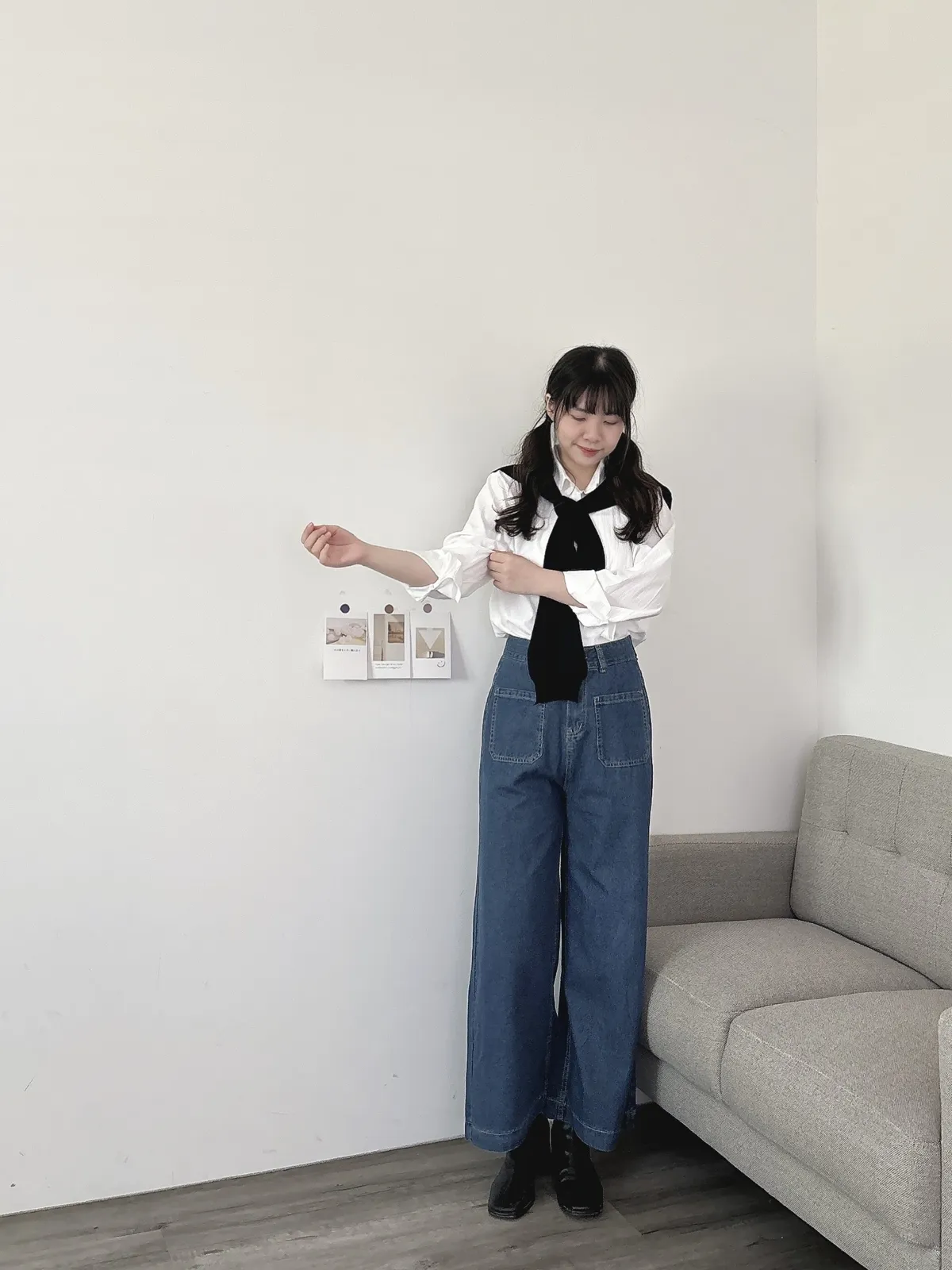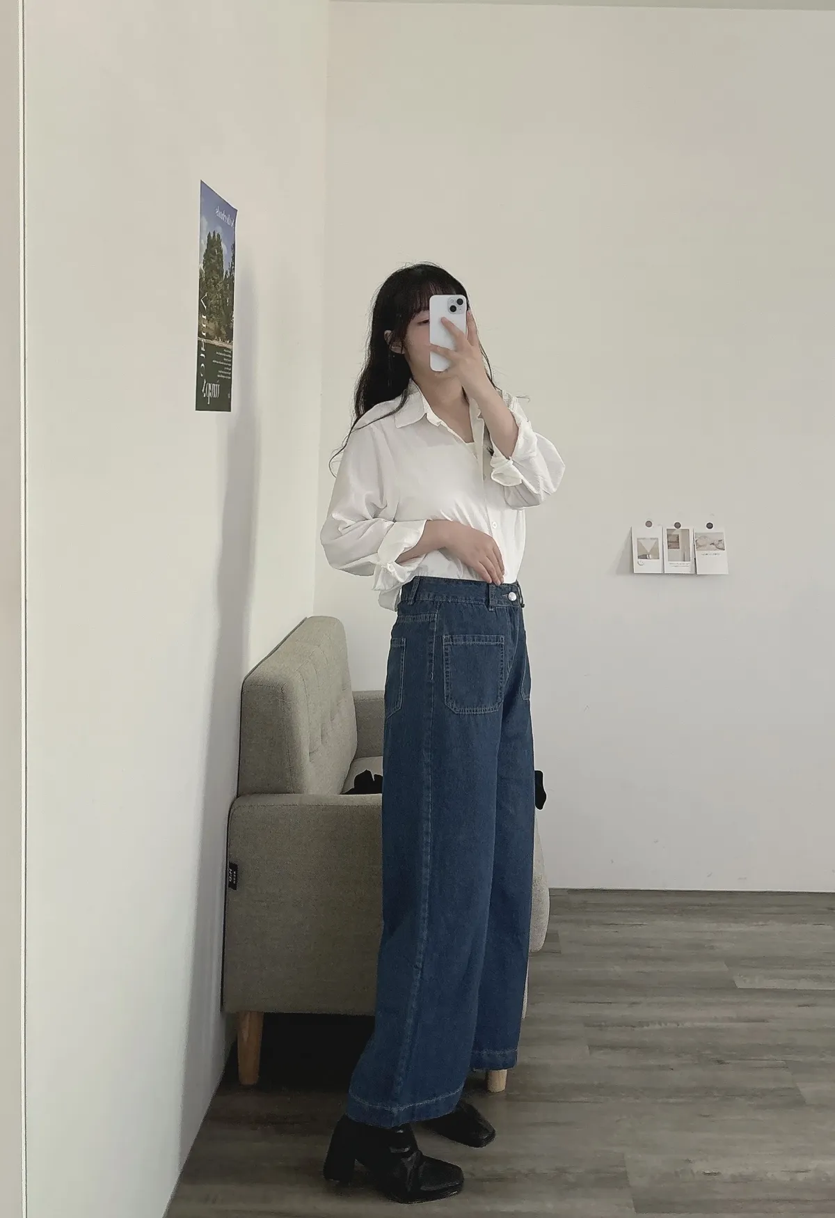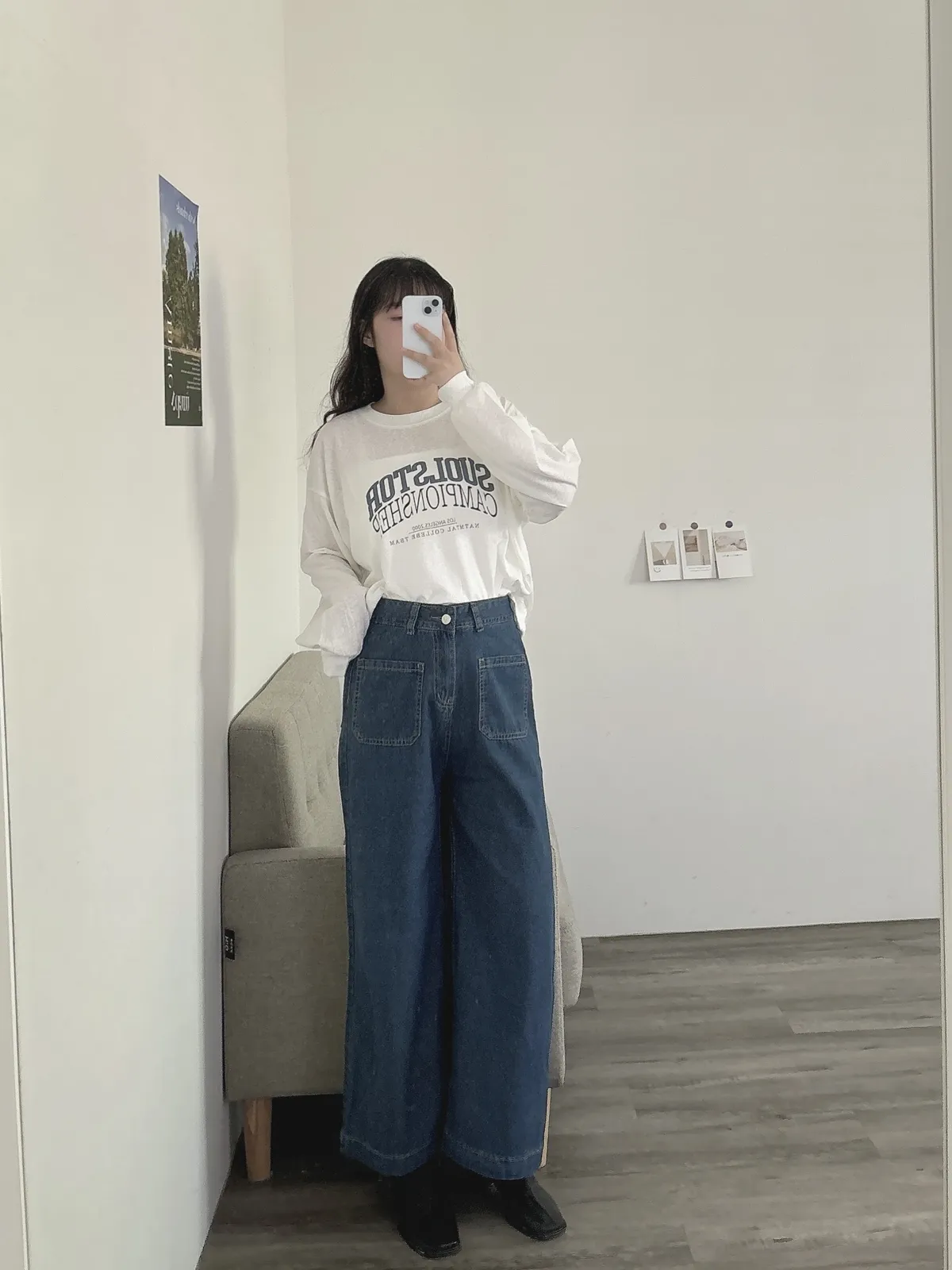 最後現貨!夏季薄款前口袋牛仔寬褲