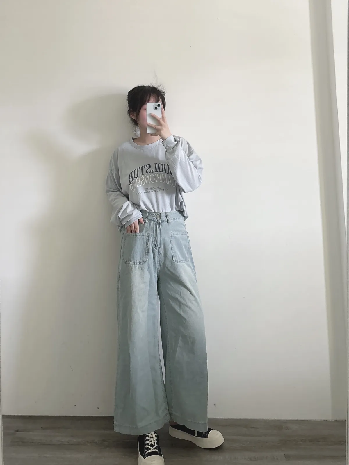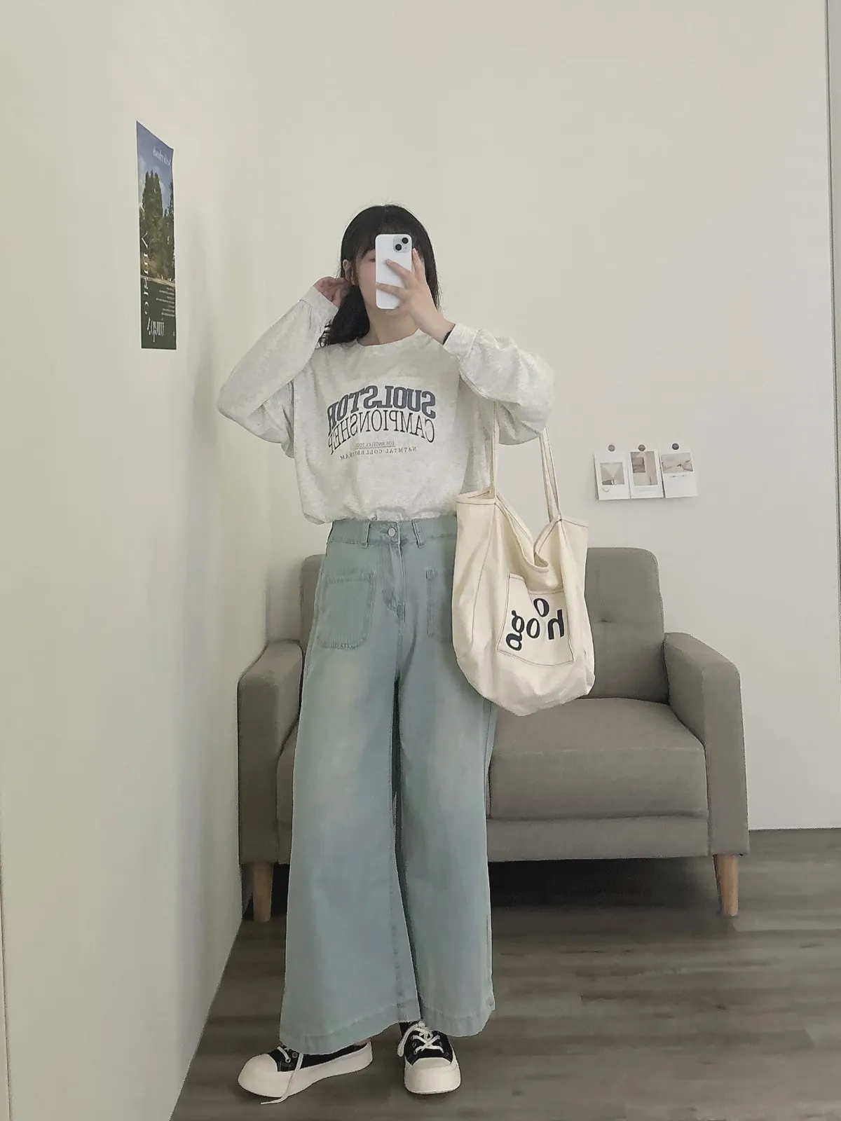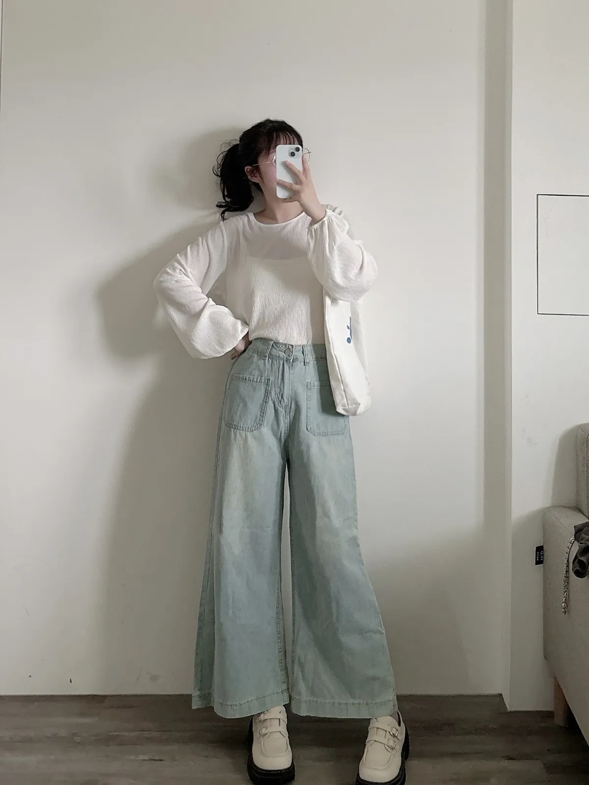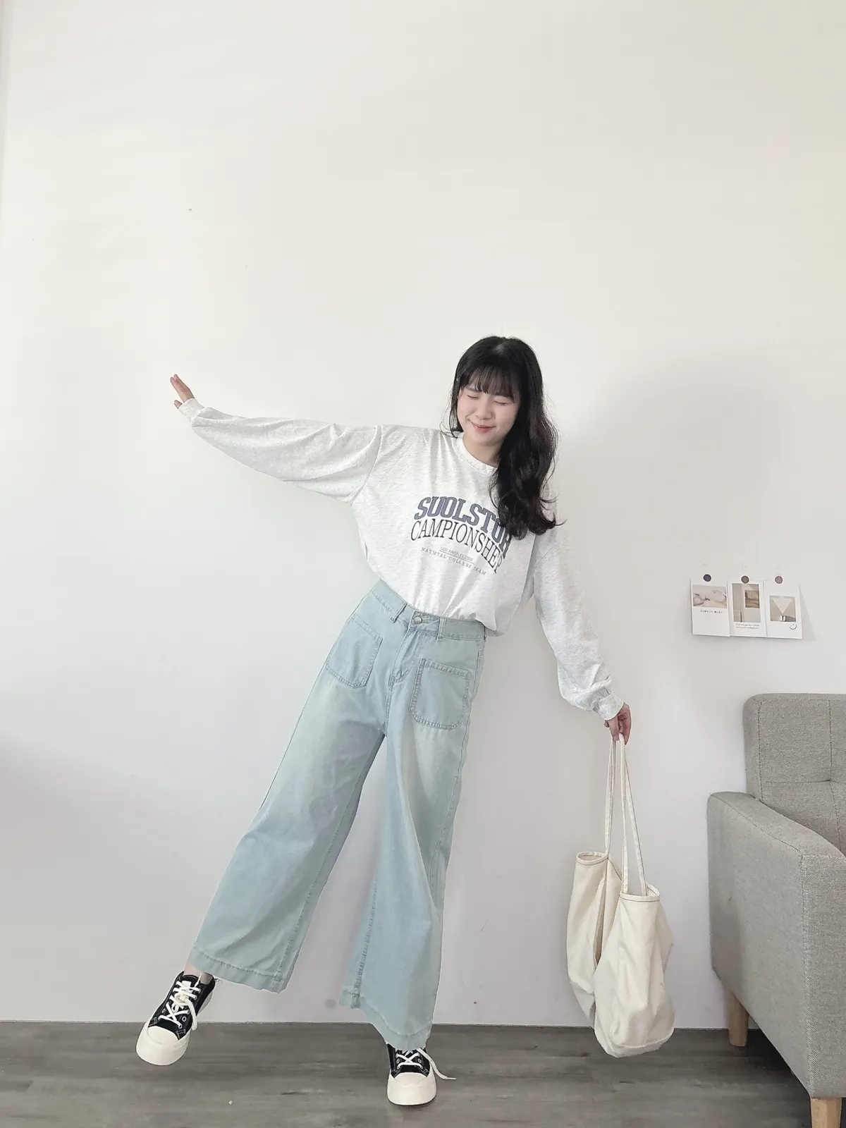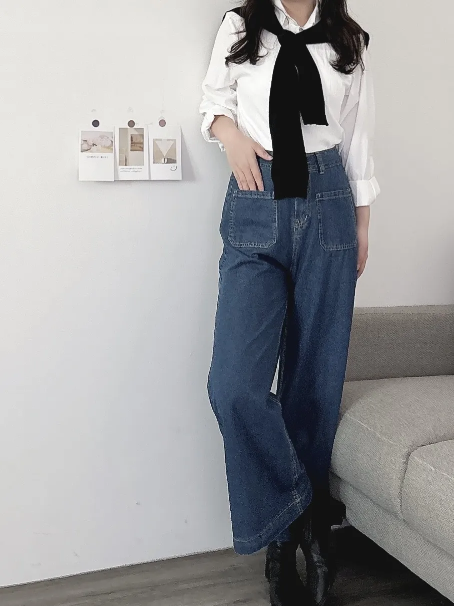 最後現貨!夏季薄款前口袋牛仔寬褲