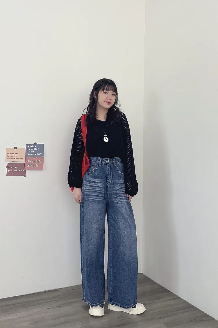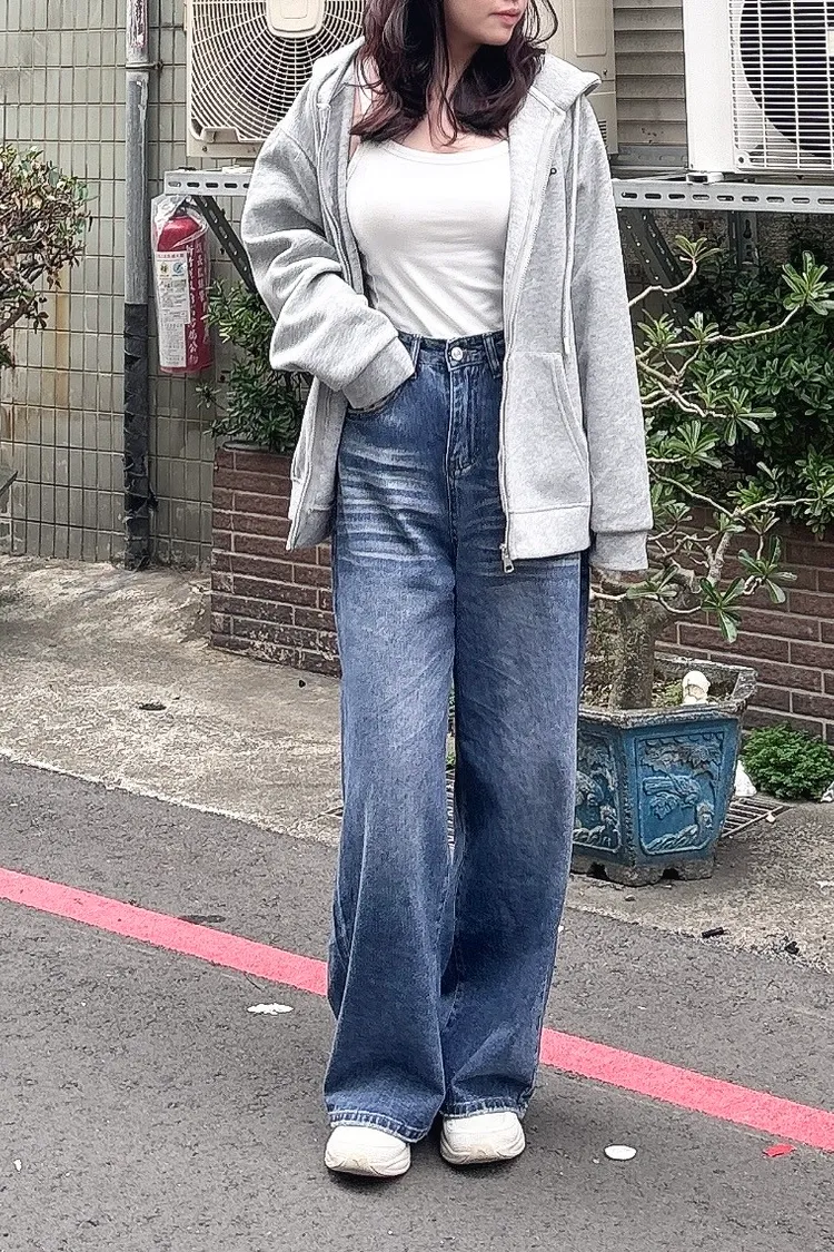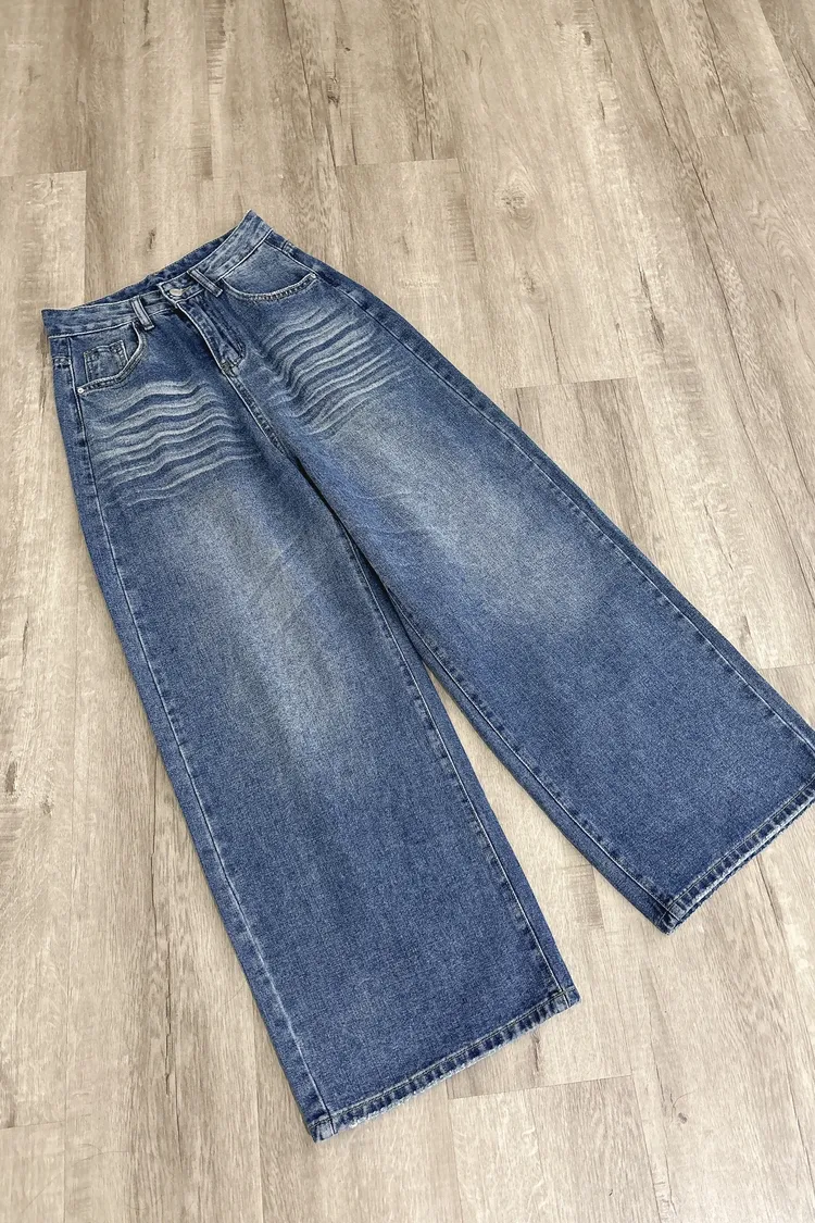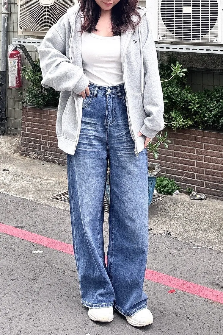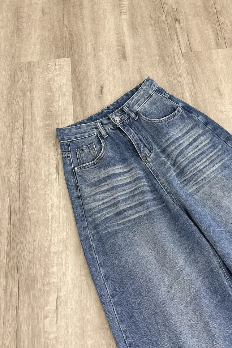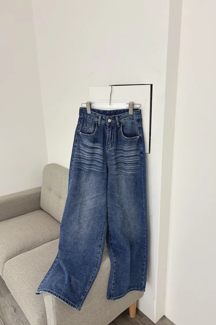 貓鬚刷色牛仔寬褲