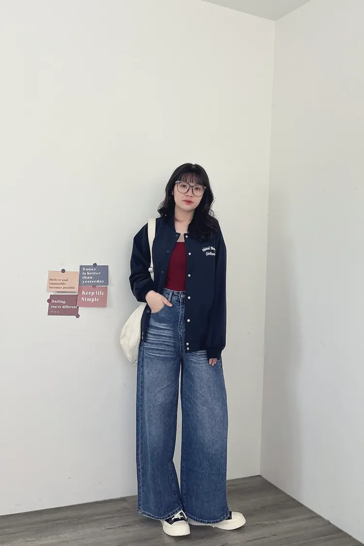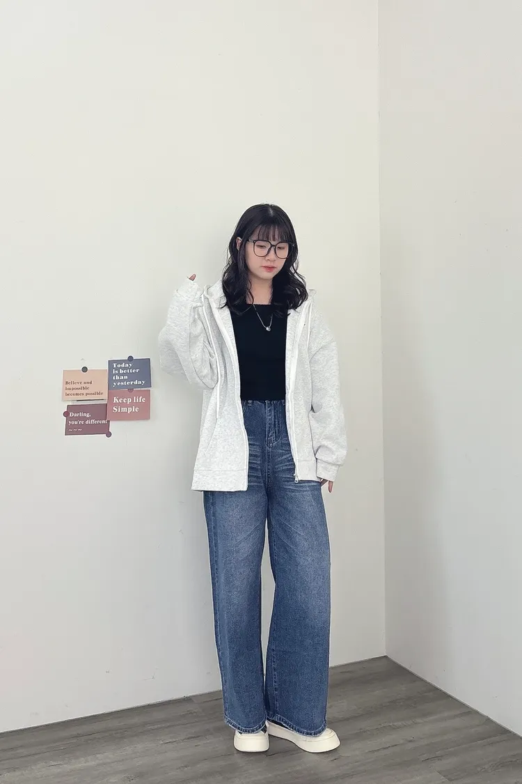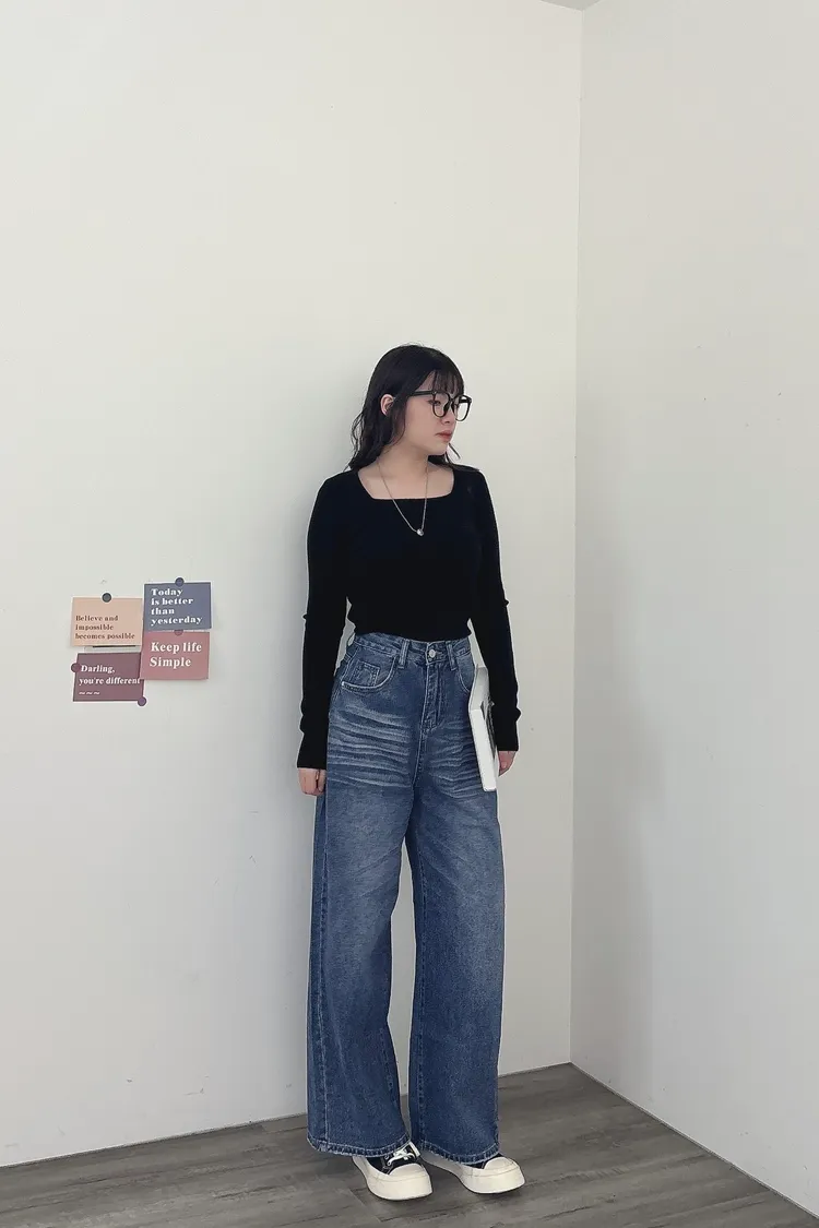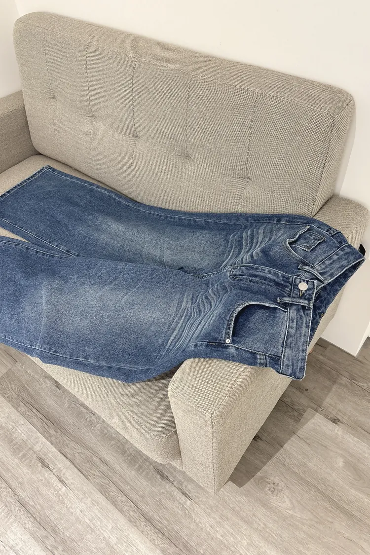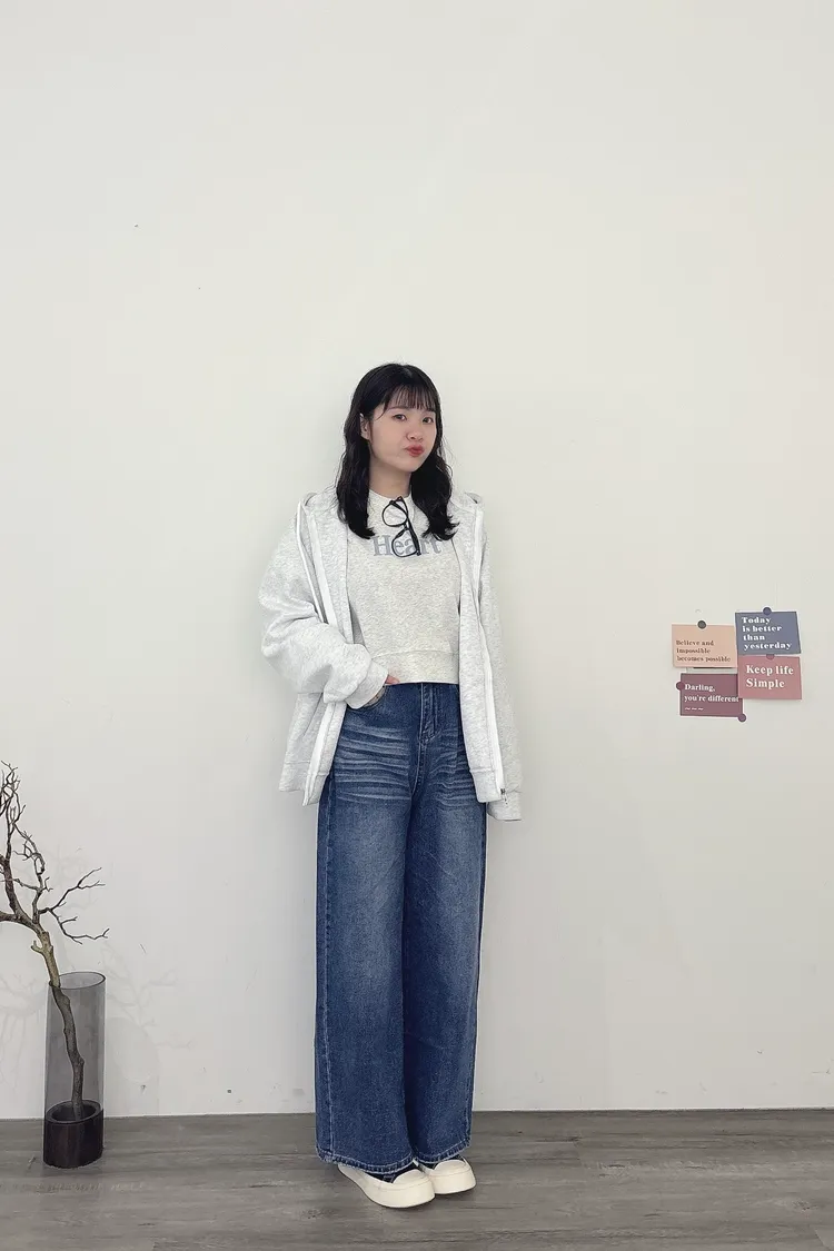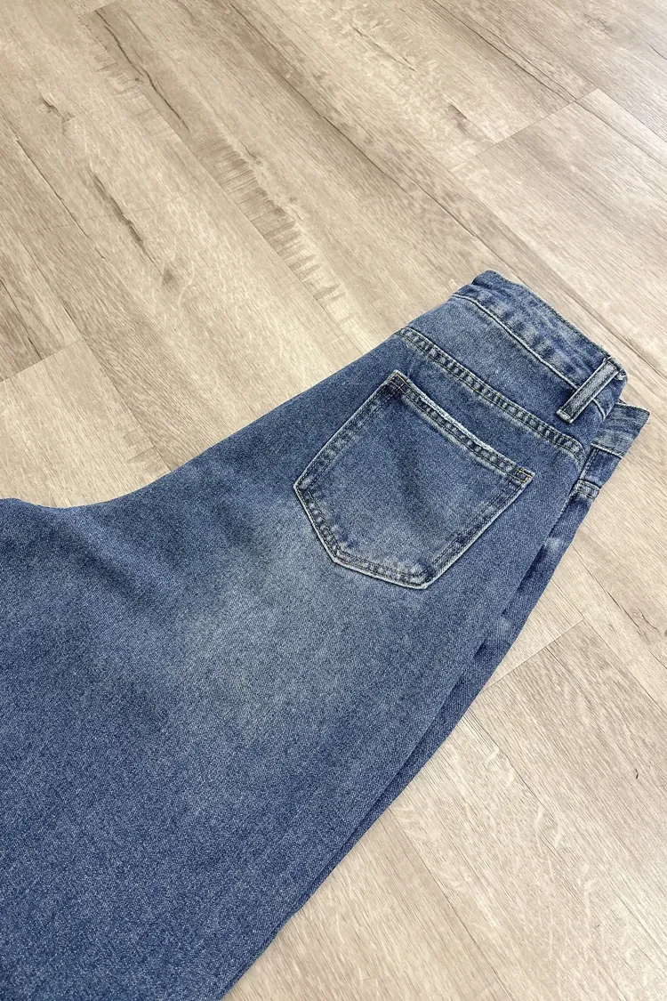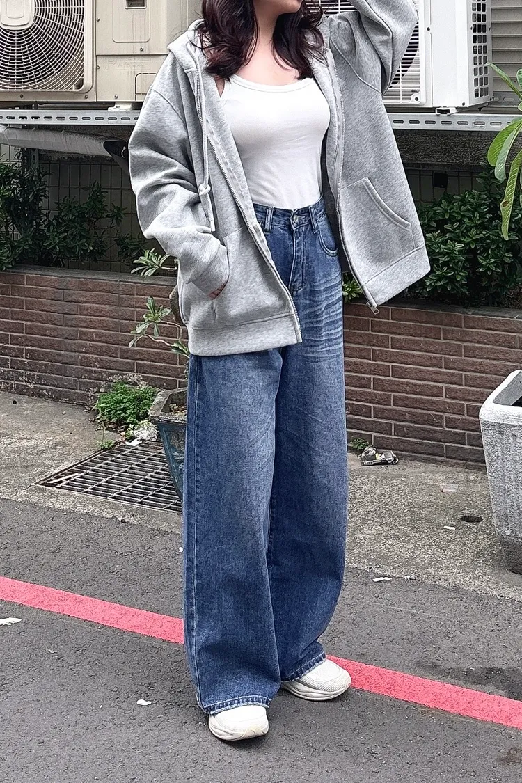 貓鬚刷色牛仔寬褲