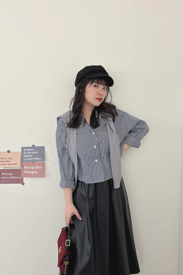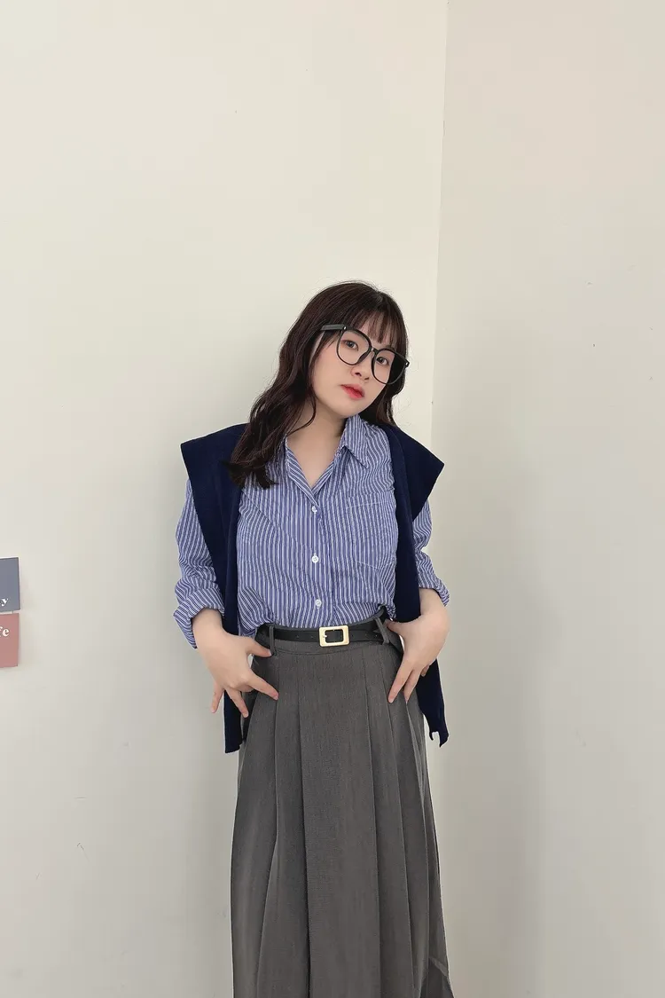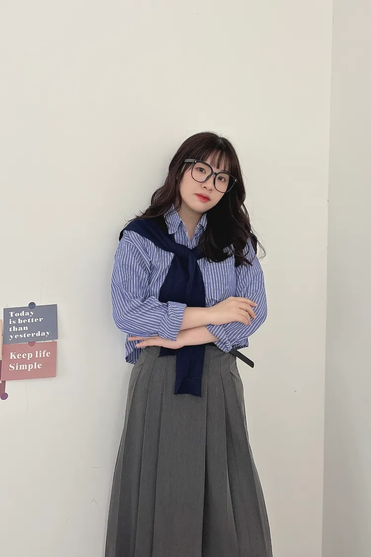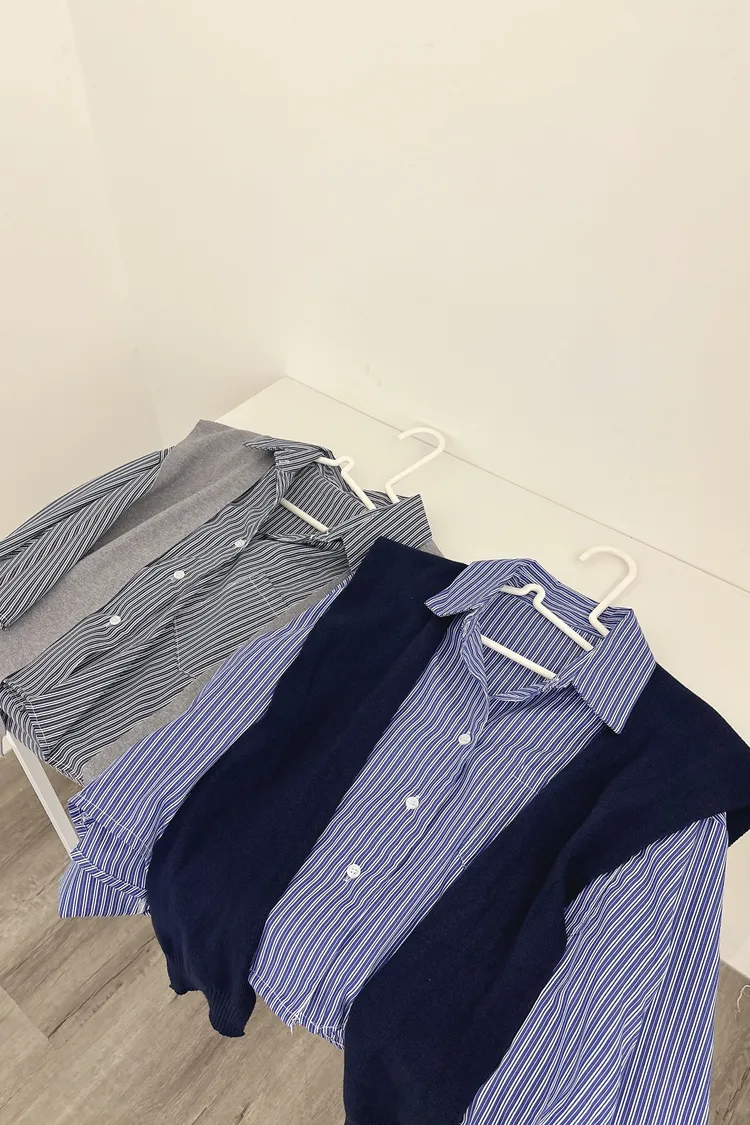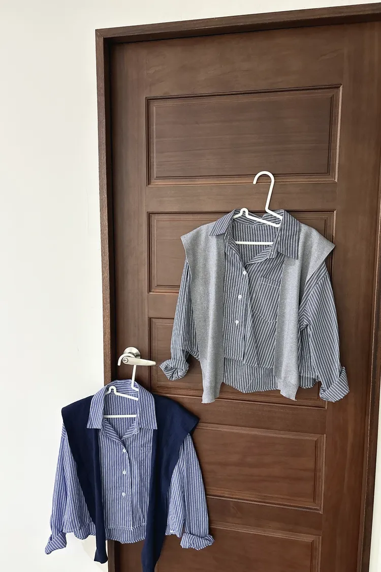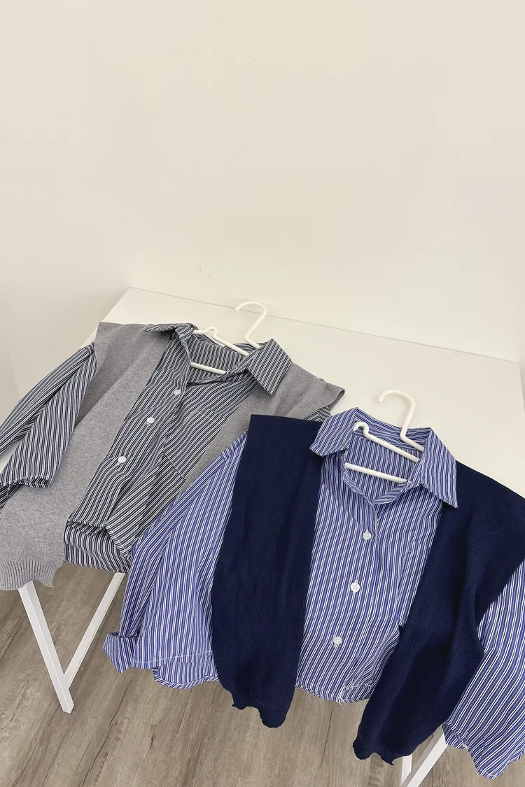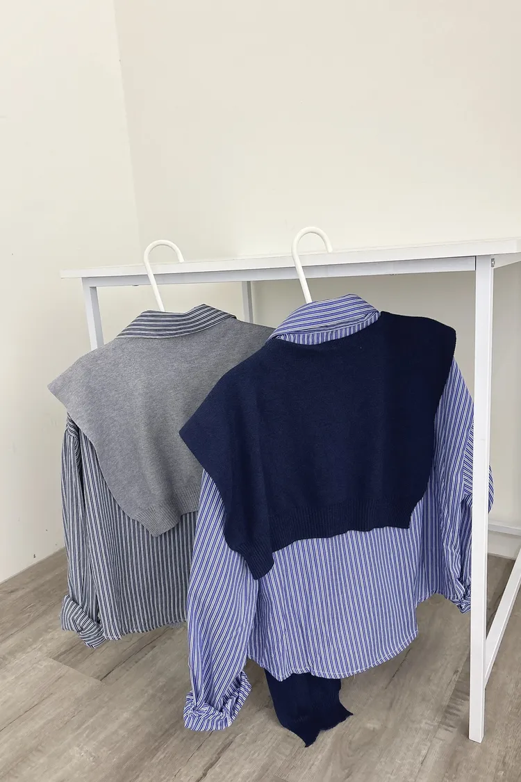 正確配色為 灰色襯衫+藍披肩、藍色襯衫+灰披肩