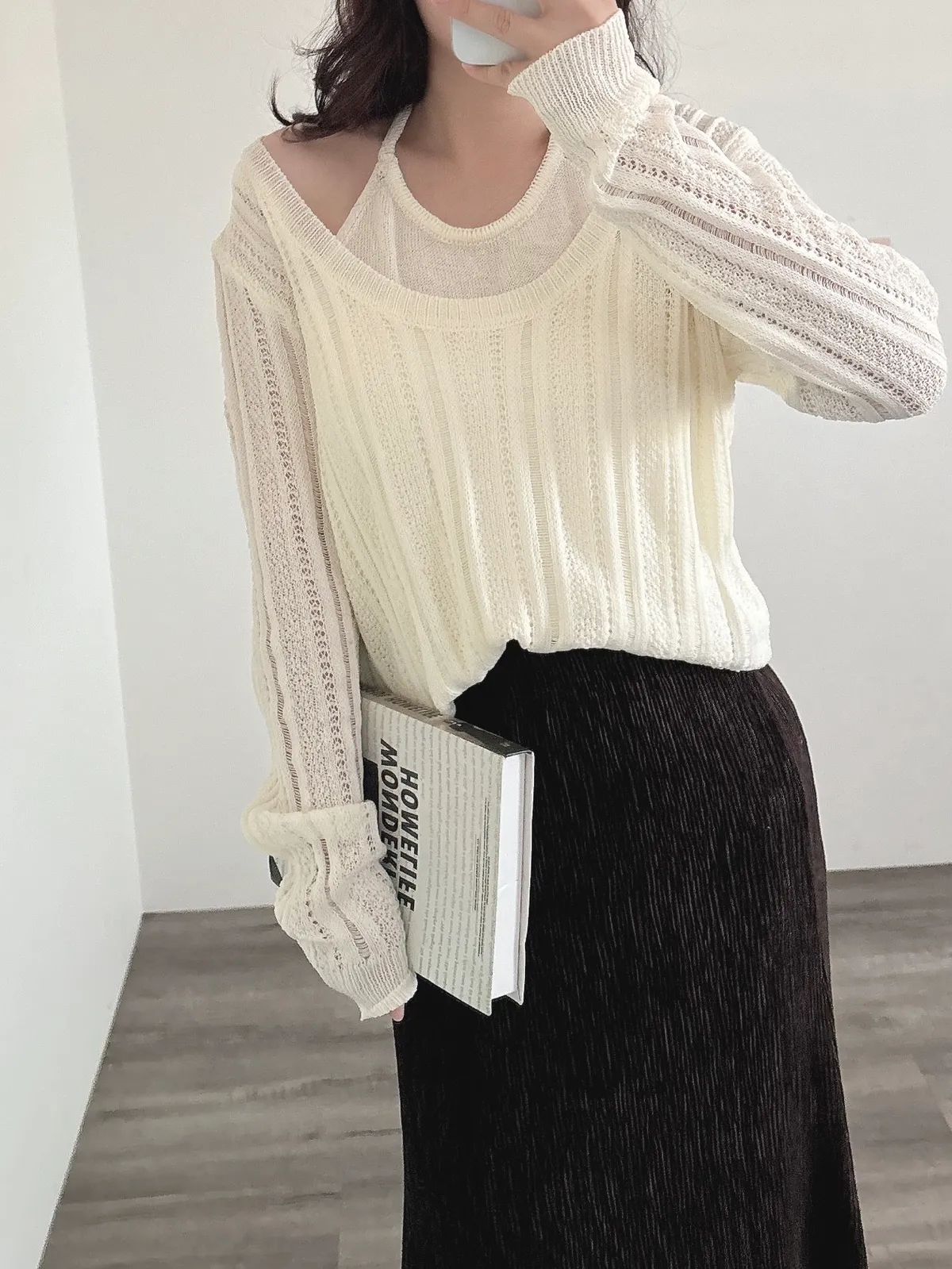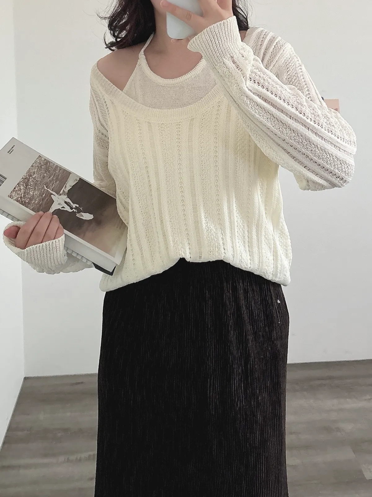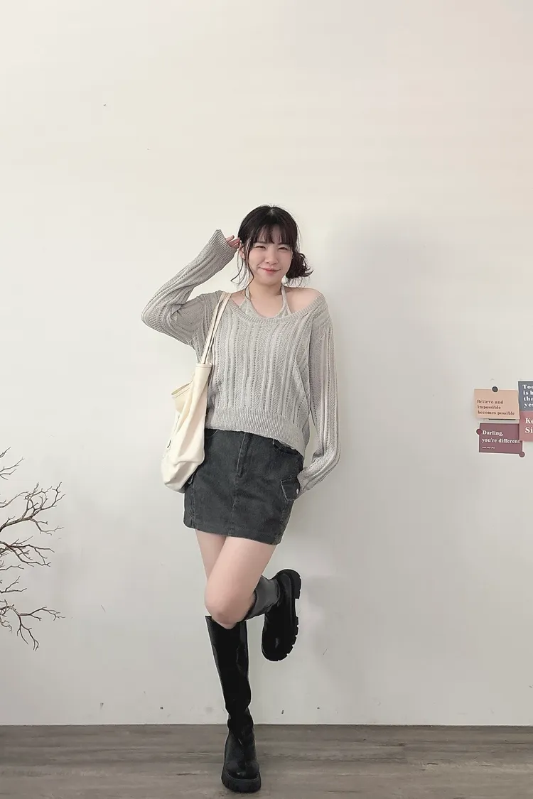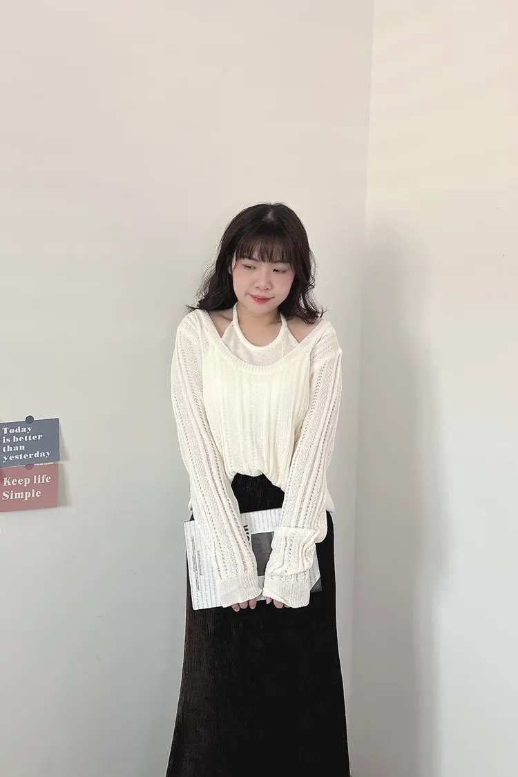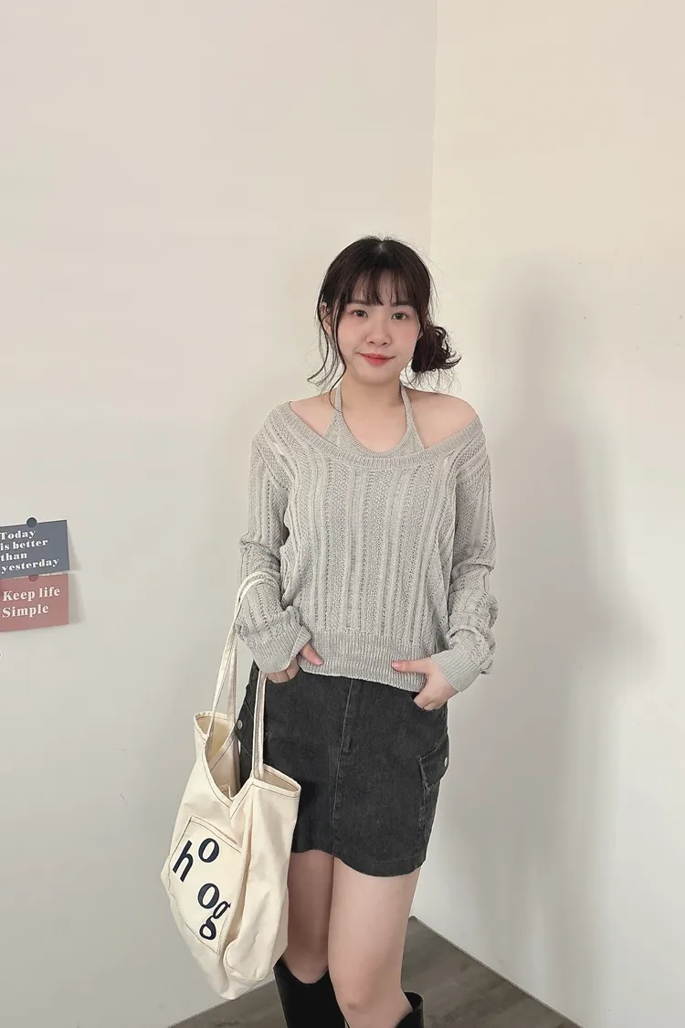 U領針織+背心2件組
