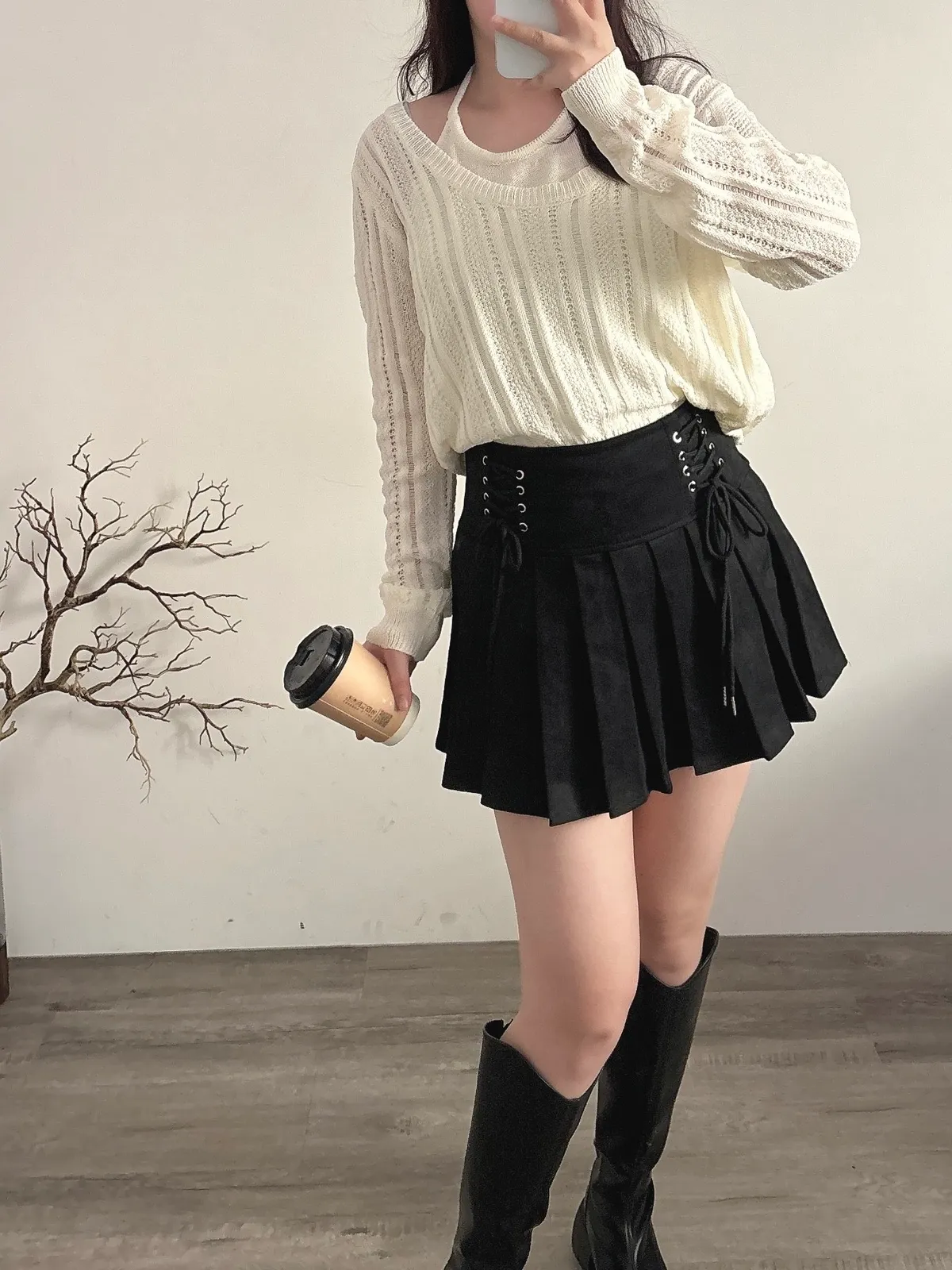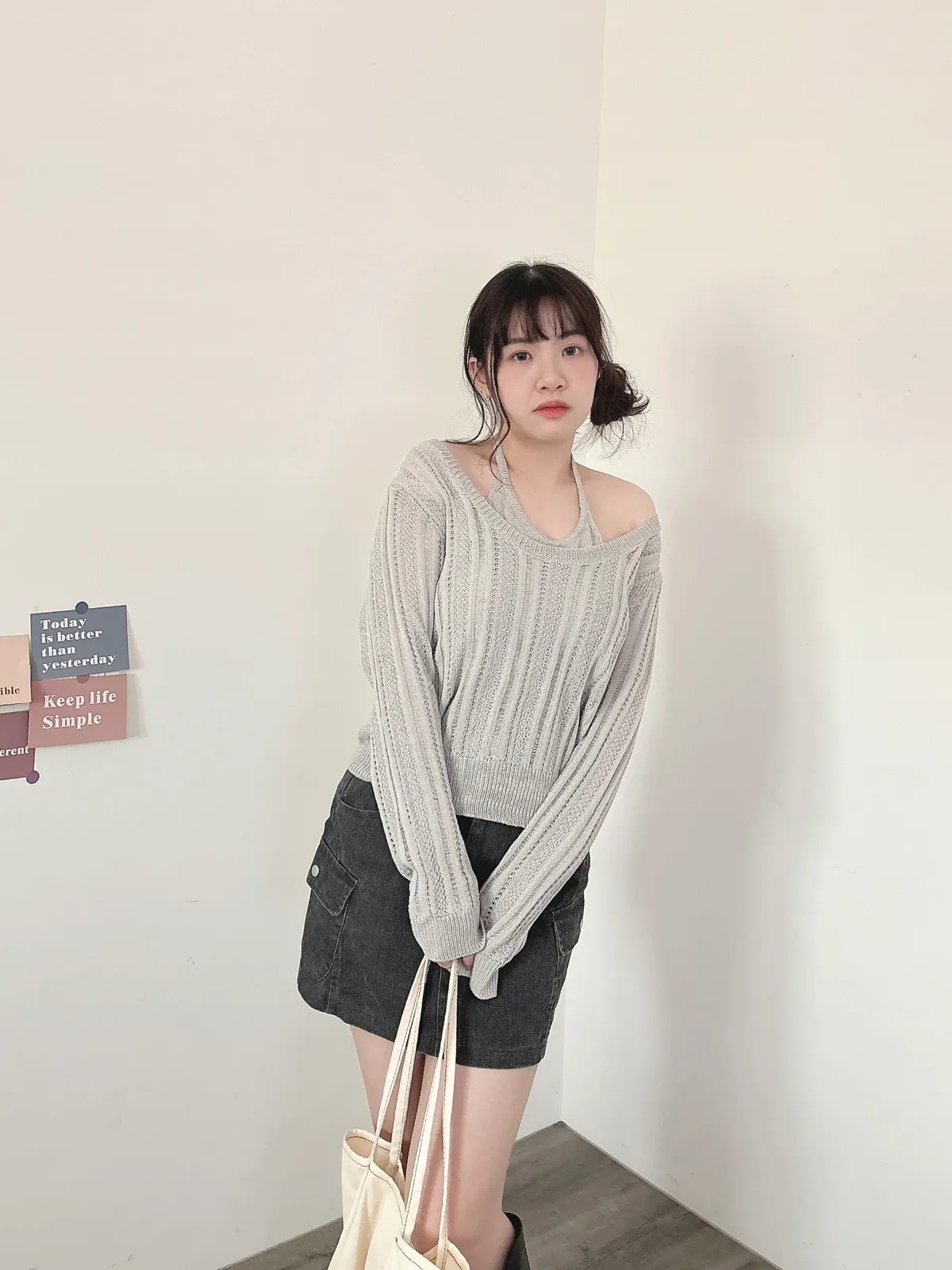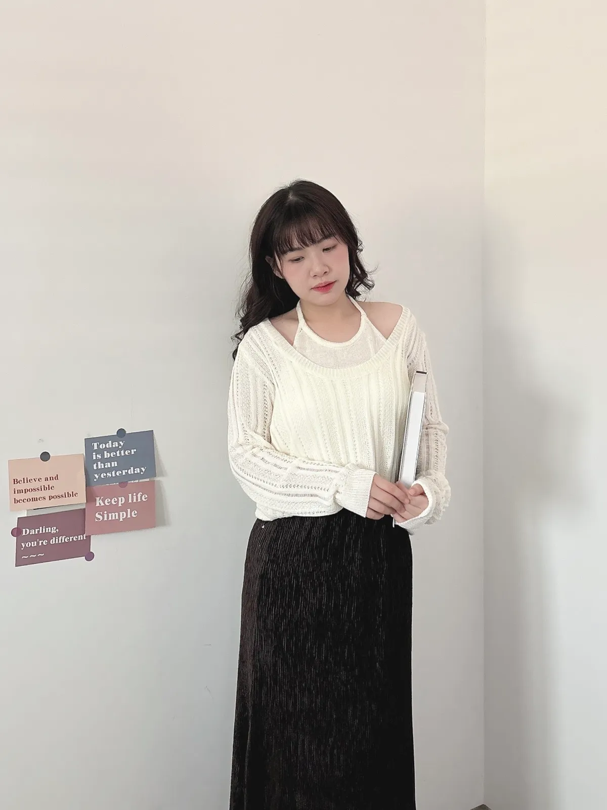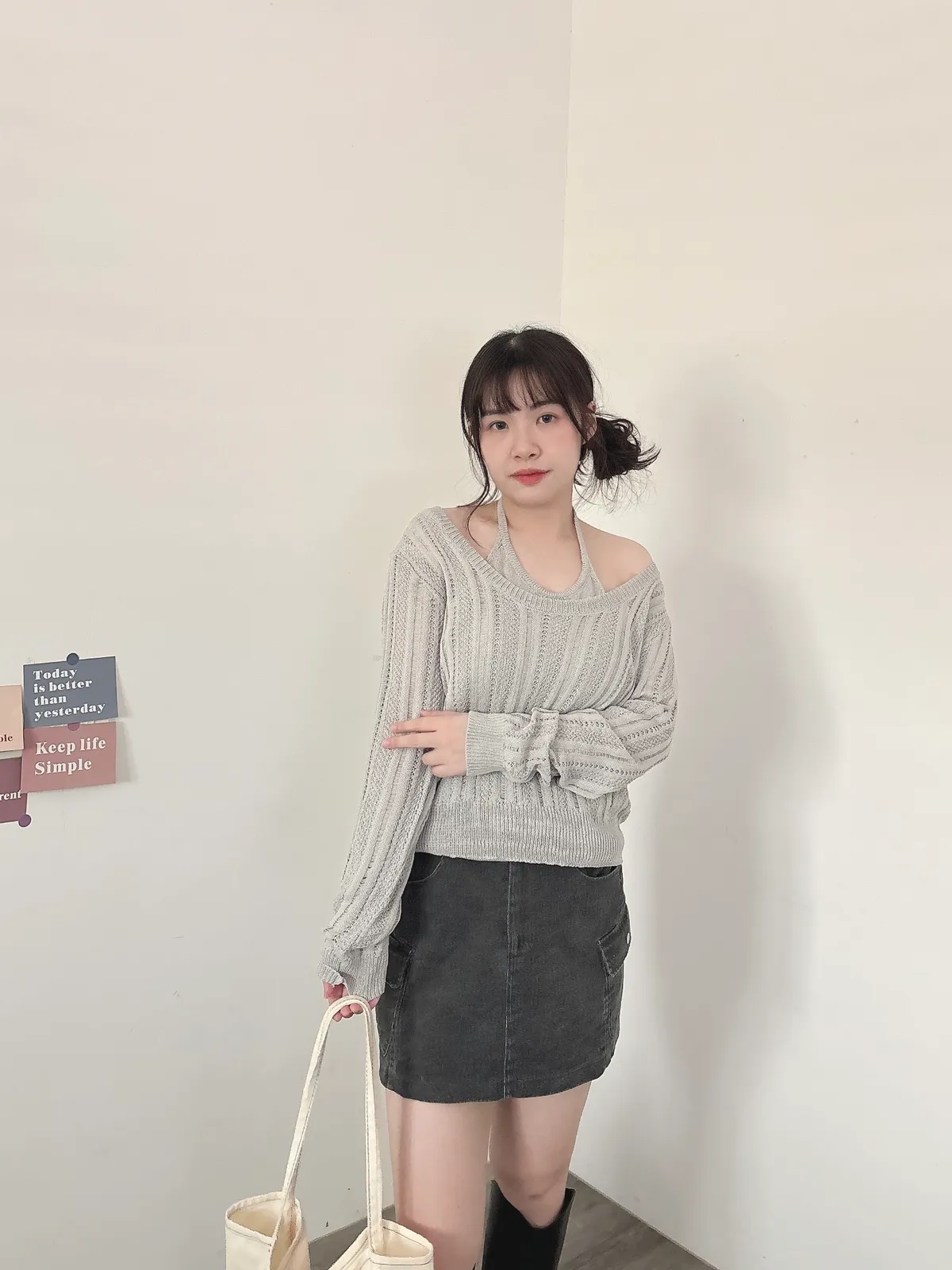 U領針織+背心2件組