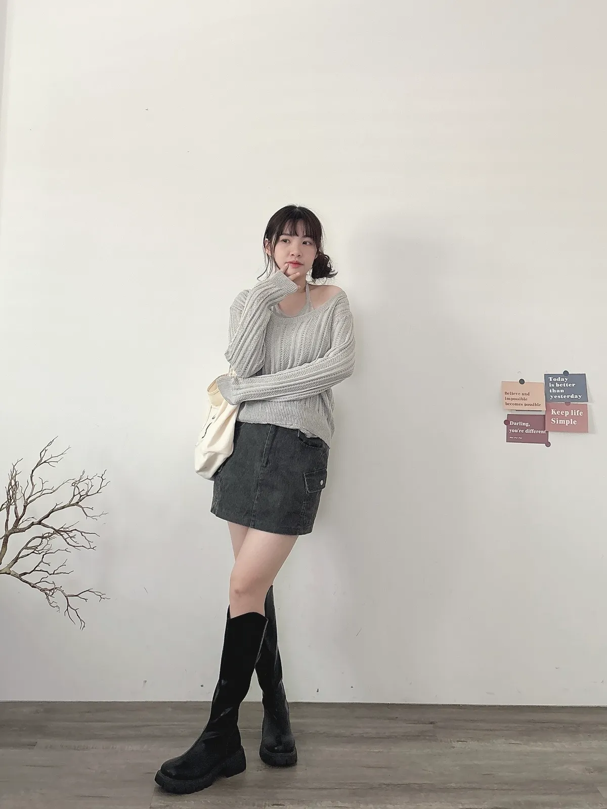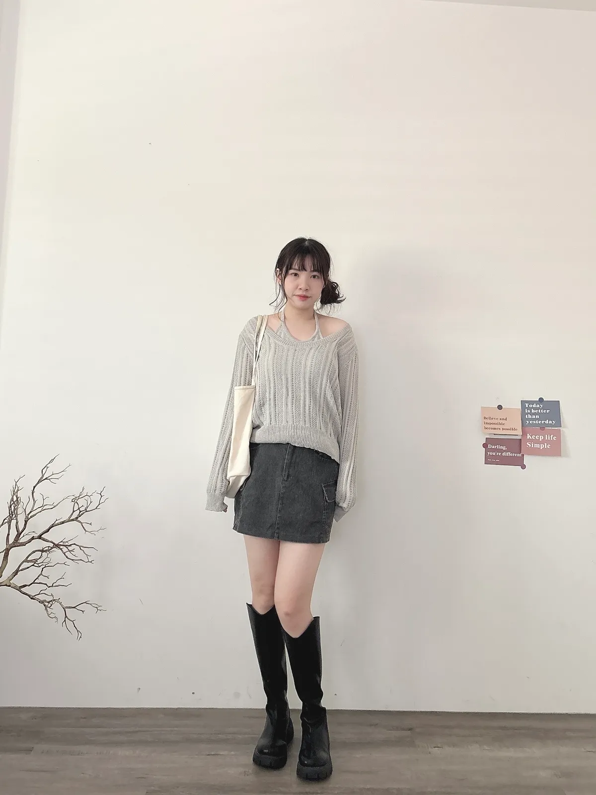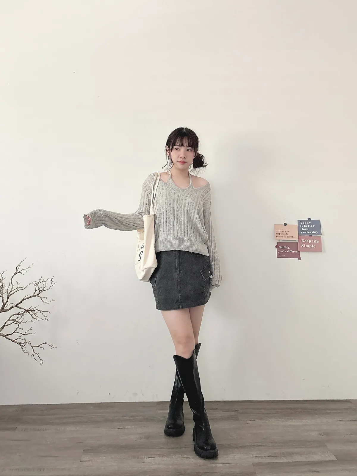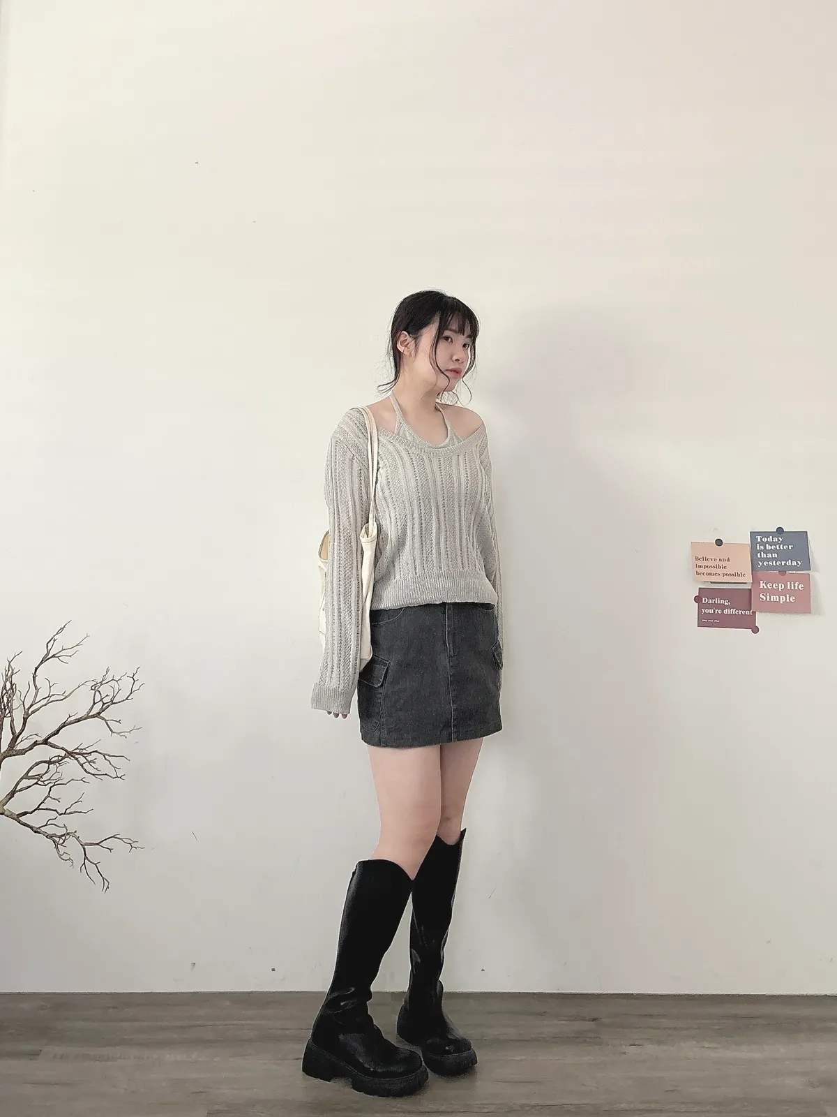 U領針織+背心2件組