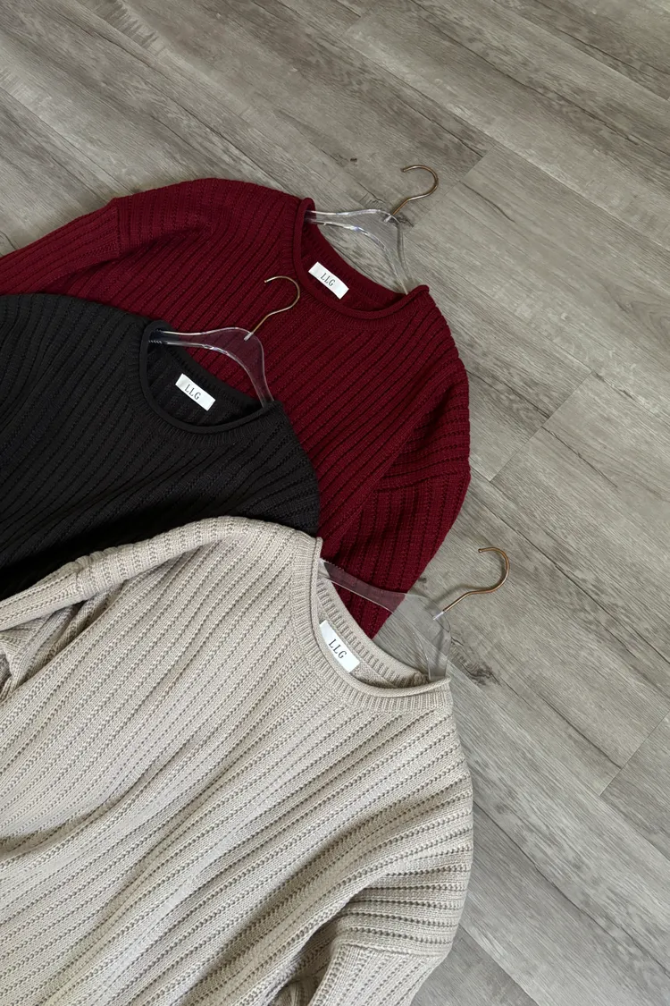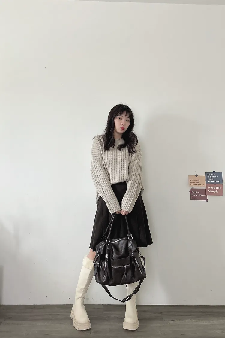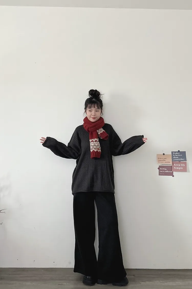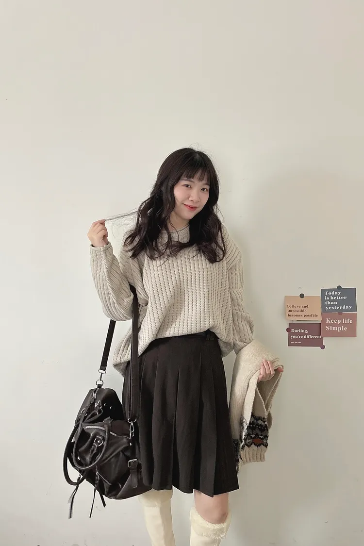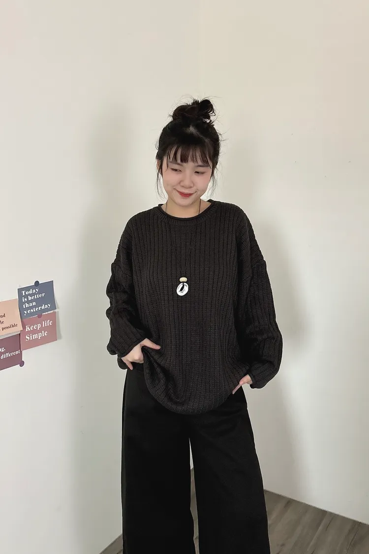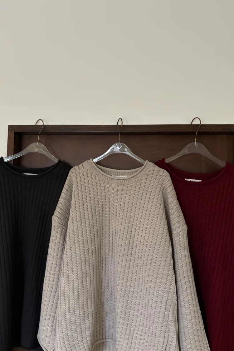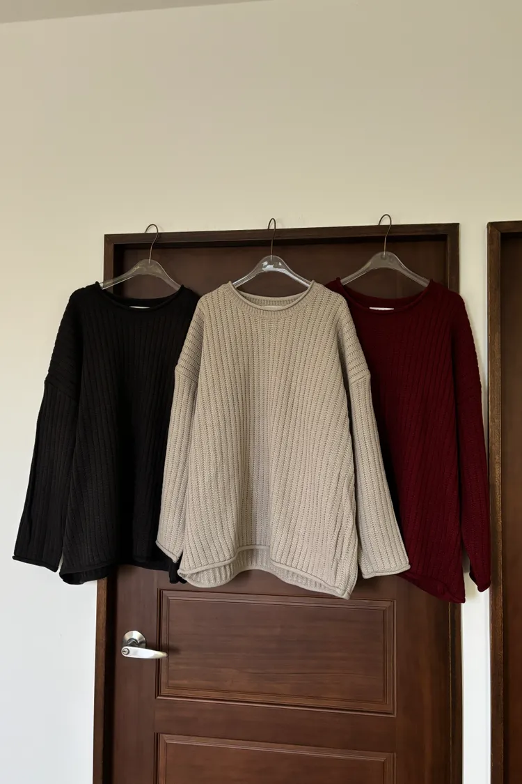 捲邊坑條寬鬆毛衣