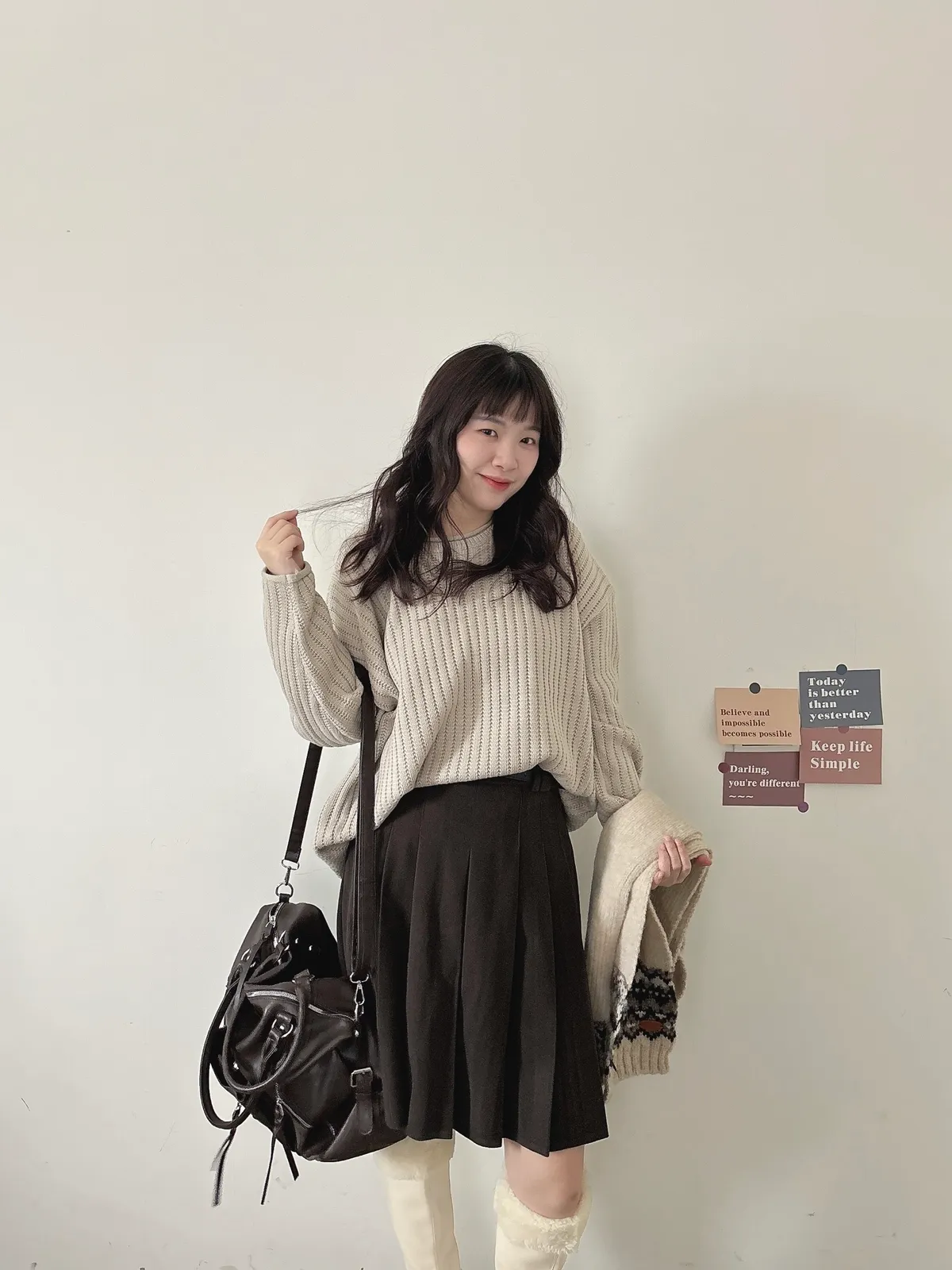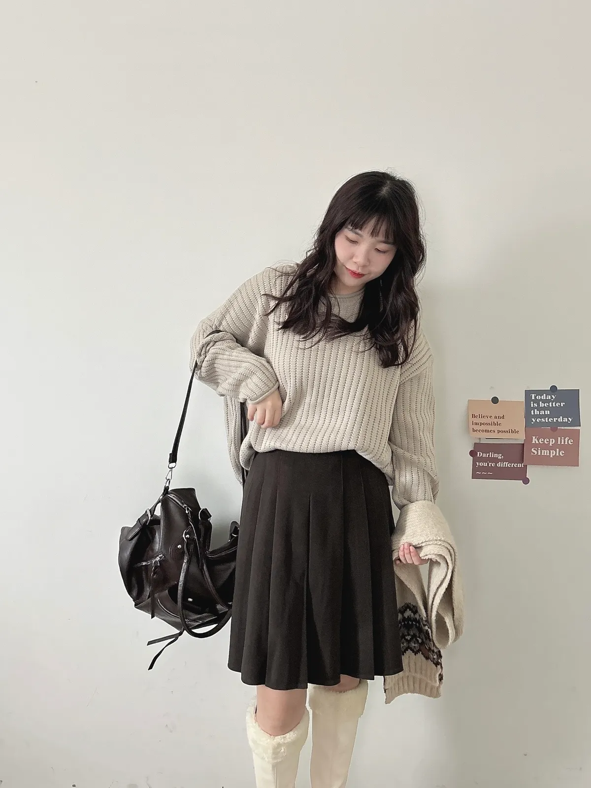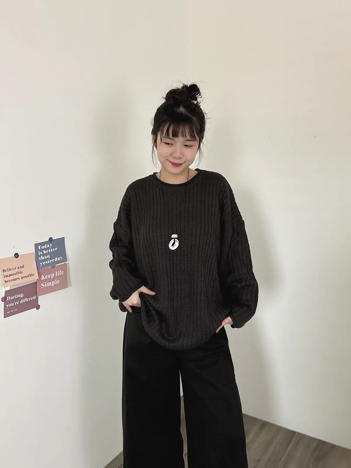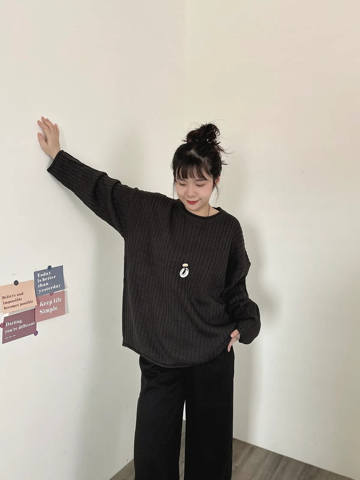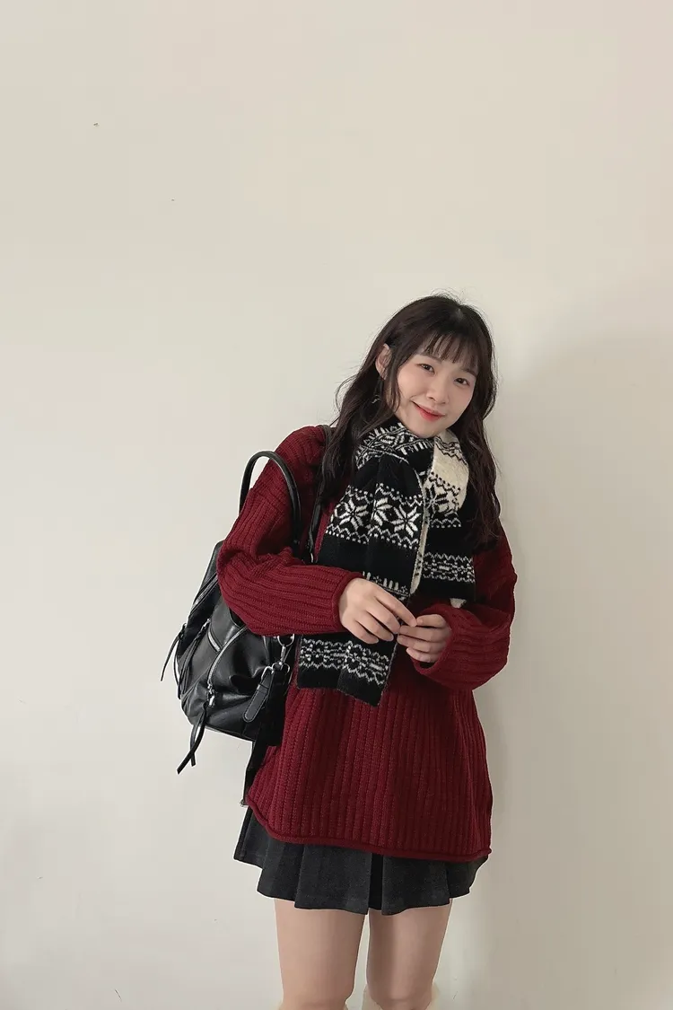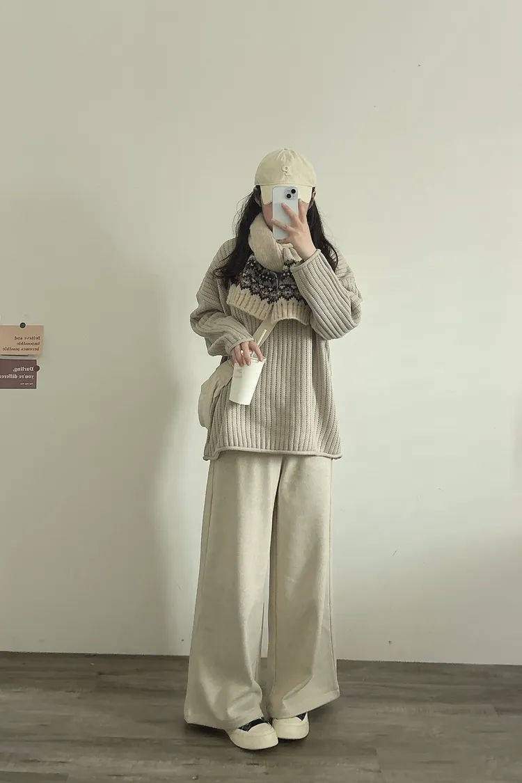 捲邊坑條寬鬆毛衣
