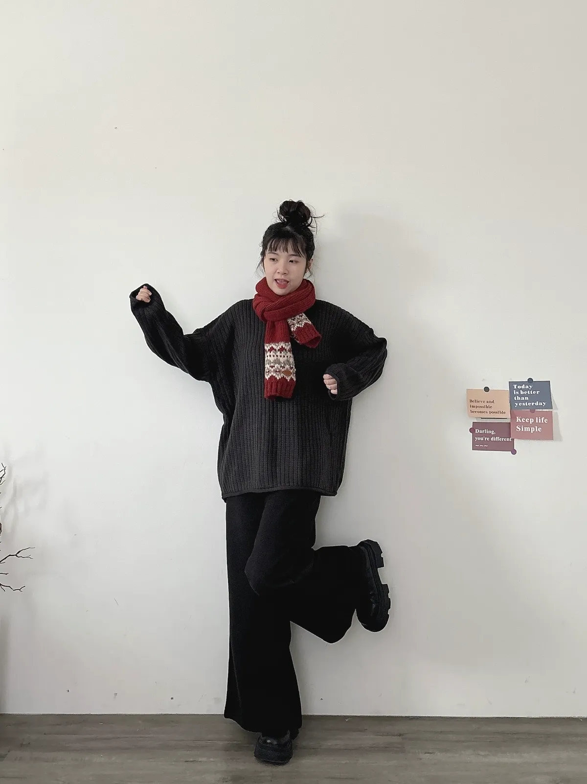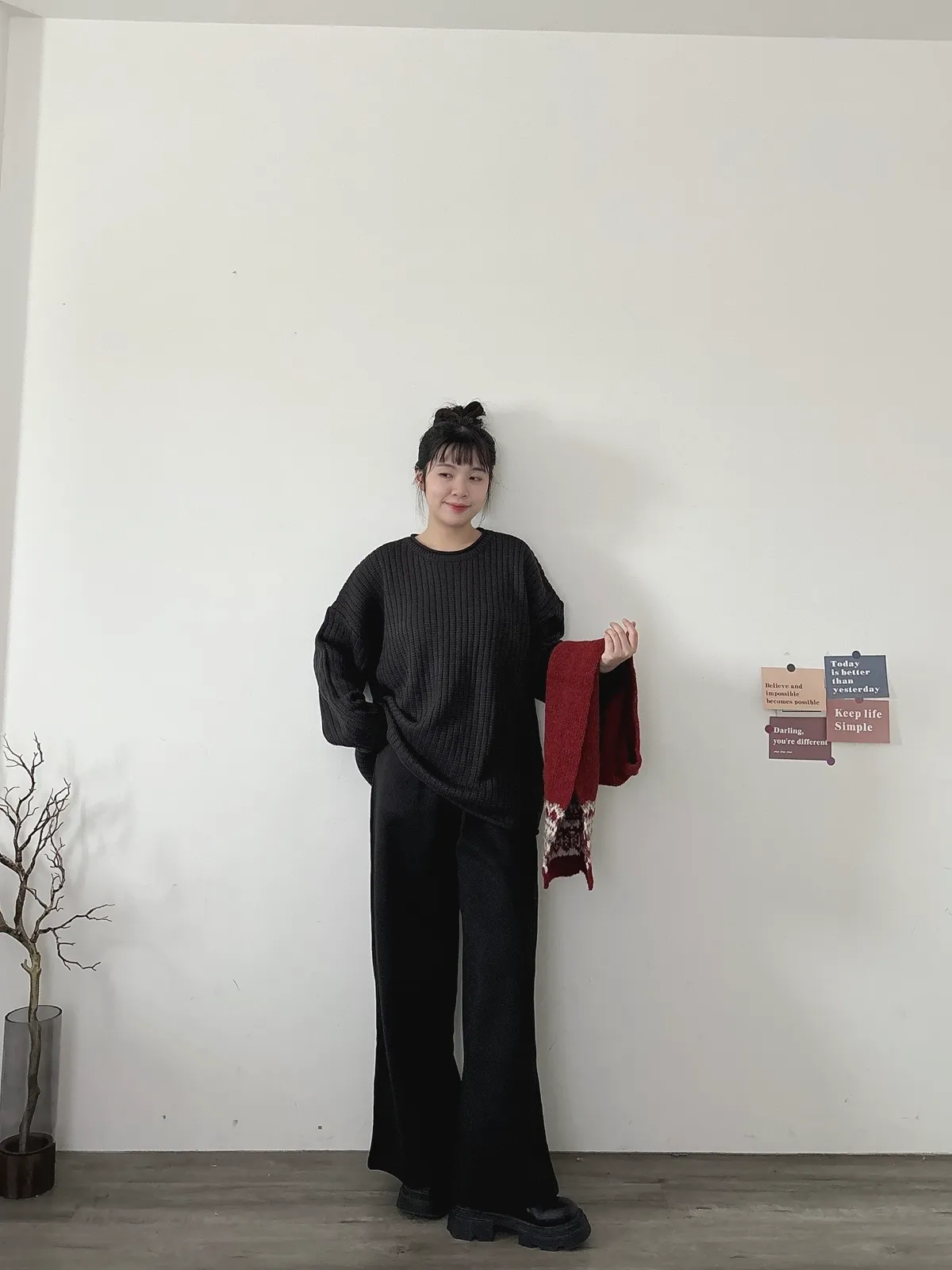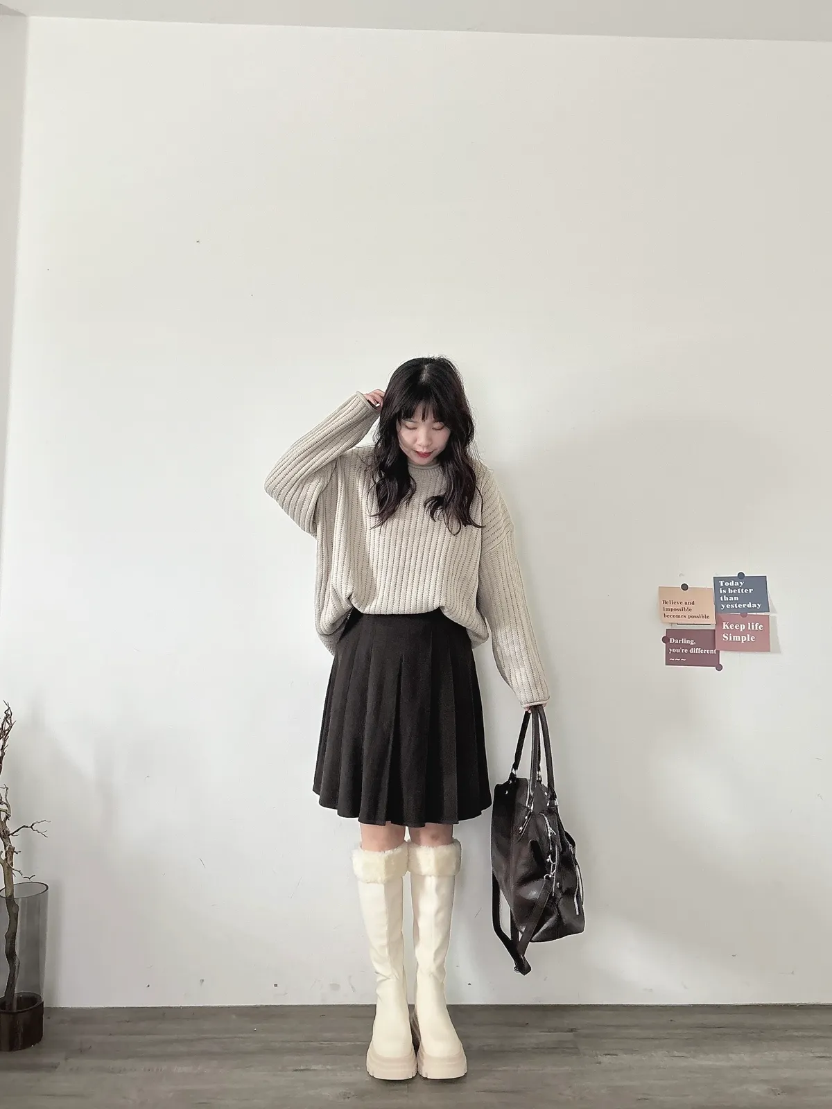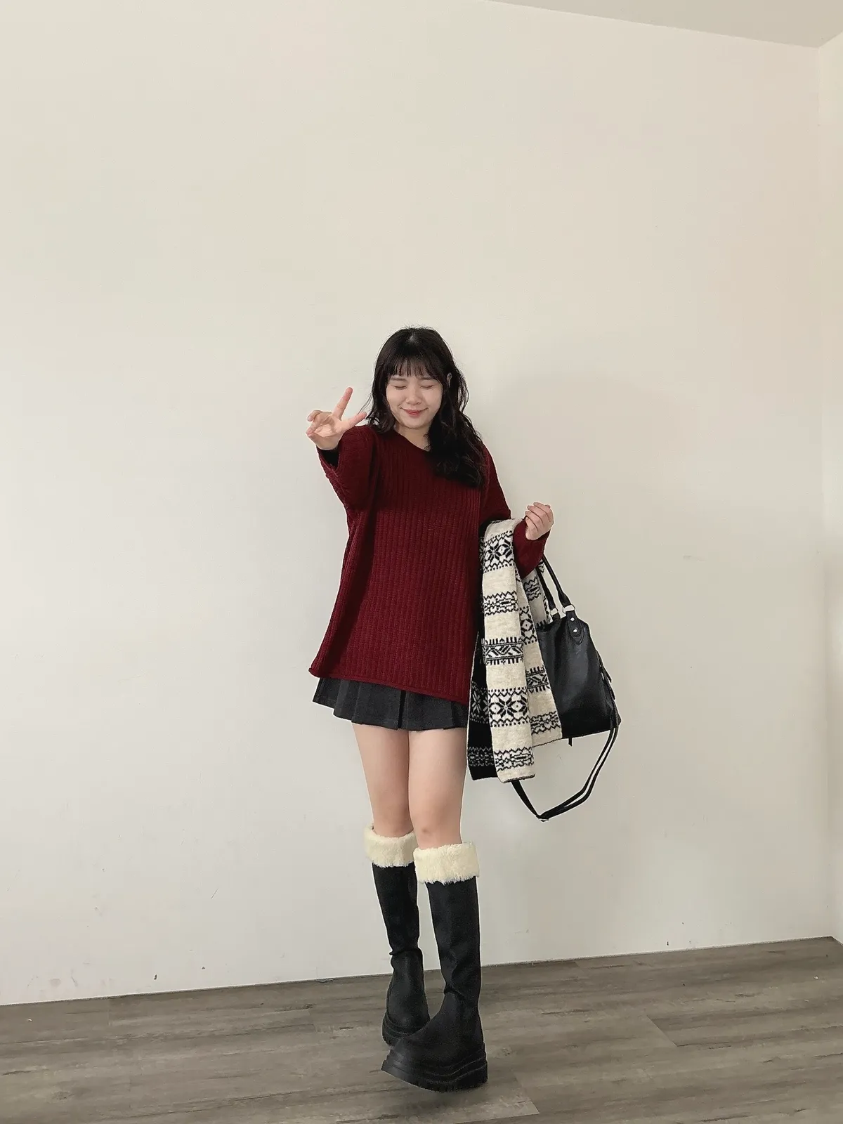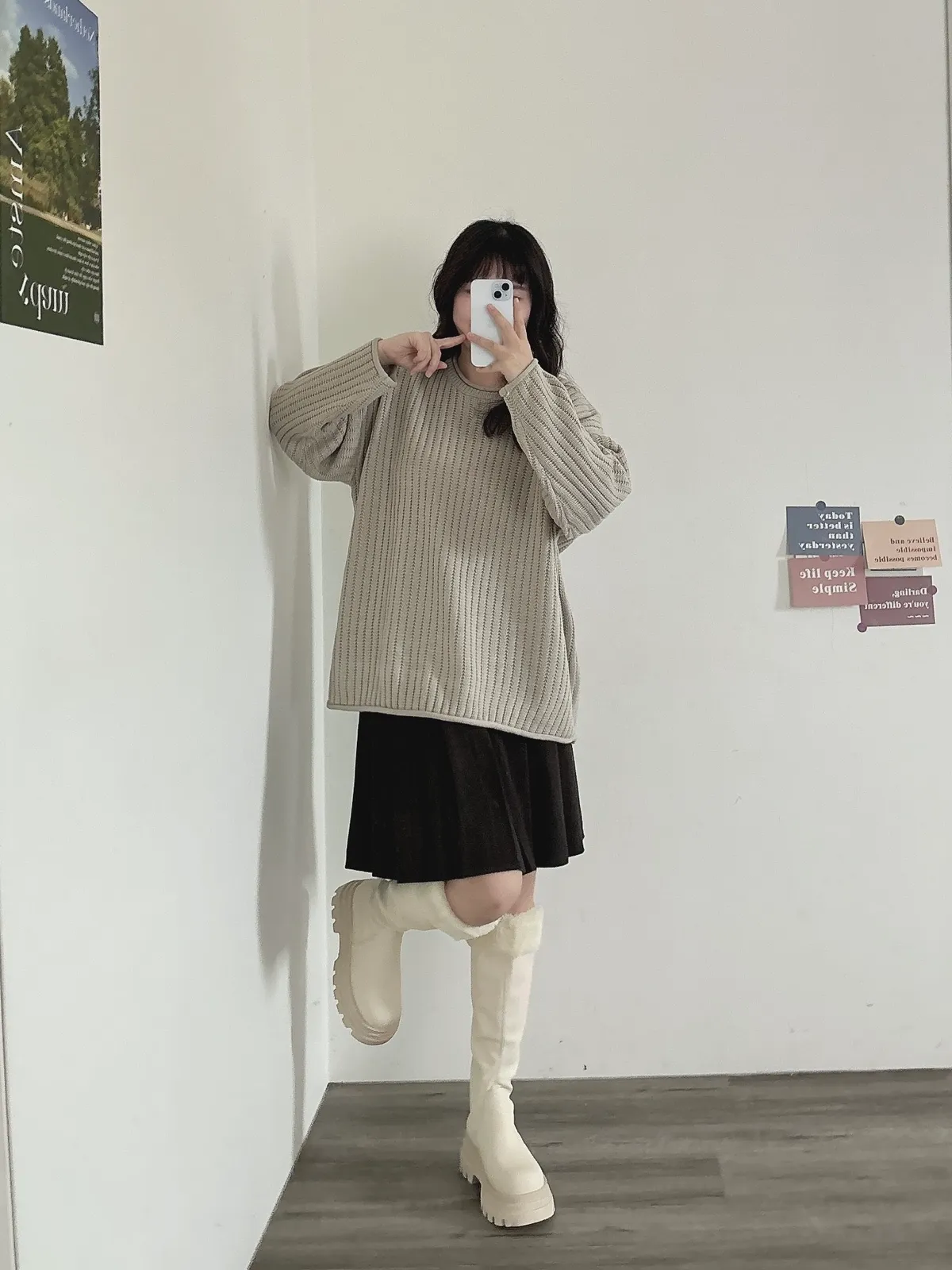 捲邊坑條寬鬆毛衣