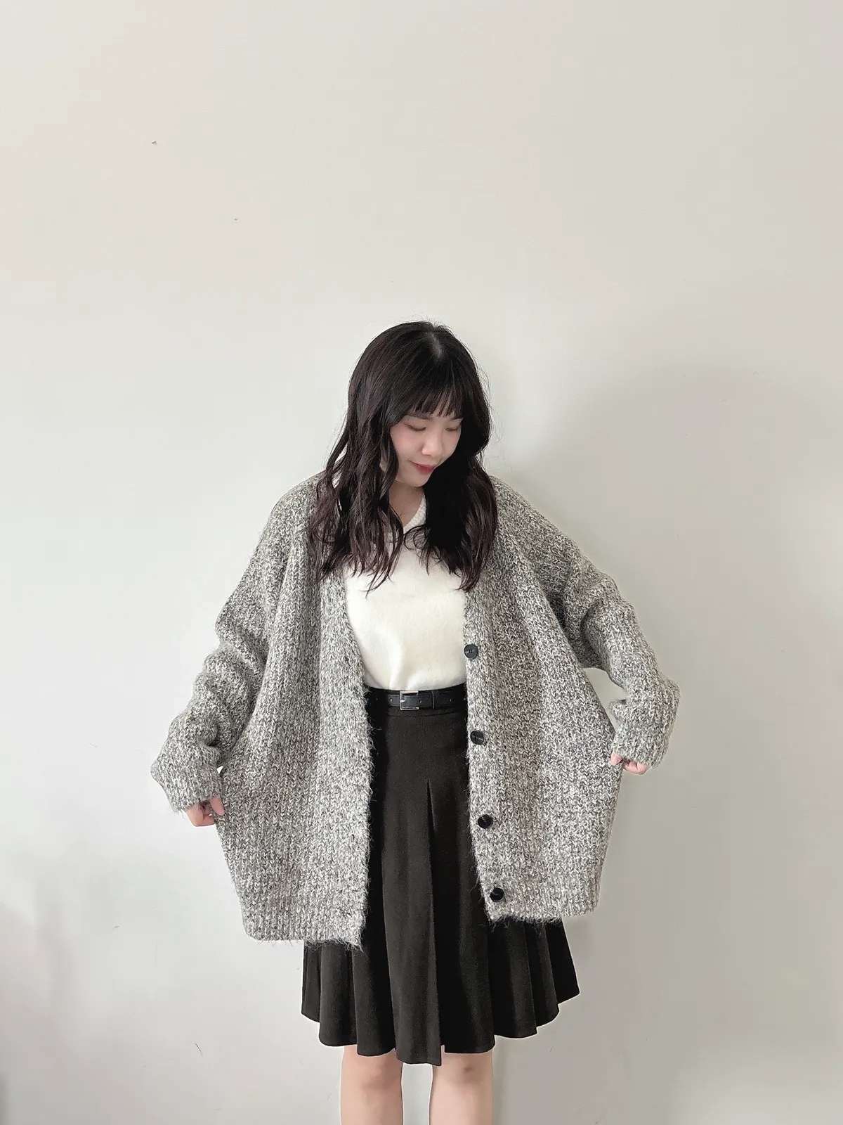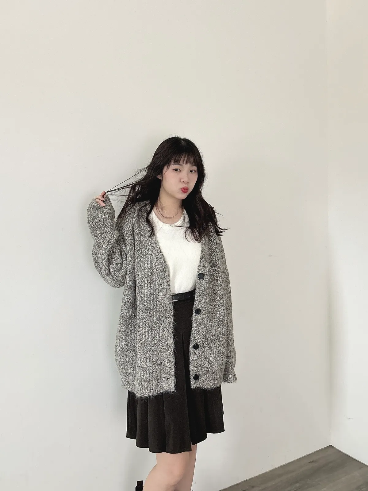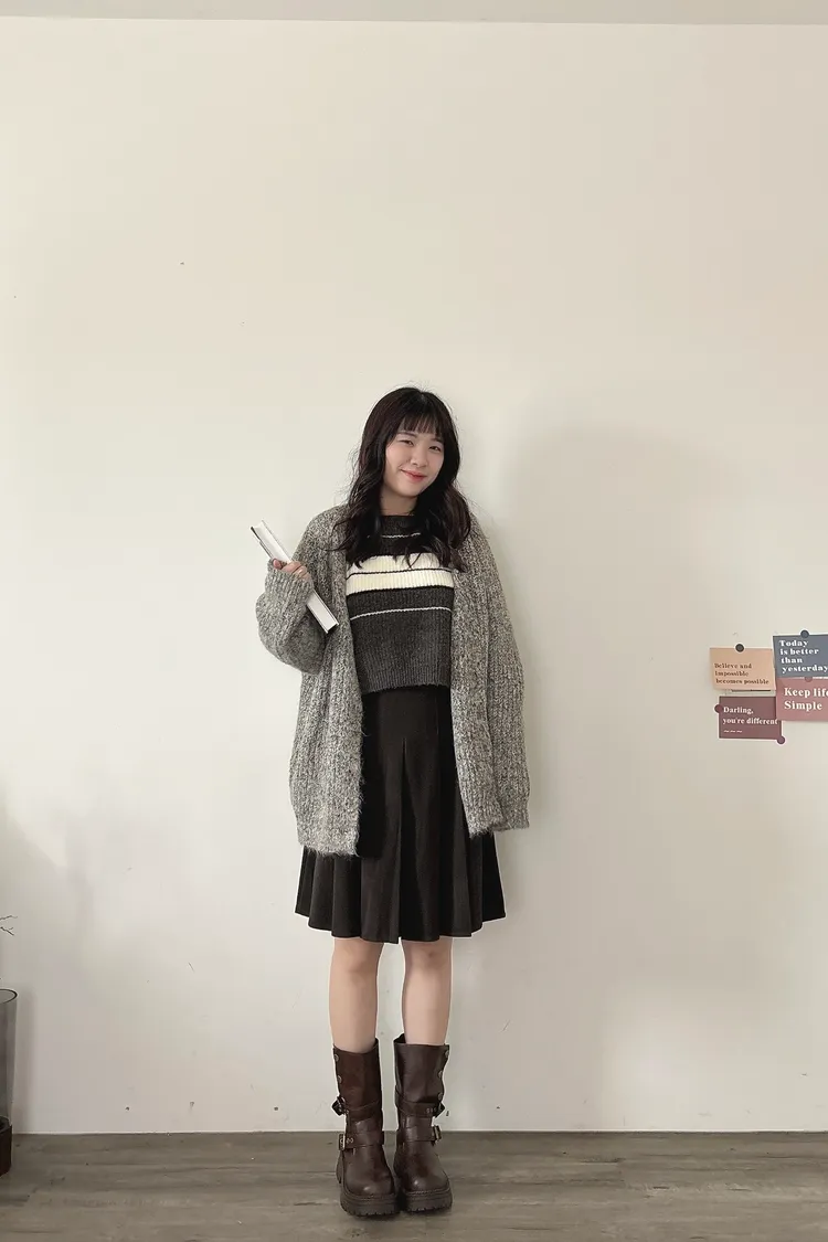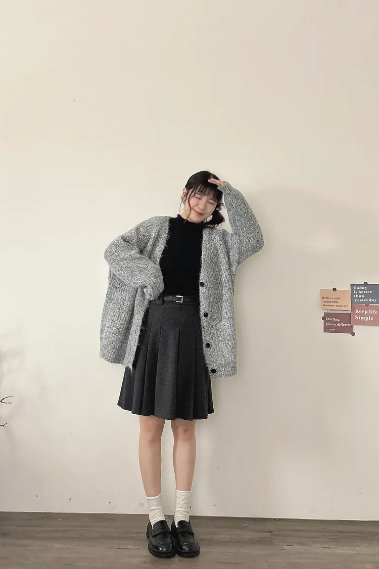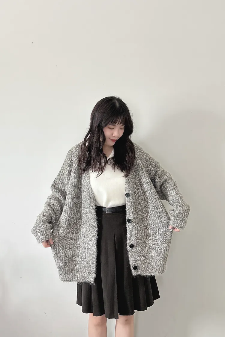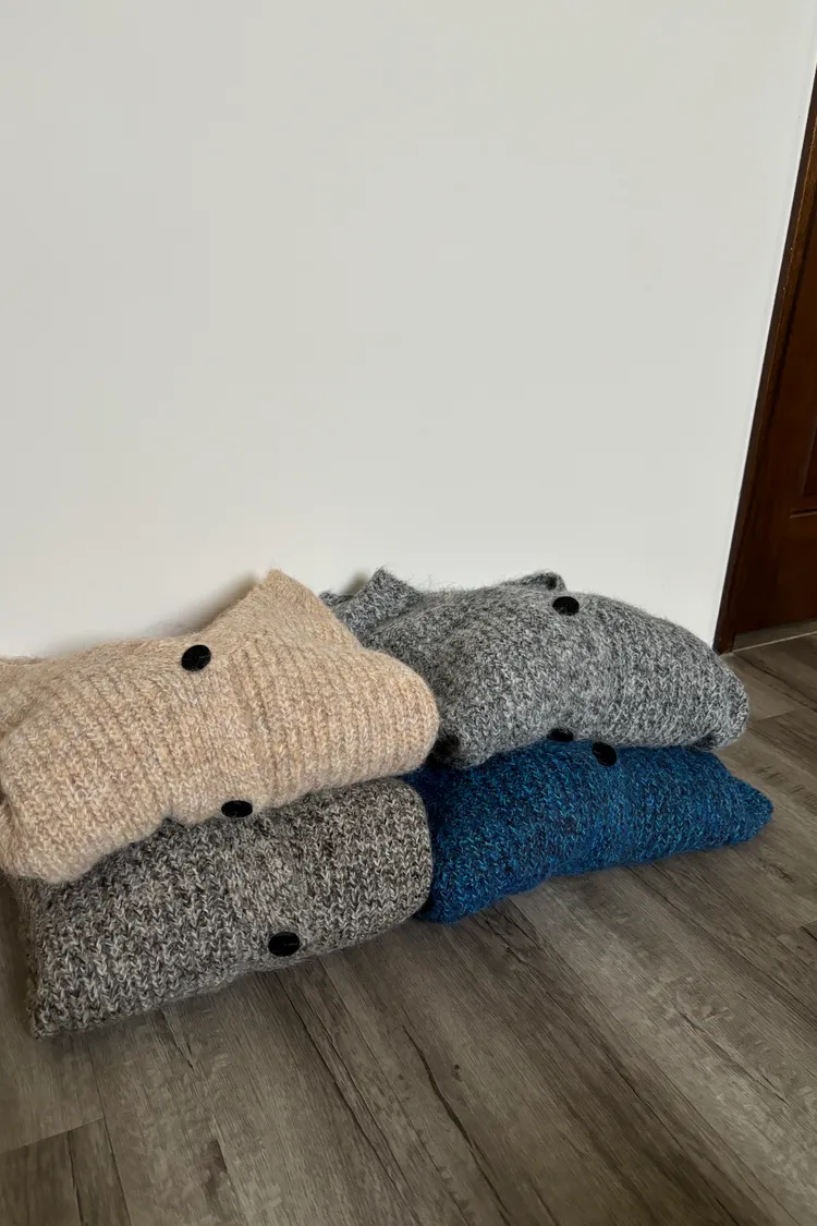 混羊毛排扣針織外套