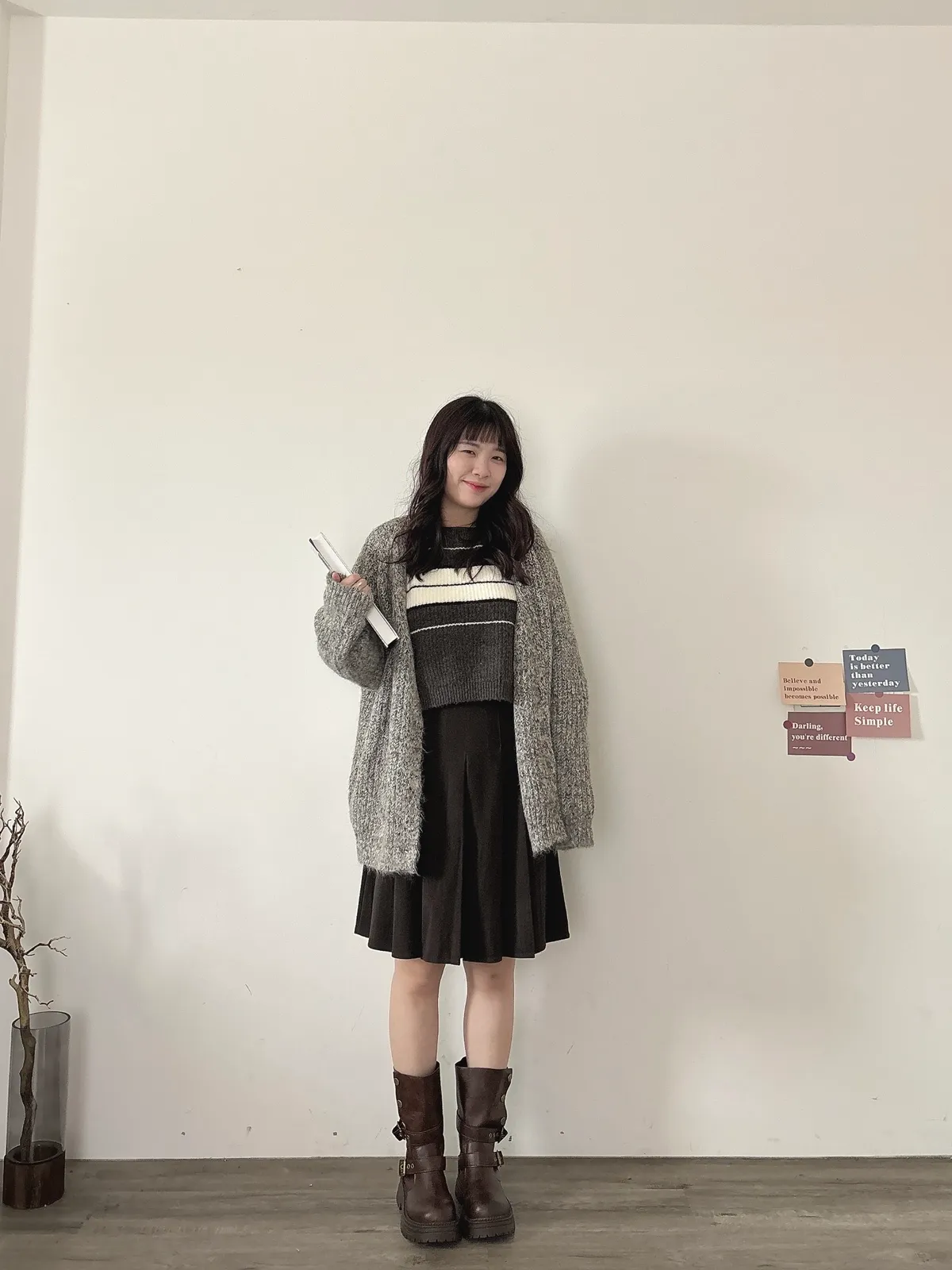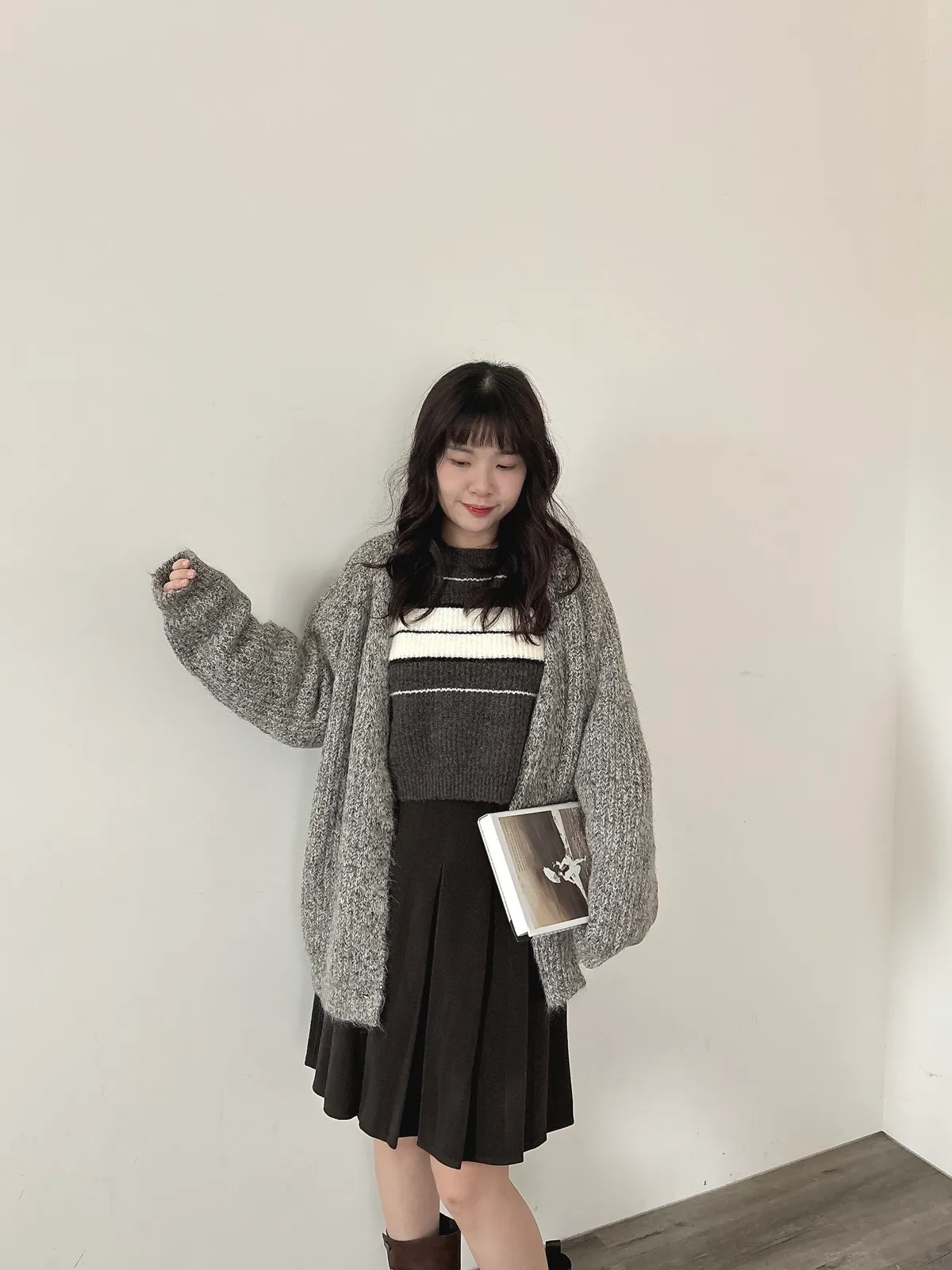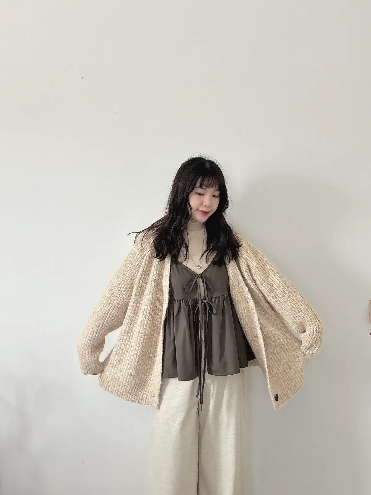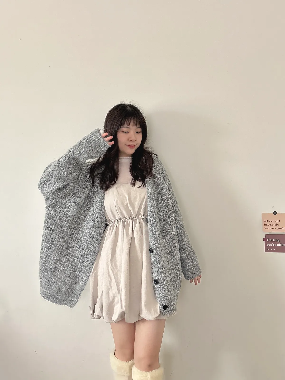 混羊毛排扣針織外套