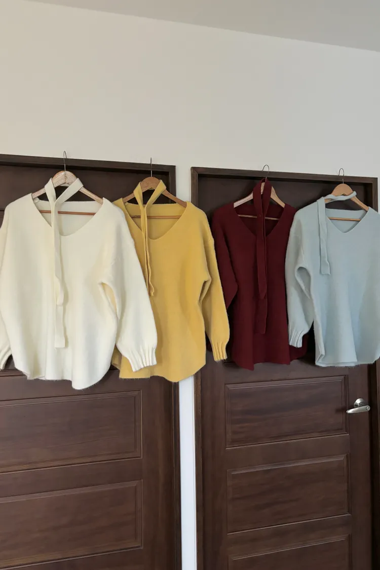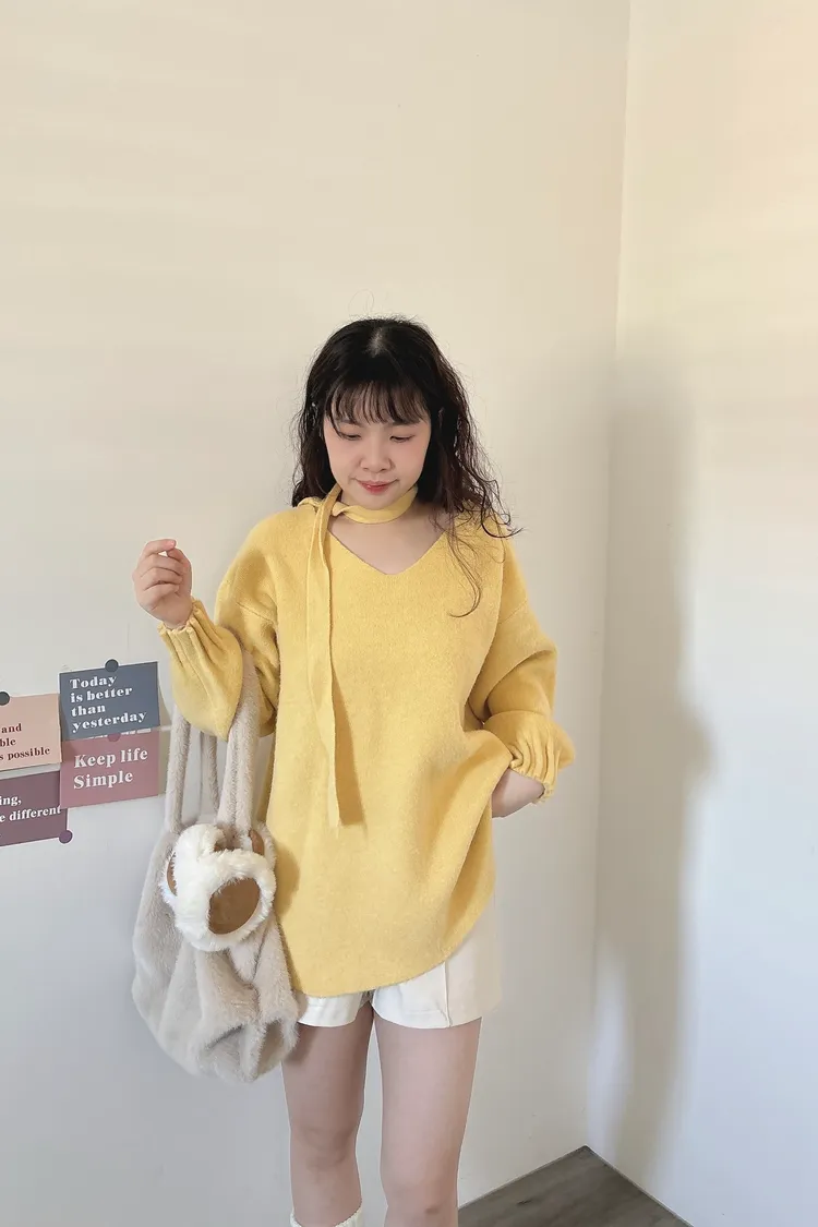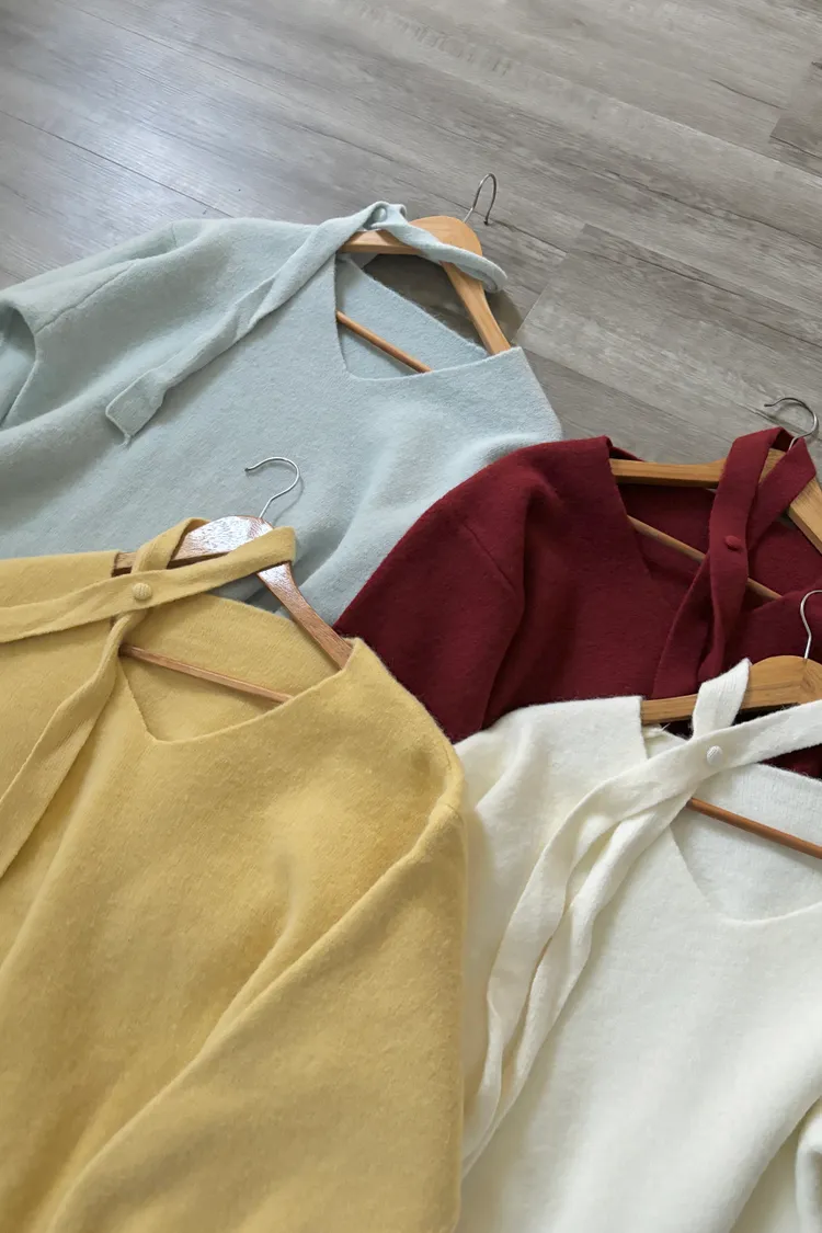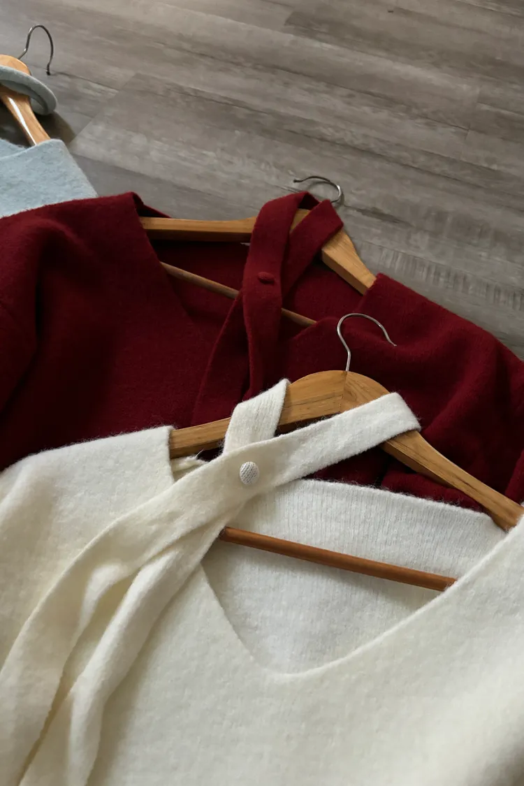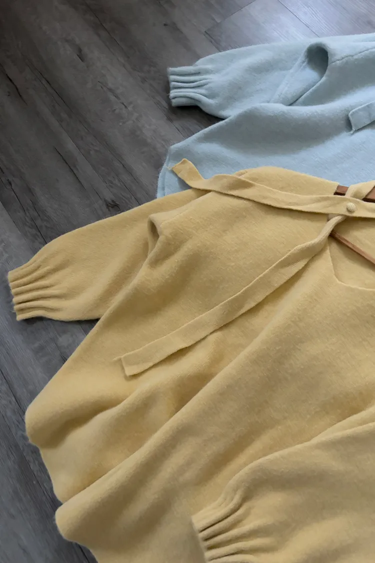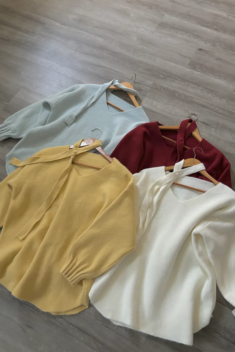 花苞袖口掛脖毛衣