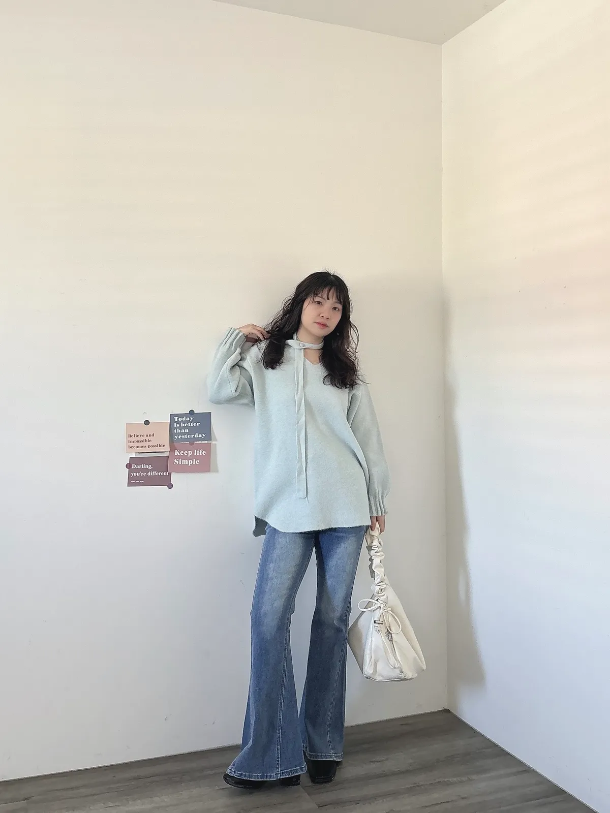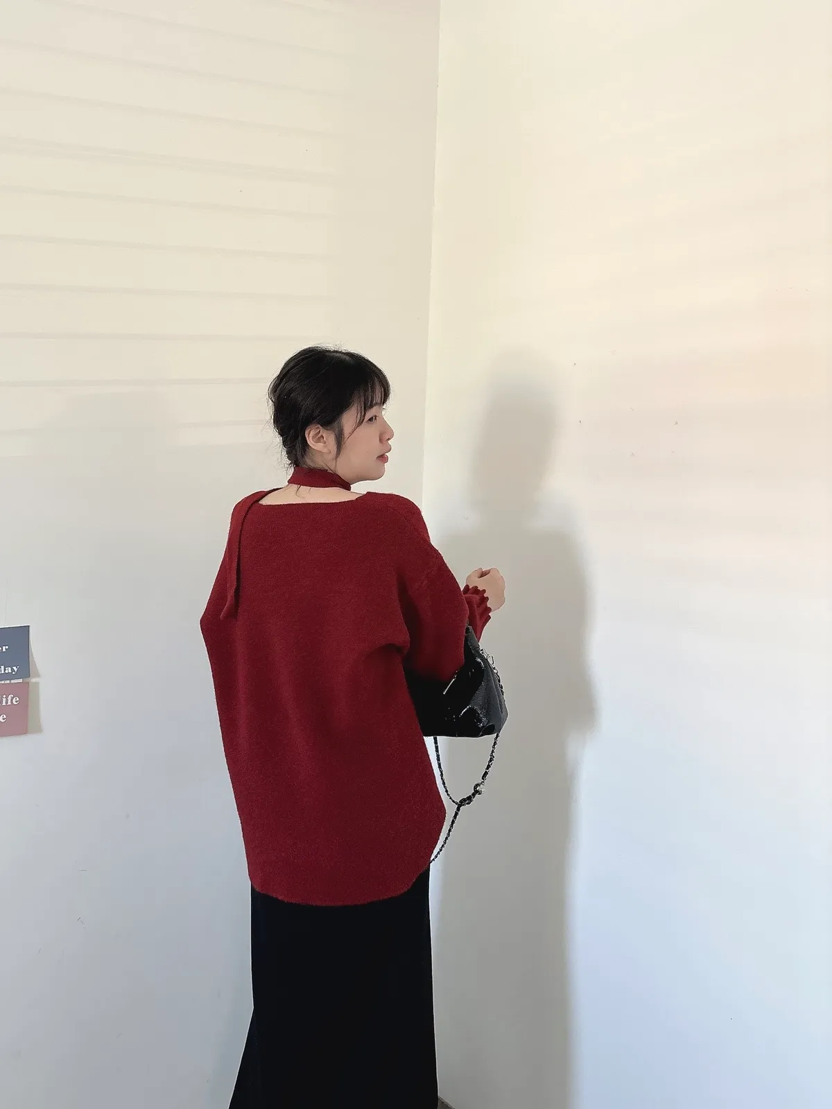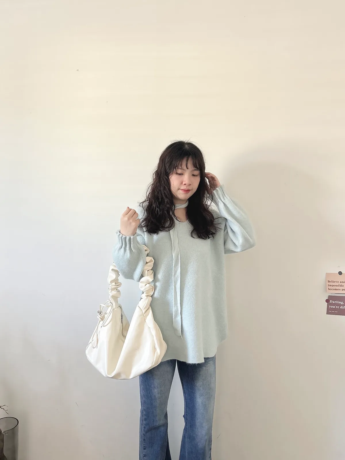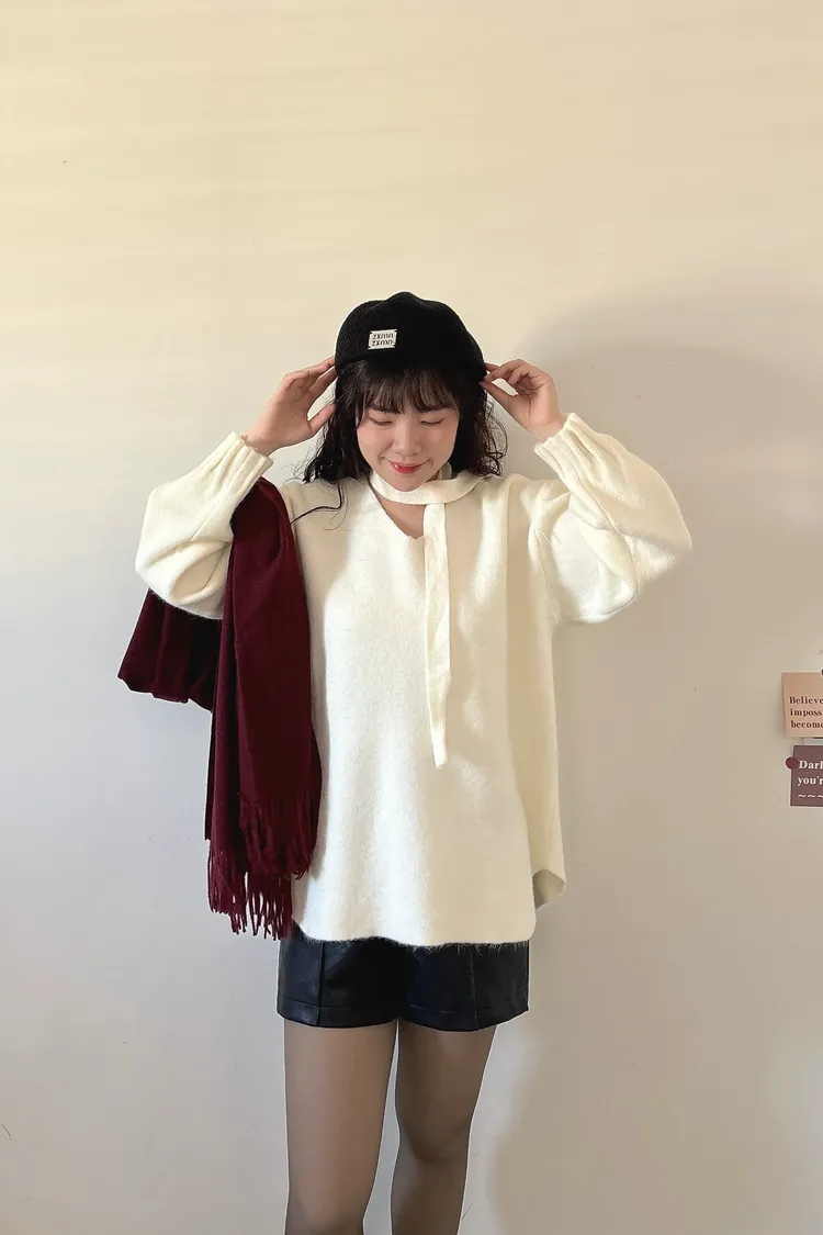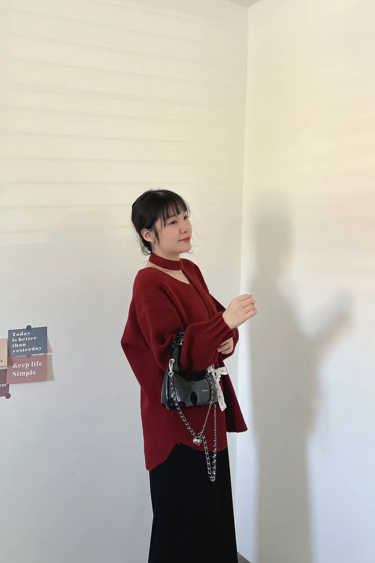花苞袖口掛脖毛衣