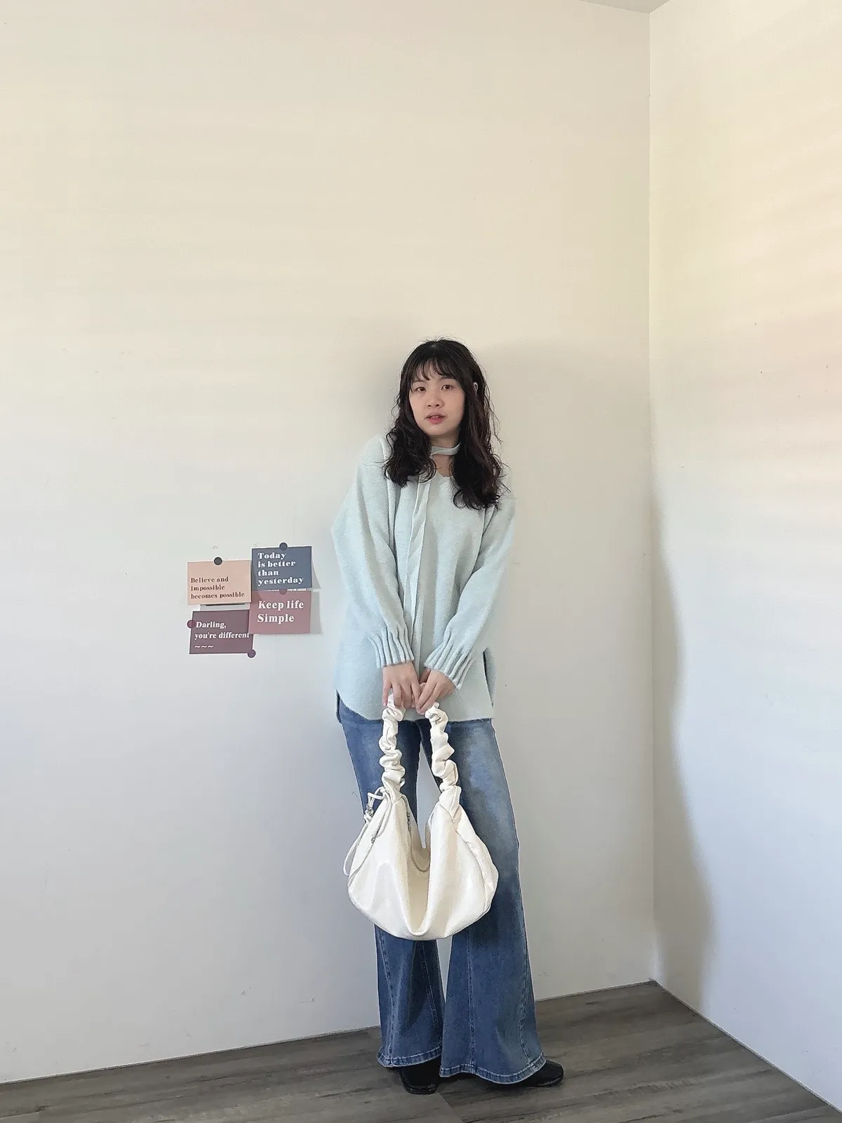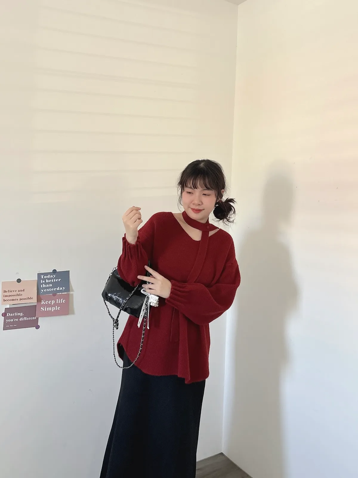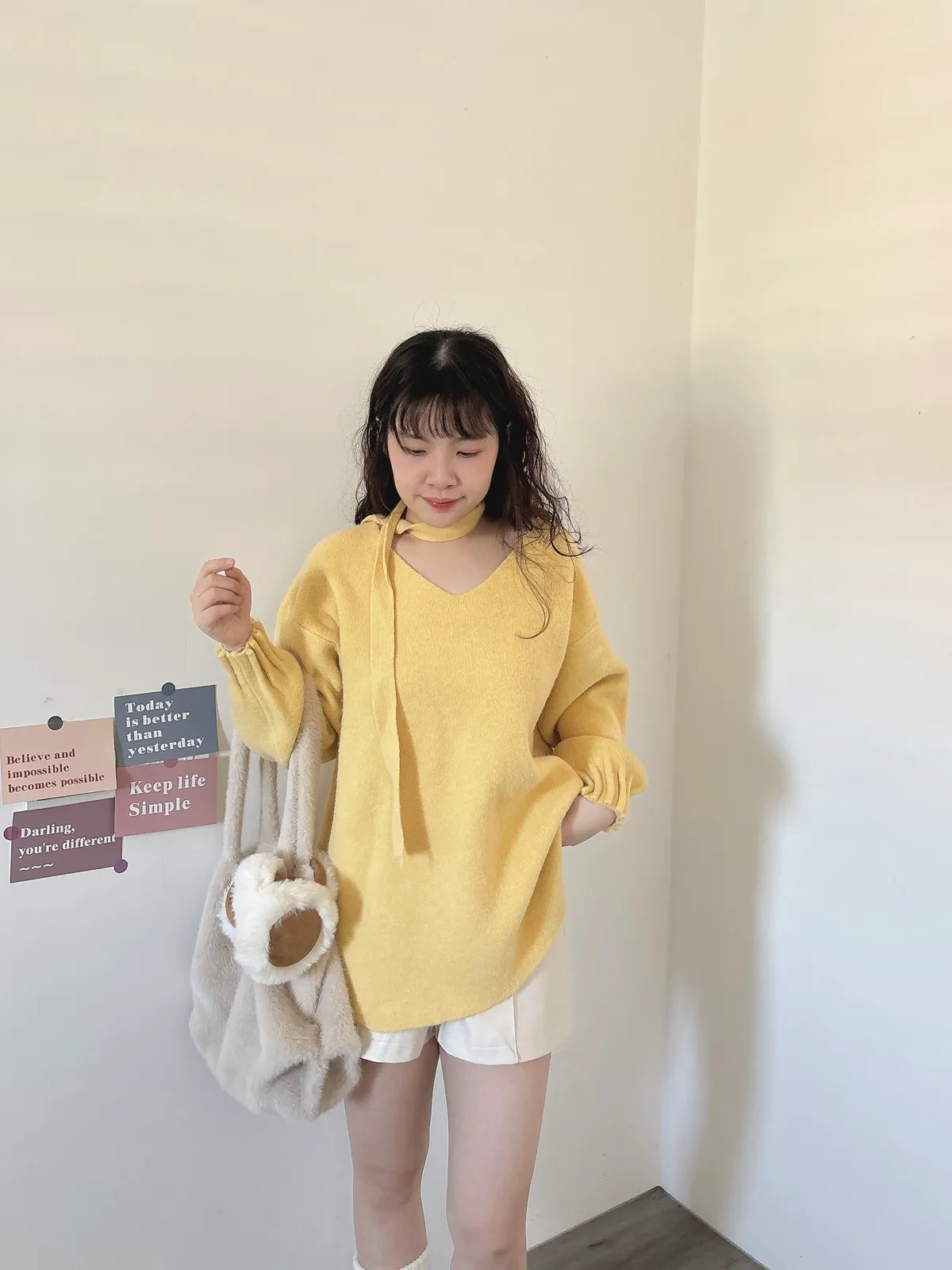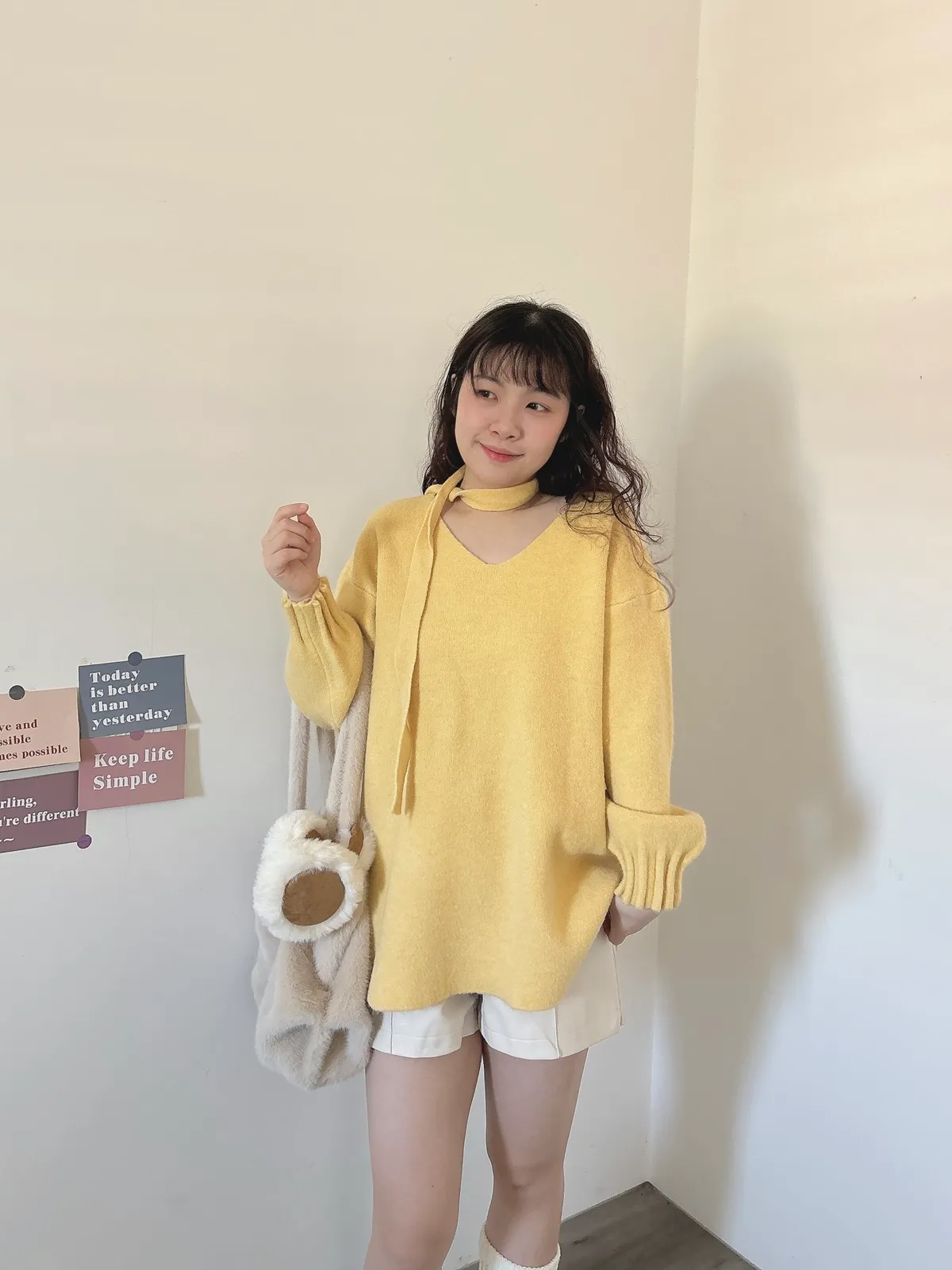 花苞袖口掛脖毛衣