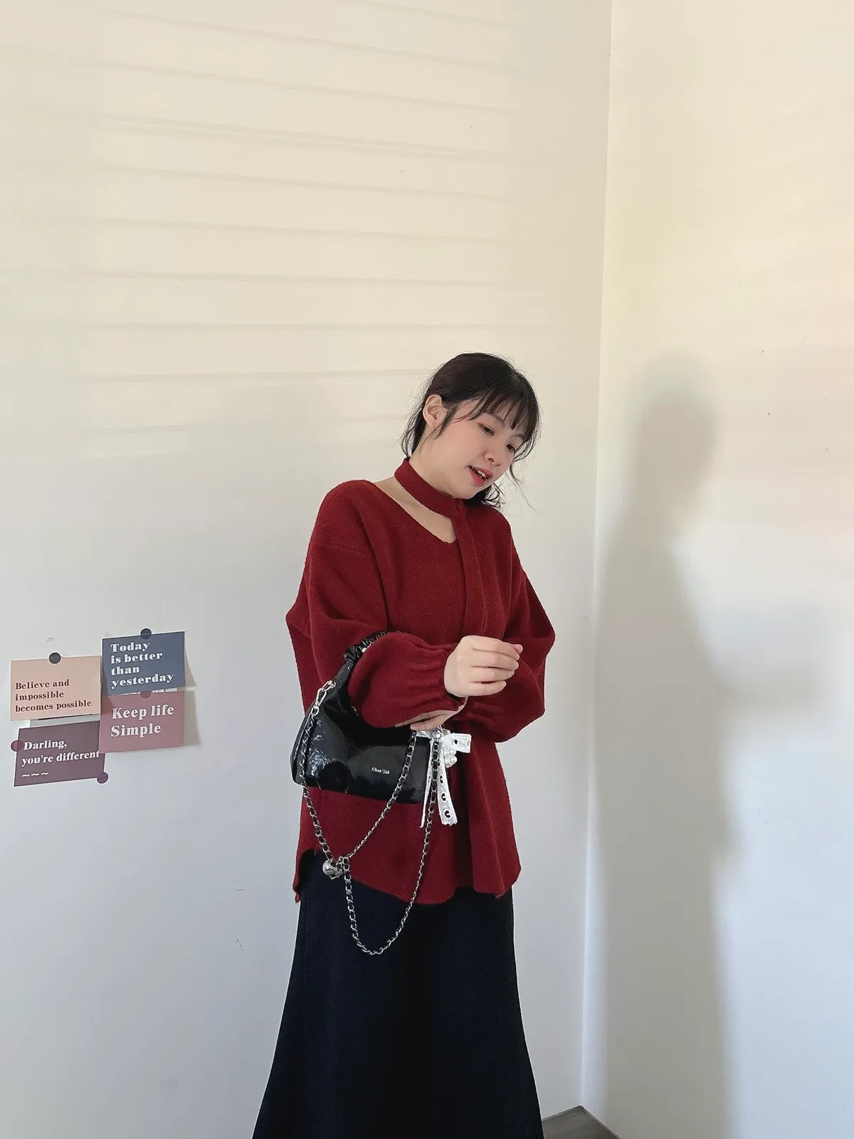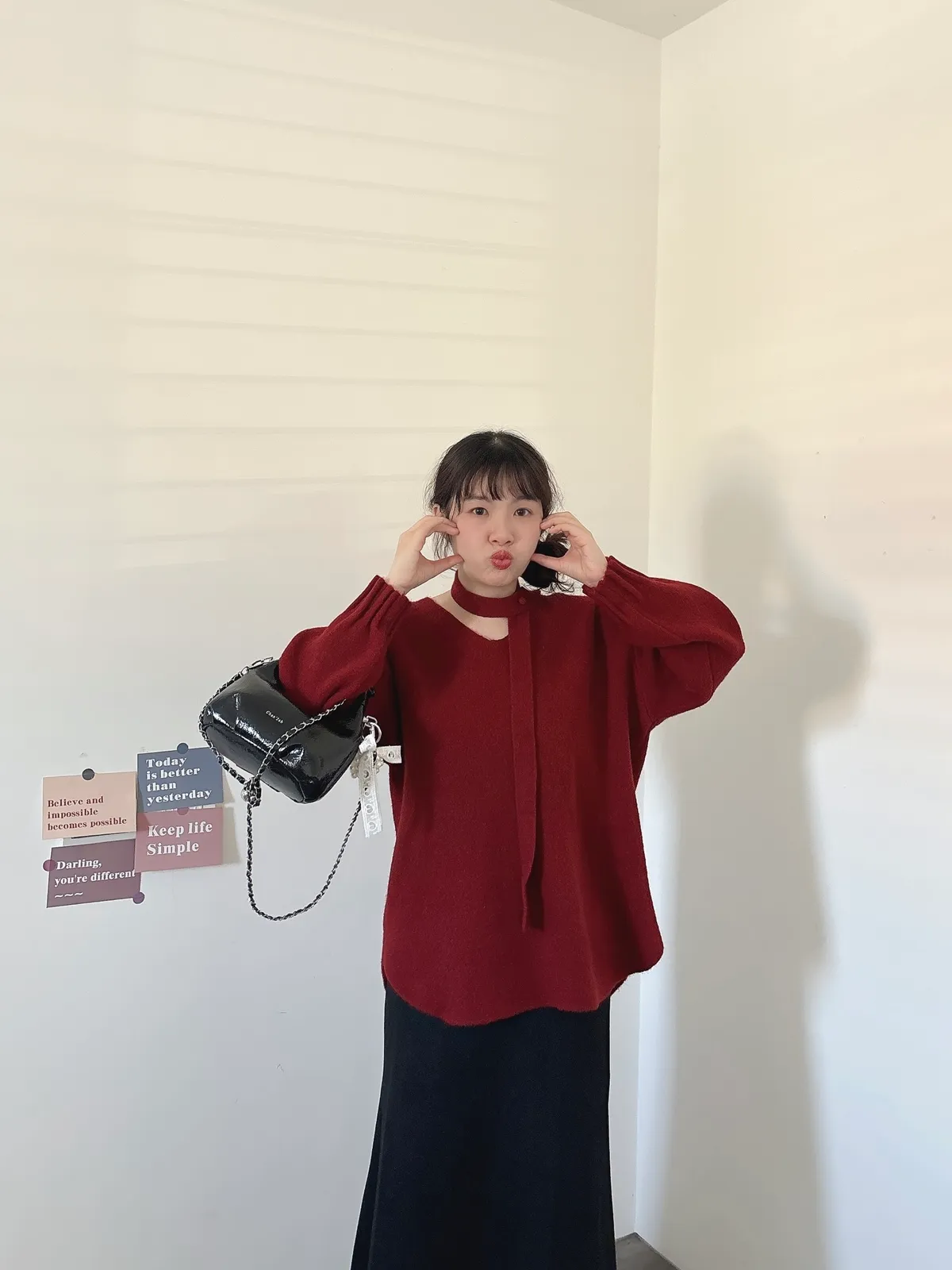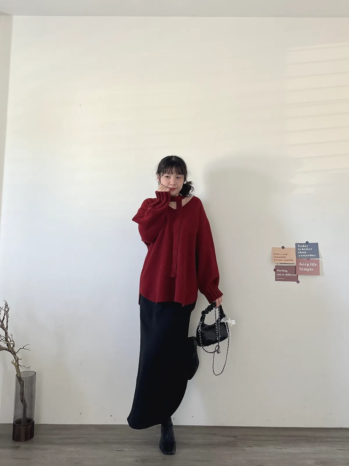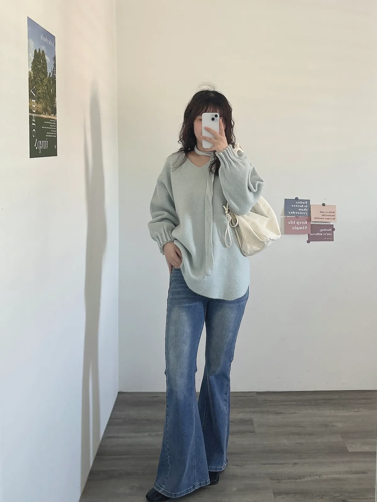 花苞袖口掛脖毛衣