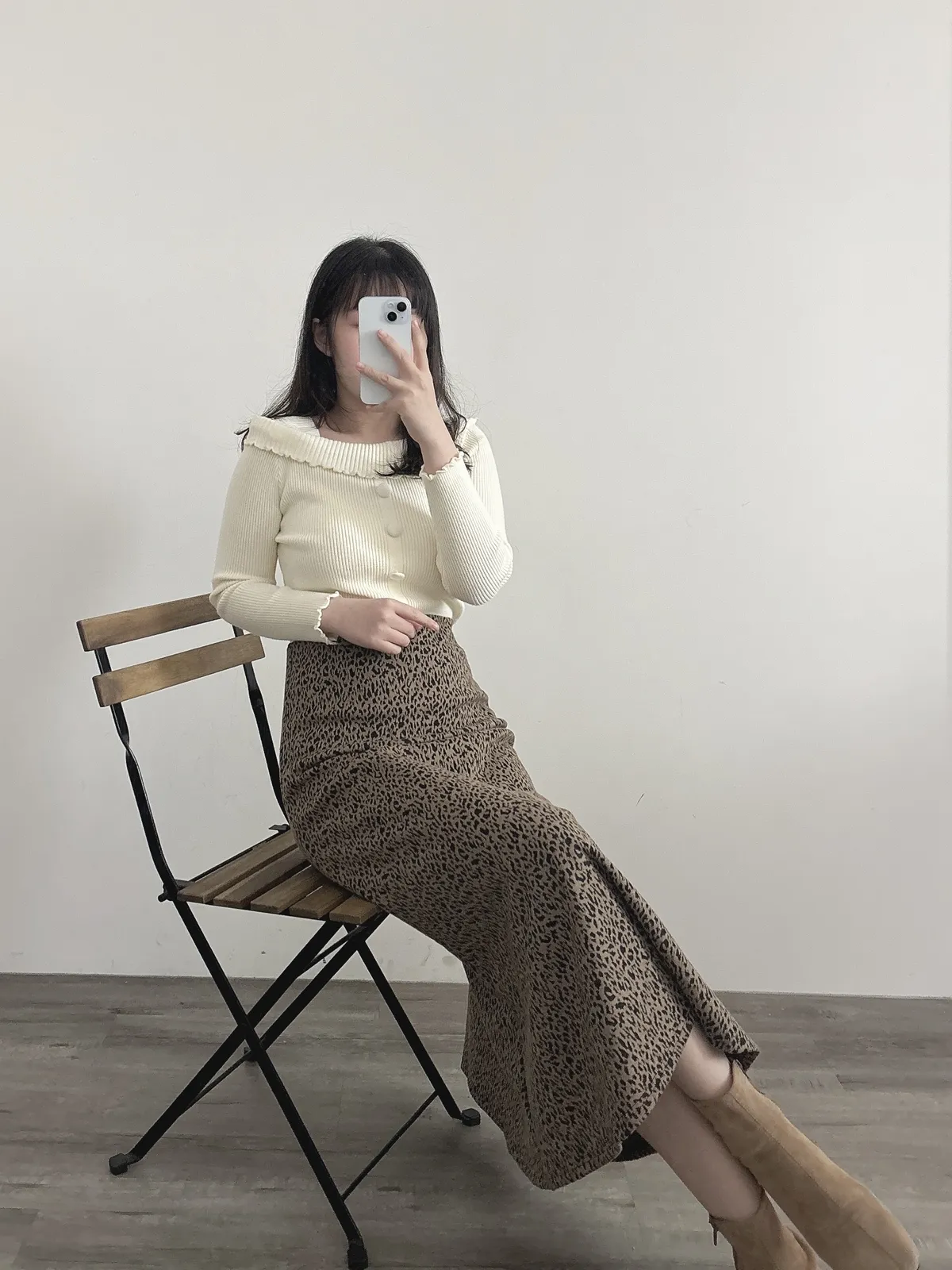 豹紋A字彈力長裙