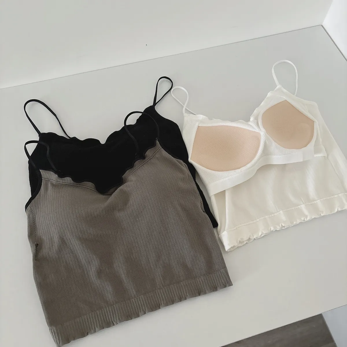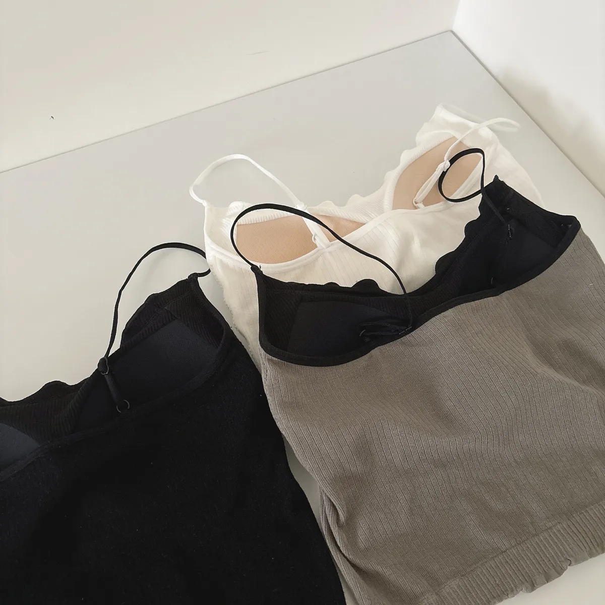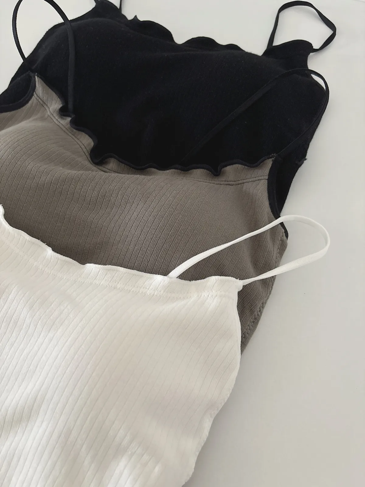 絕美鎖骨✨木耳邊細肩帶背心(有胸墊)