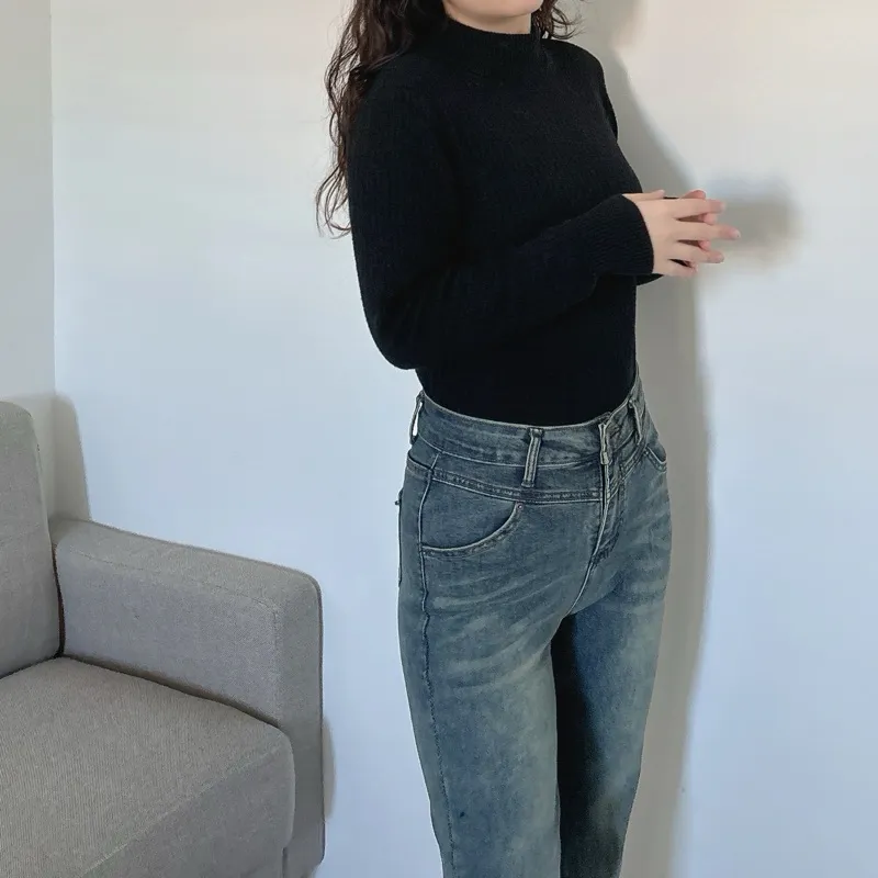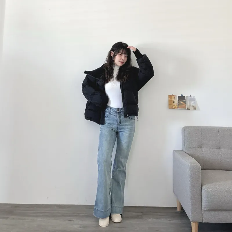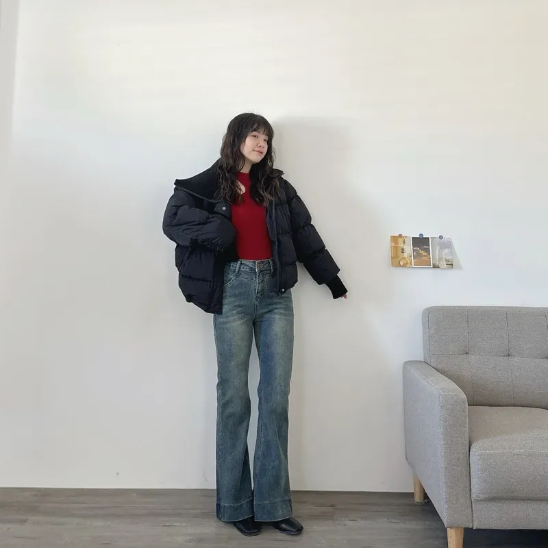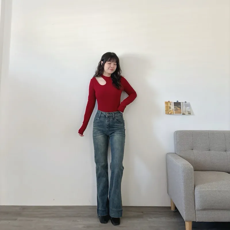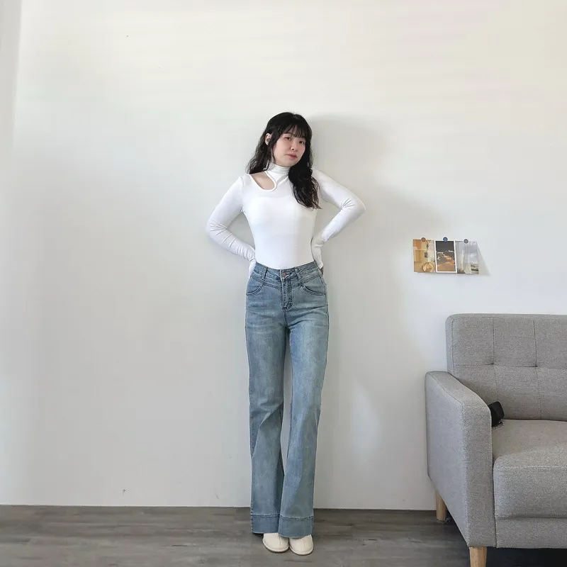 最後現貨!omg腿太長高腰喇叭牛仔褲
